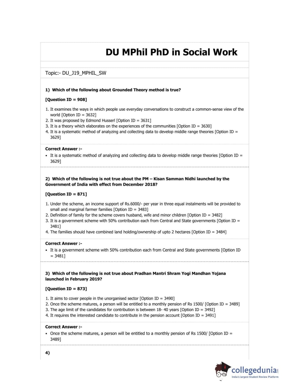 DUET 2019 M.Phil./Ph.D. in Social Work Question Paper with Answer Key PDF Shift 1