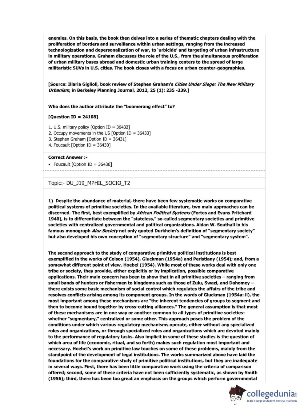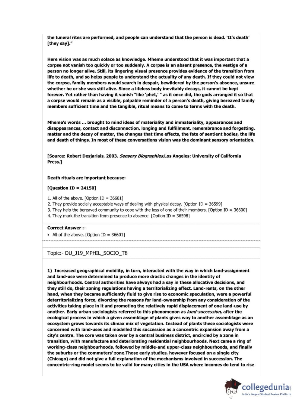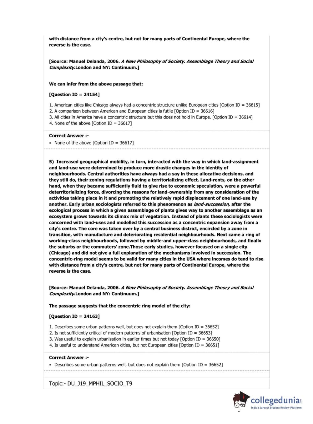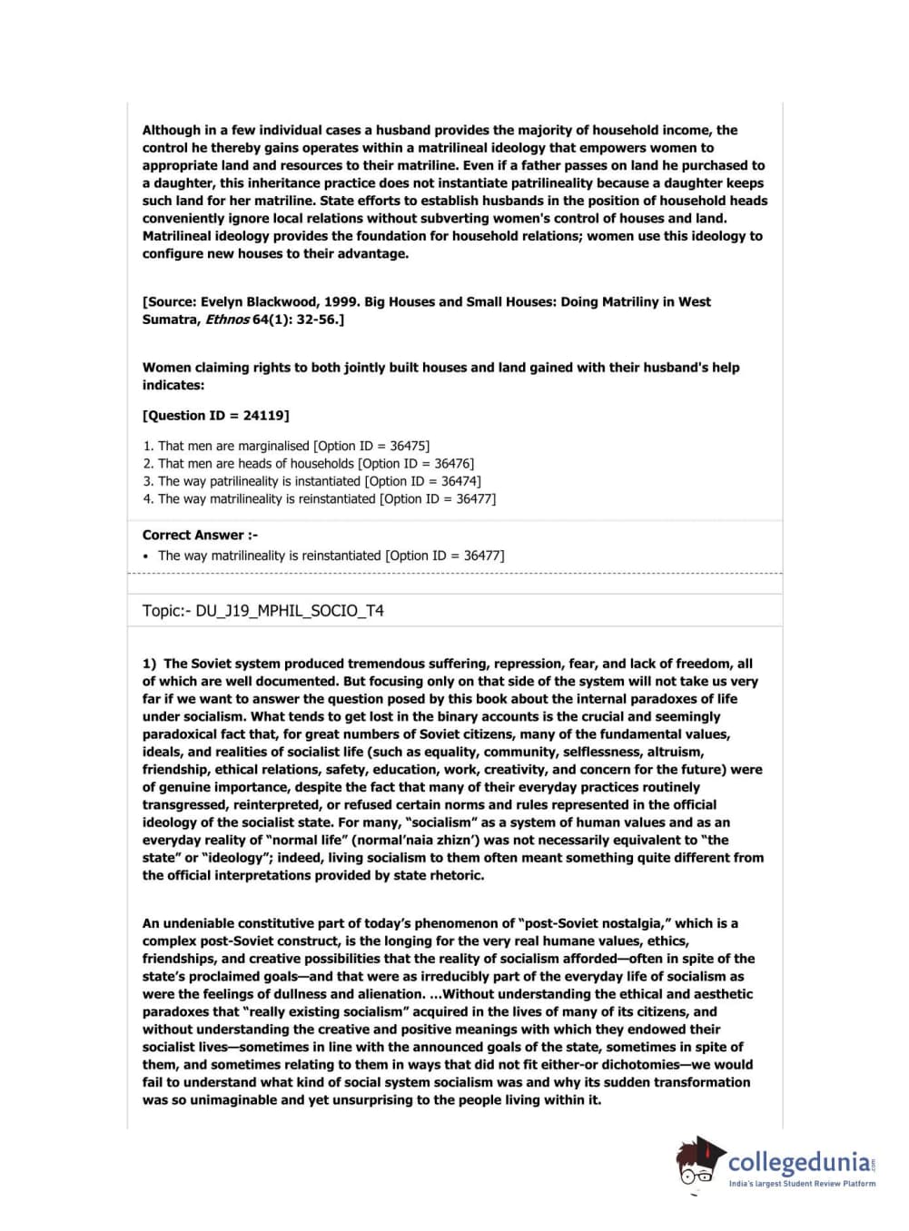 DUET 2019 M.Phil./Ph.D. in Sociology Question Paper with Answer Key PDF Shift 3