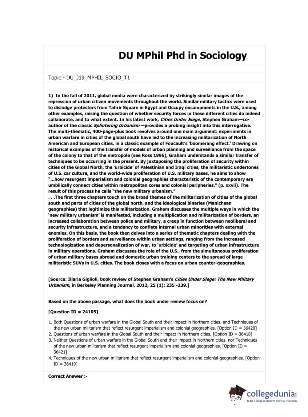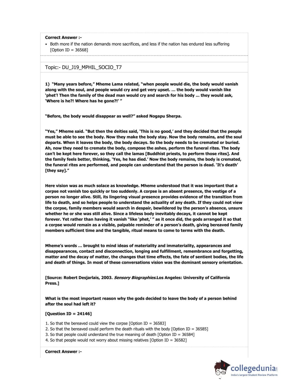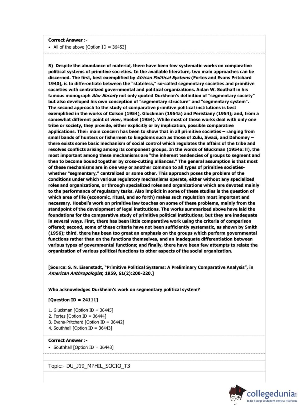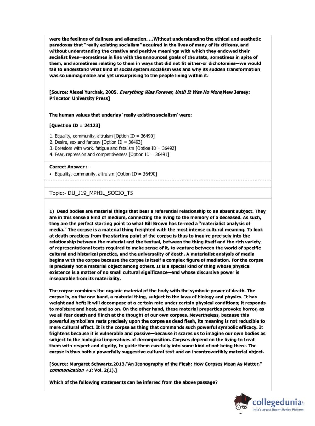 DUET 2019 M.Phil./Ph.D. in Sociology Question Paper with Answer Key PDF Shift 3