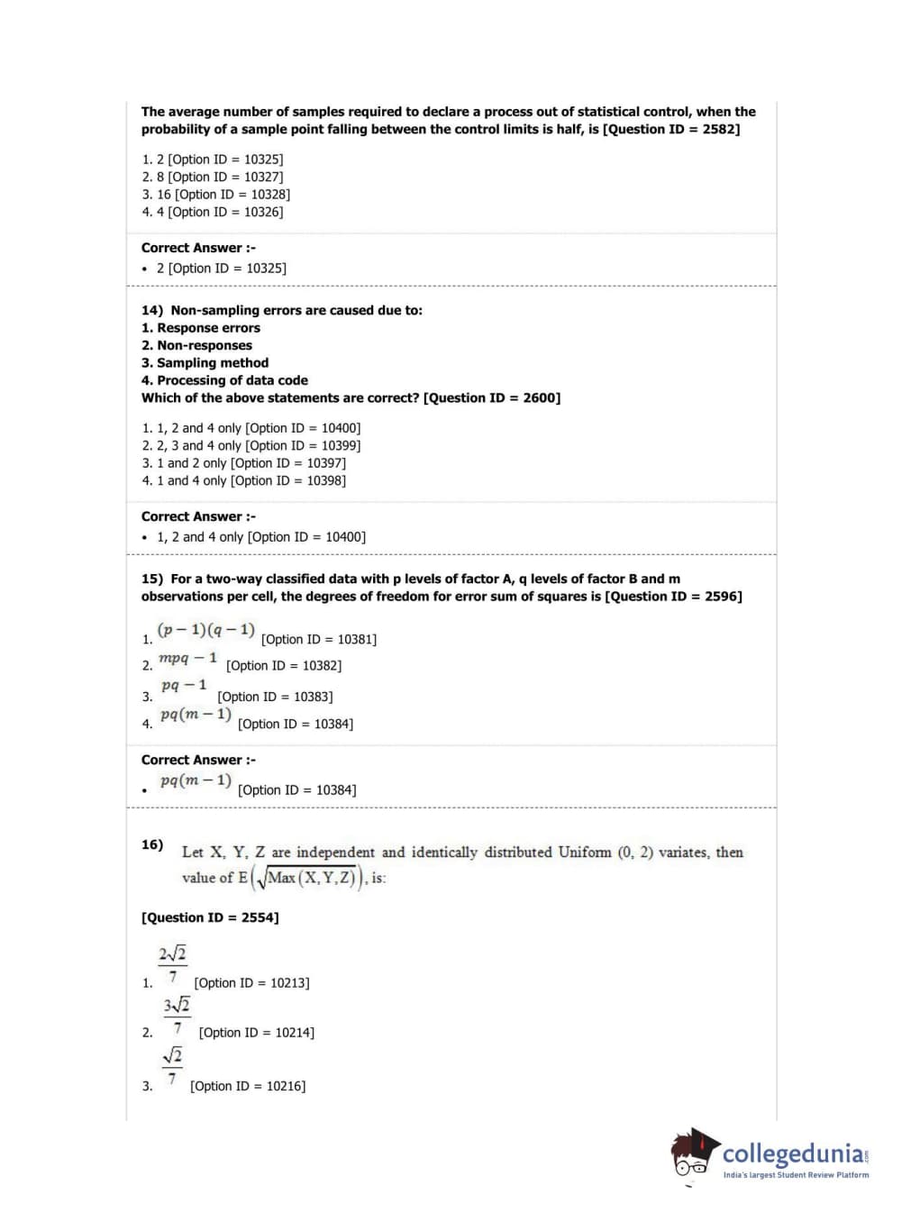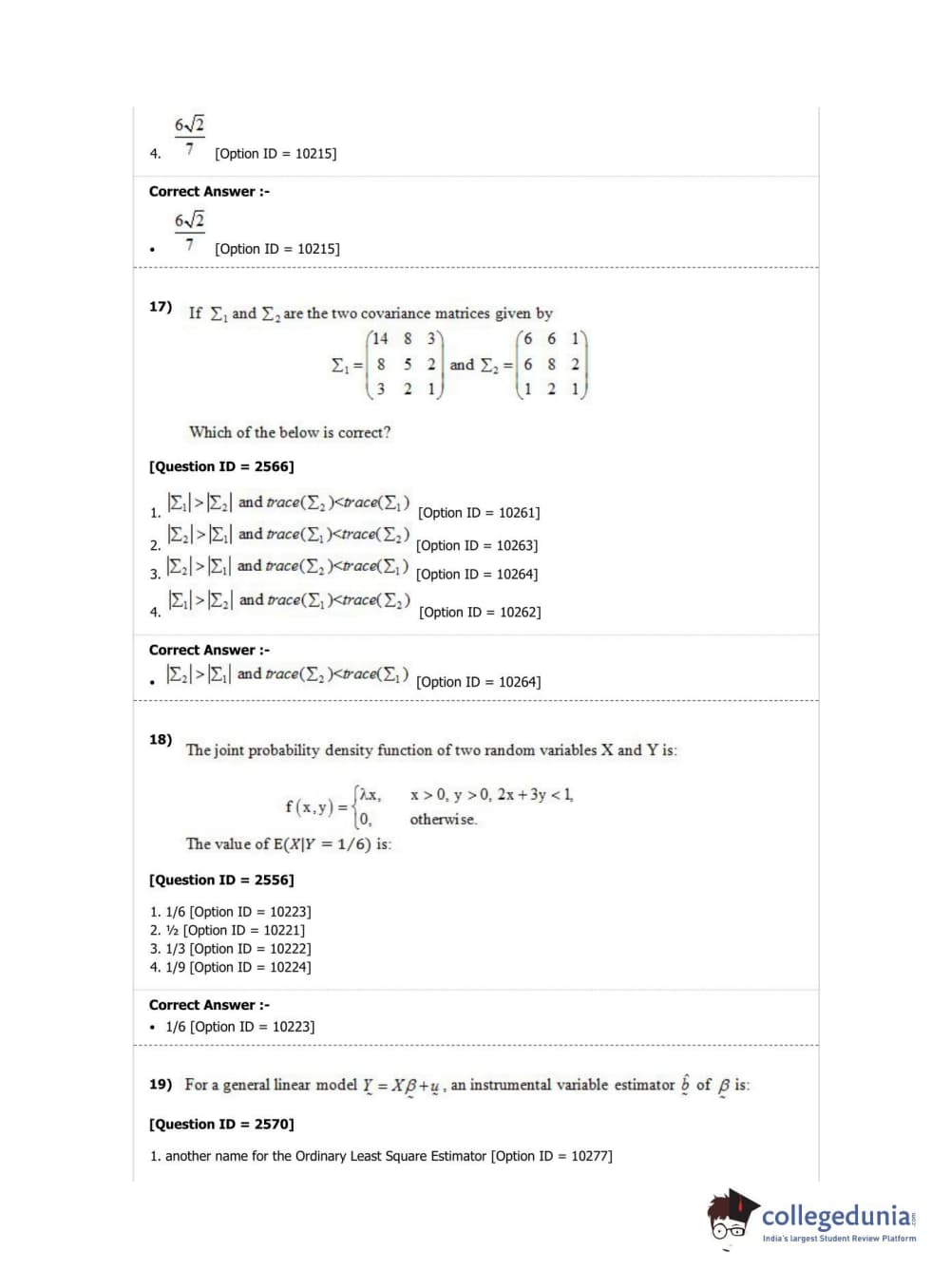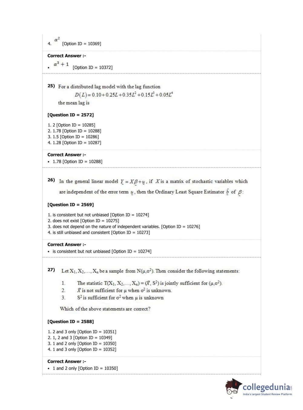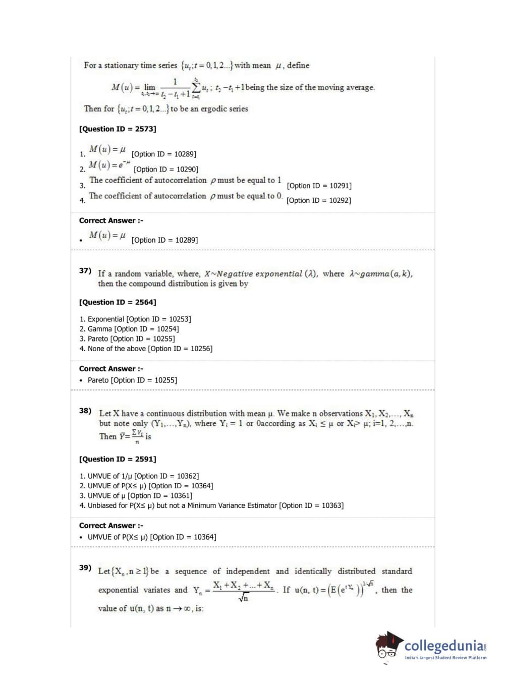 DUET 2019 M.Phil./Ph.D. in Statistics Question Paper with Answer Key PDF Shift 1
