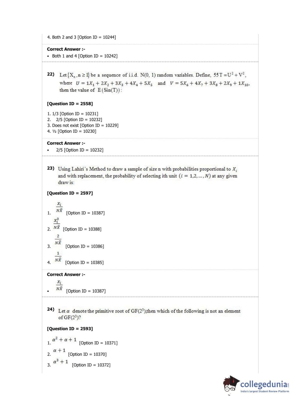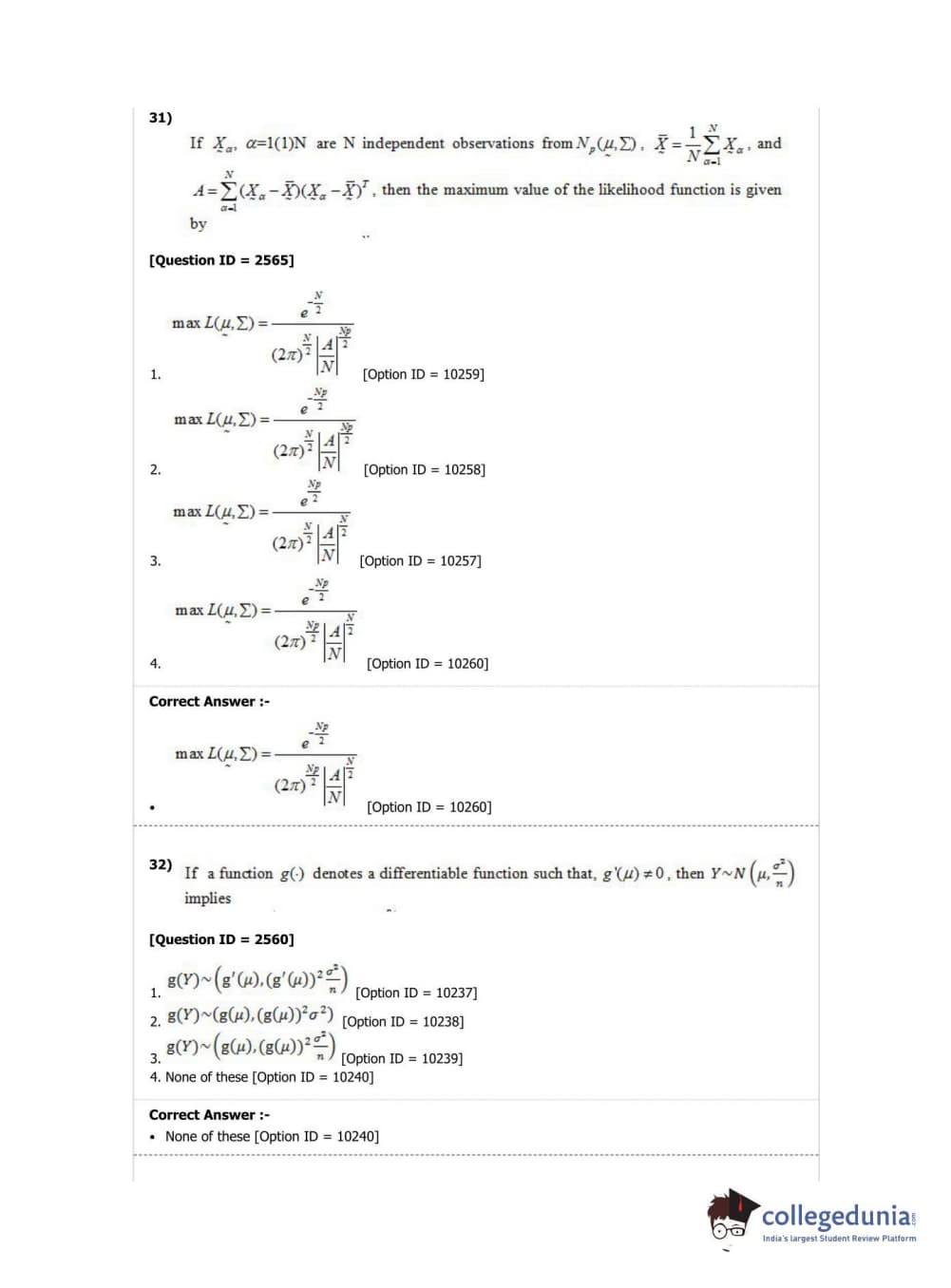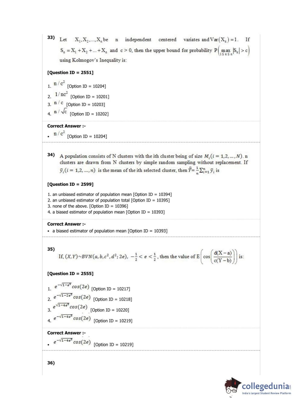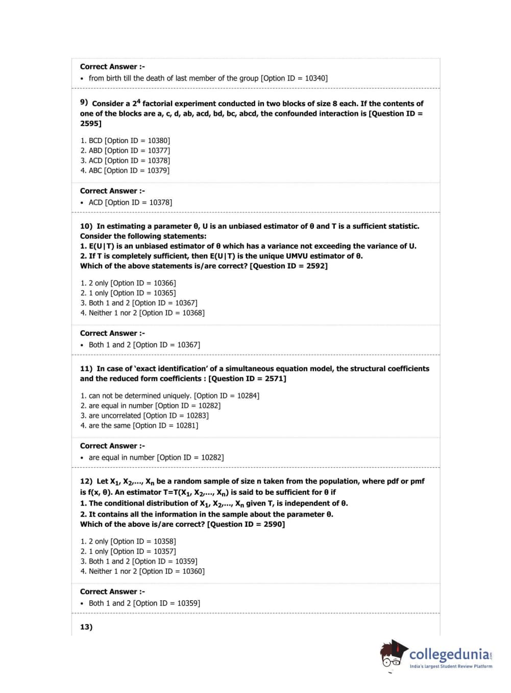 DUET 2019 M.Phil./Ph.D. in Statistics Question Paper with Answer Key PDF Shift 1