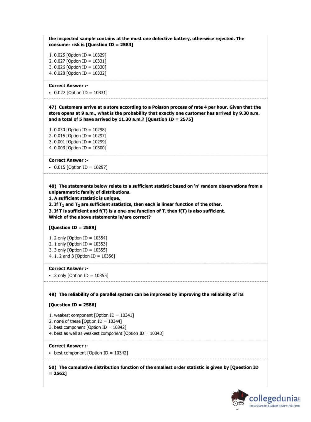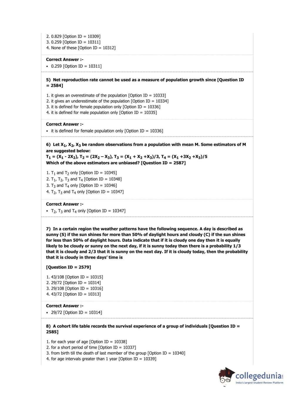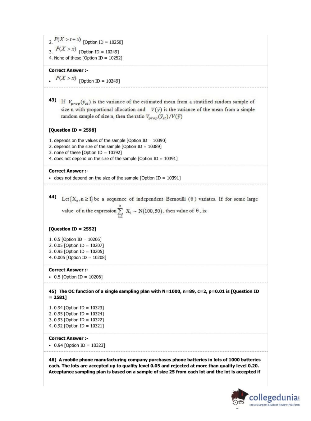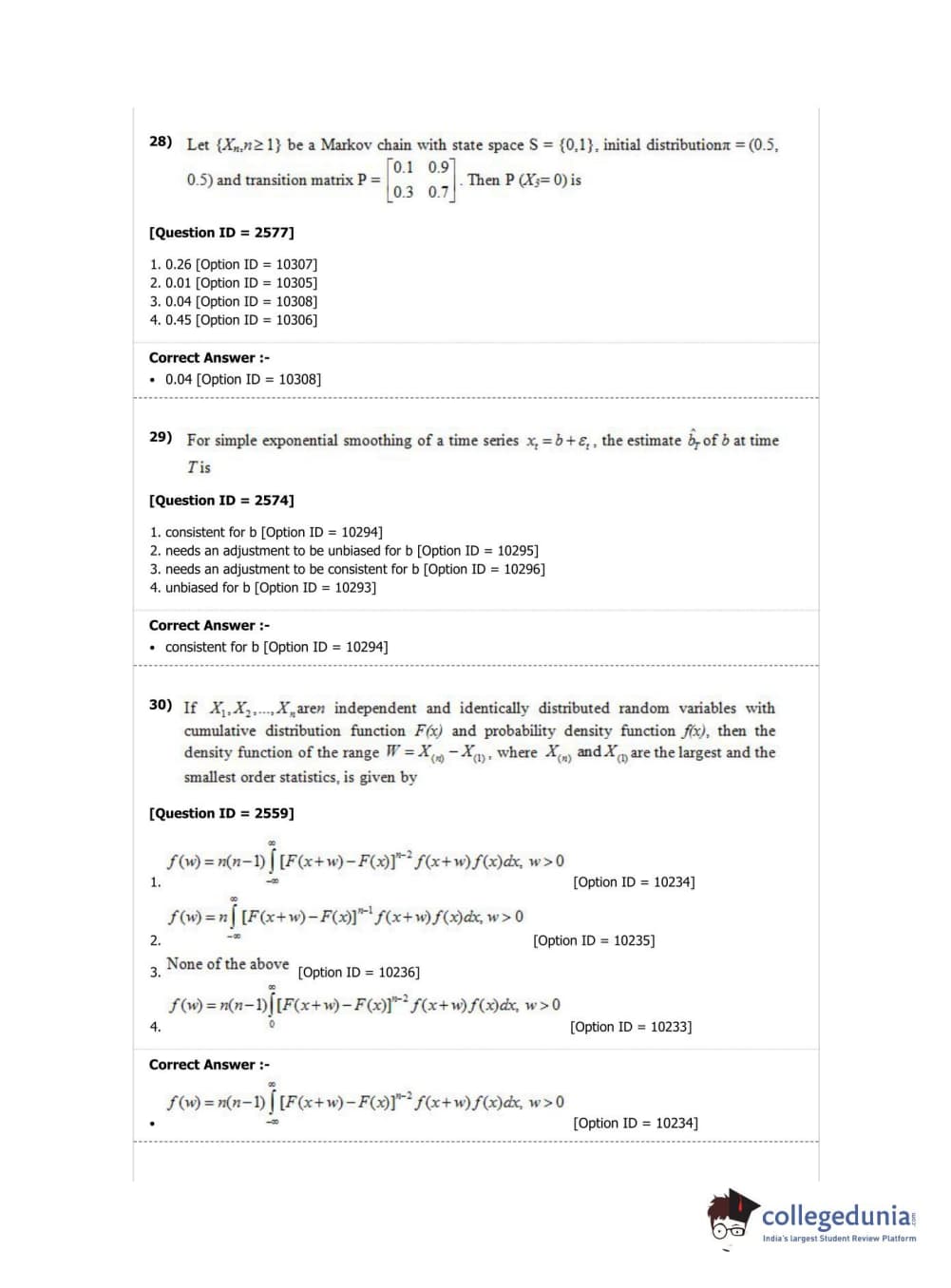 DUET 2019 M.Phil./Ph.D. in Statistics Question Paper with Answer Key PDF Shift 1