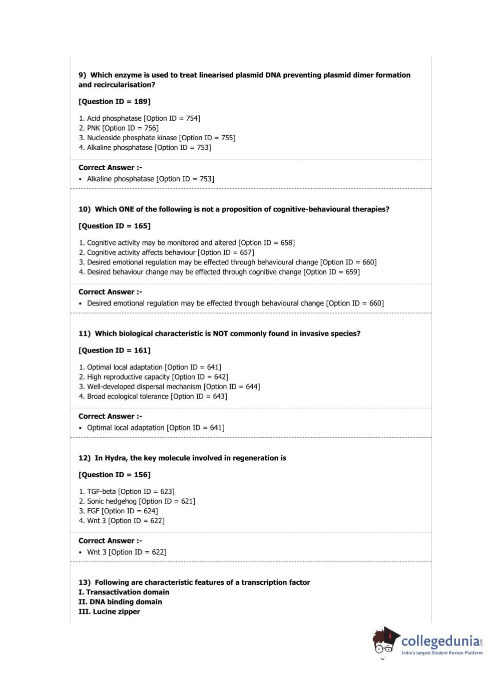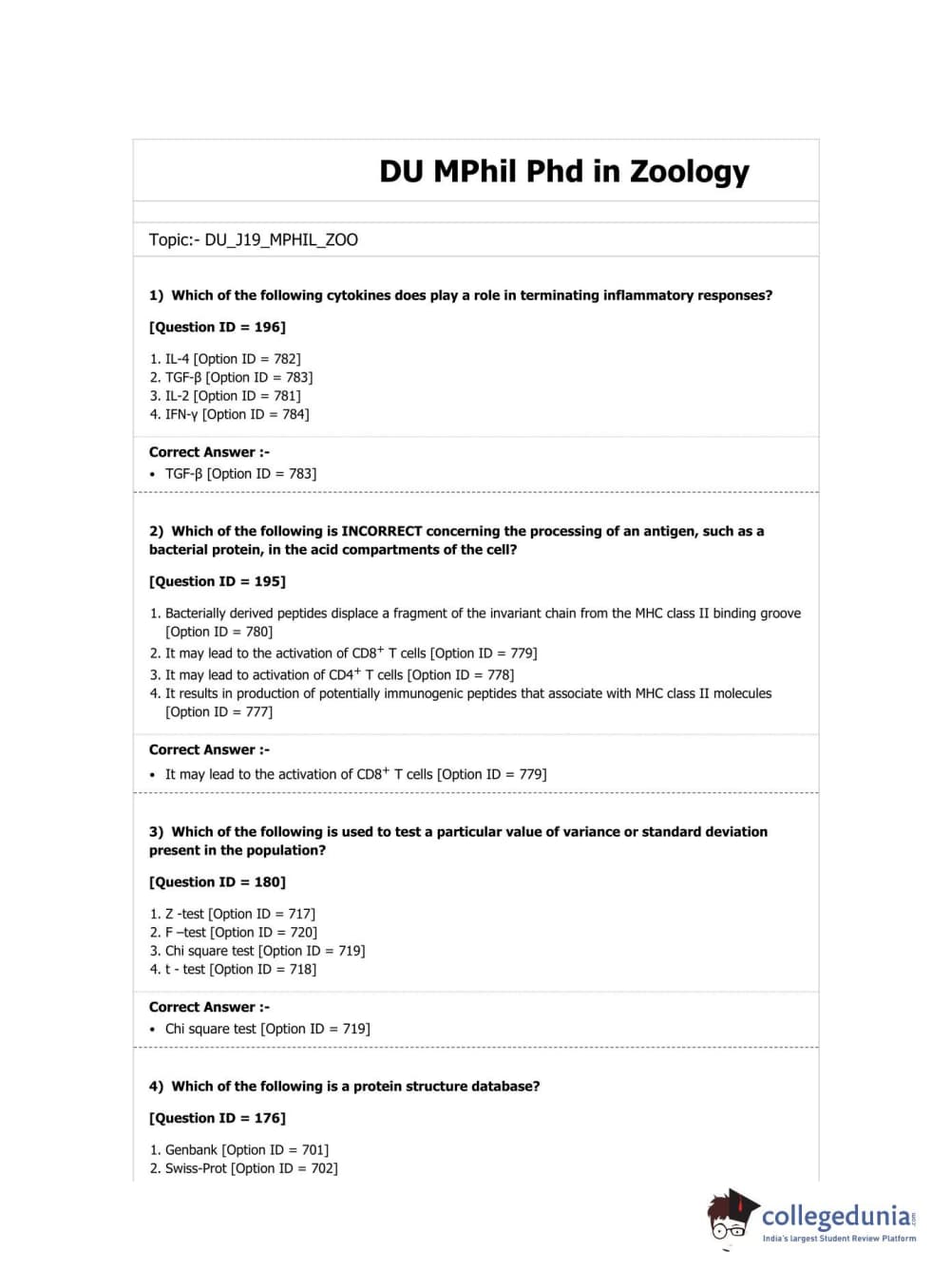 DUET 2019 M.Phil./Ph.D. in Zoology Question paper with answer key pdf conducted on May 7, 2019 in Shift 2 is available for download. The exam was successfully organized by National Testing Agency (NTA). The question paper comprised a total of 50 questions.