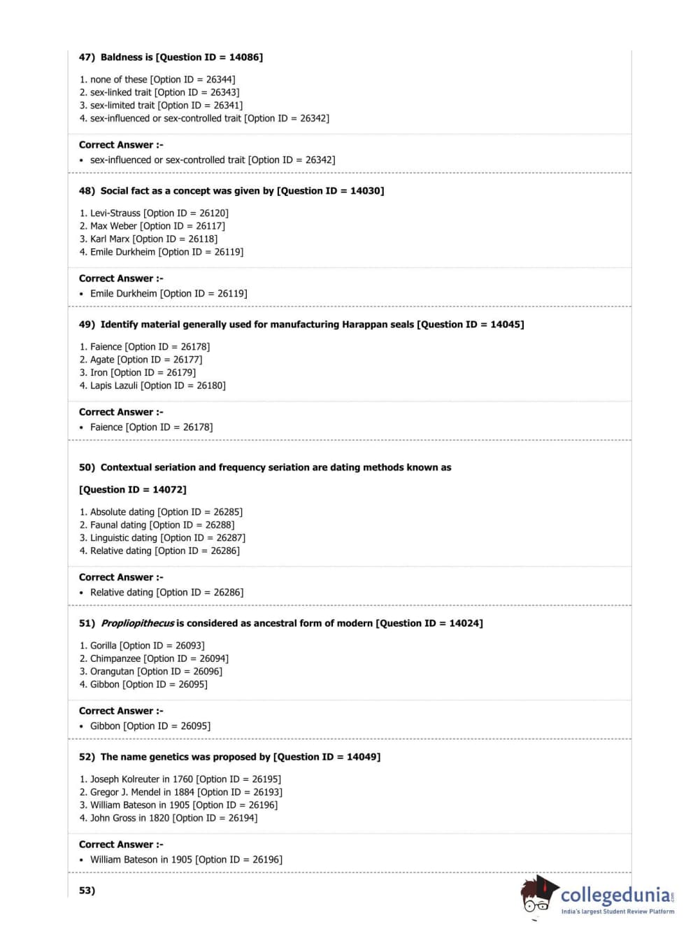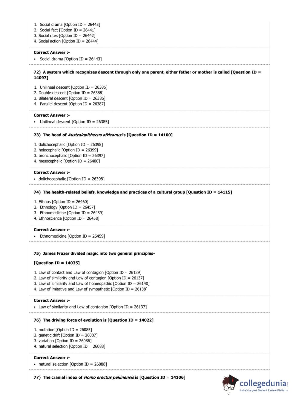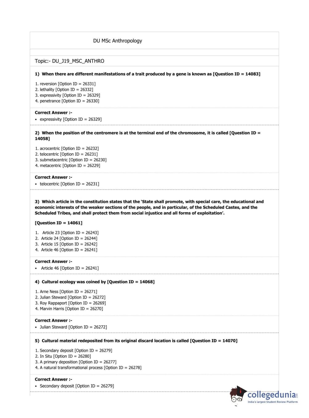 DUET 2019 M.Sc. Anthropology Question paper with answer key pdf conducted on July 7, 2019 in Shift 1 is available for download. The exam was successfully organized by National Testing Agency (NTA). The question paper comprised a total of 100 questions.
