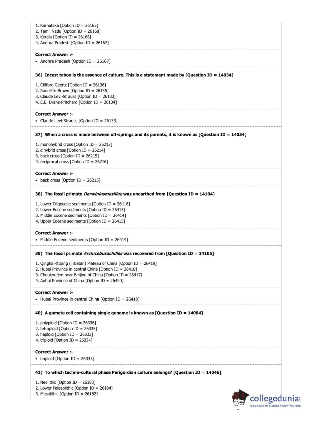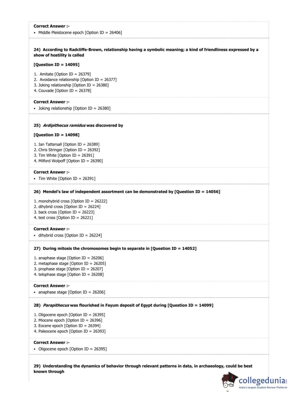 DUET 2019 M.Sc. Anthropology Question Paper with Answer Key PDF Shift 1