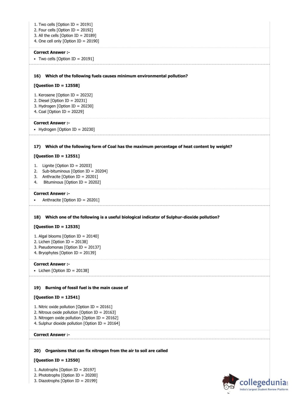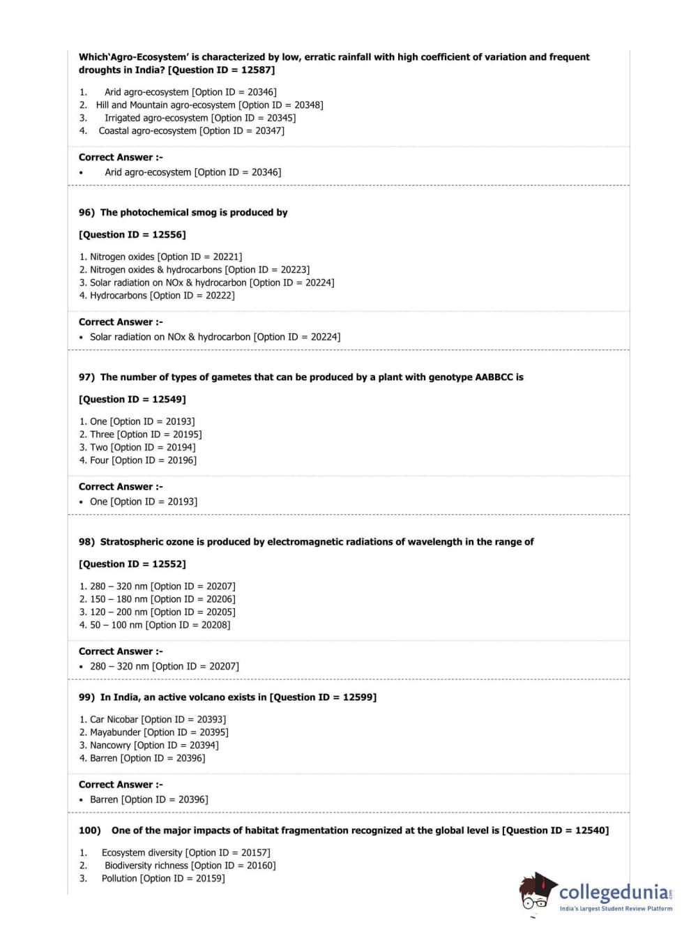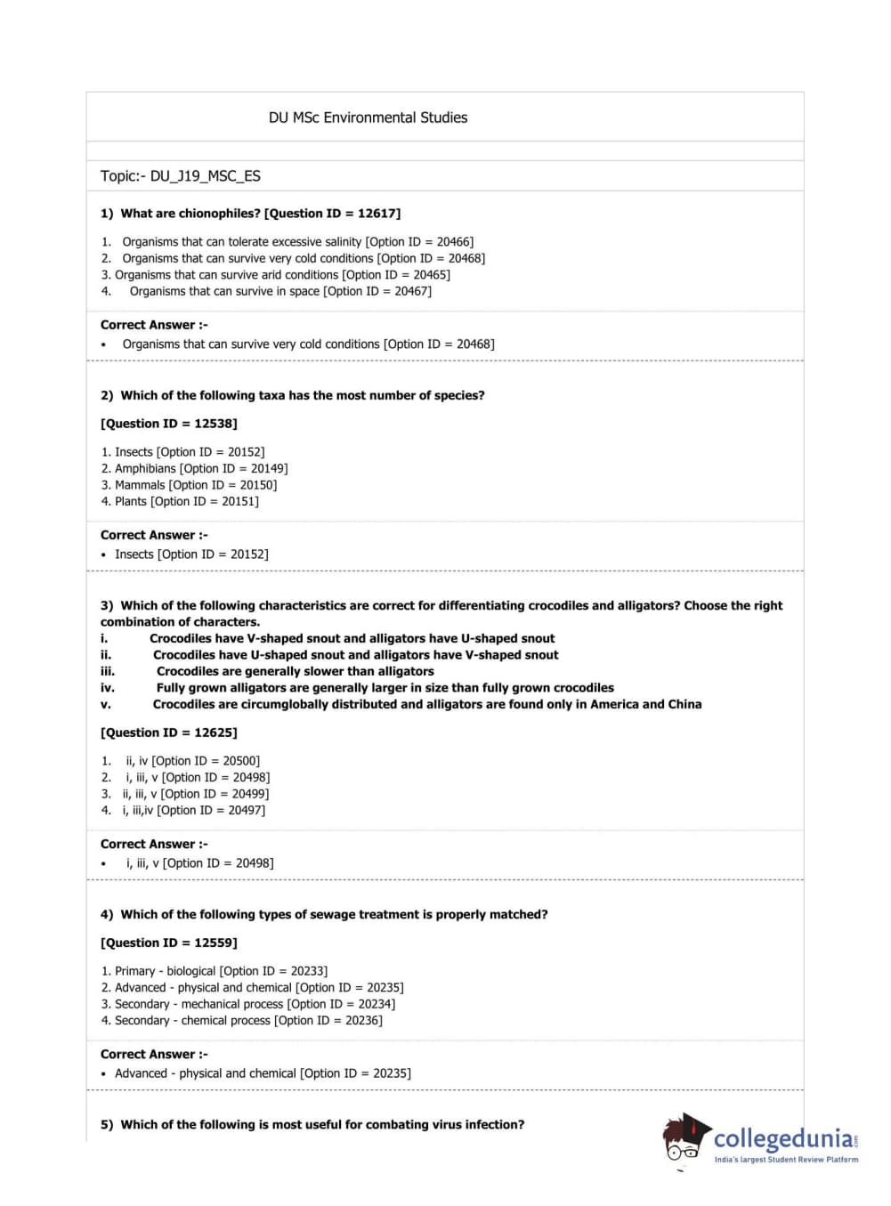 DUET 2019 M.Sc. Environmental Studies Question paper with answer key pdf conducted on July 7, 2019 in Shift 2 is available for download. The exam was successfully organized by National Testing Agency (NTA). The question paper comprised a total of 100 questions.