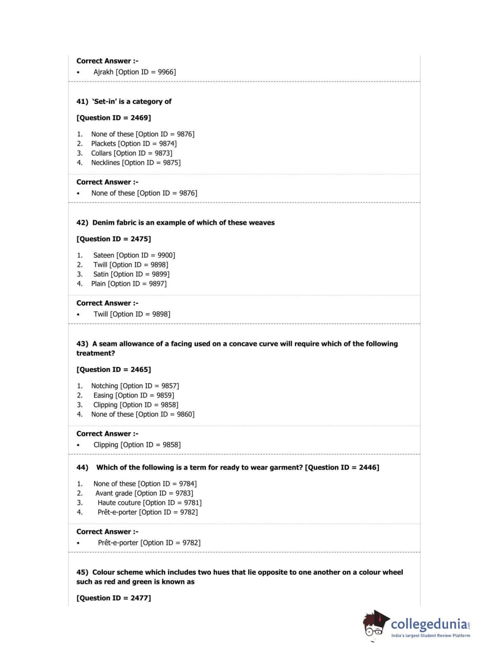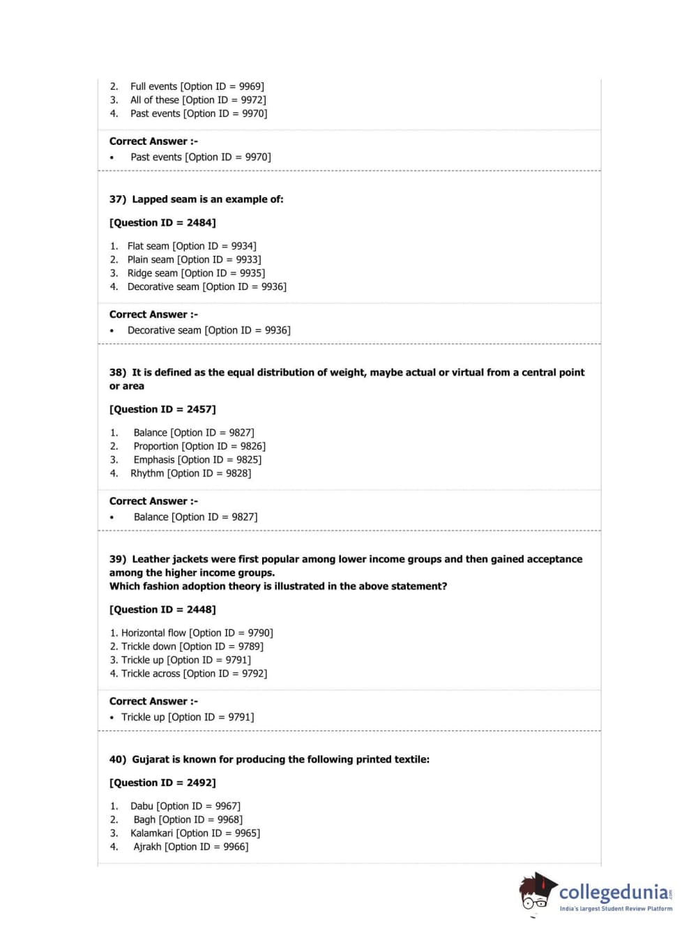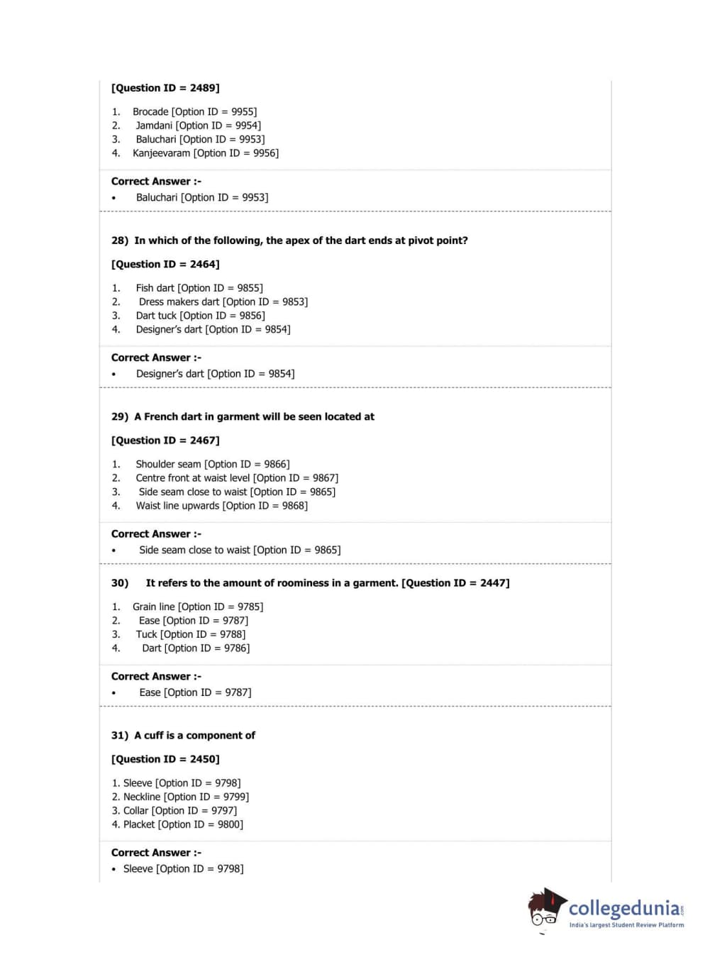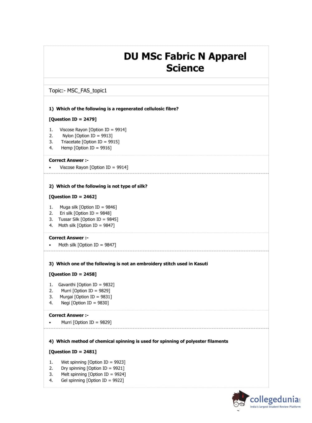 DUET 2019 M.Sc. Fabric & Apparel Science (Department of Home Science) Question paper with answer key pdf conducted on April 7, 2019 in Shift 2 is available for download. The exam was successfully organized by National Testing Agency (NTA). The question paper comprised a total of 100 questions divided among 5 sections.