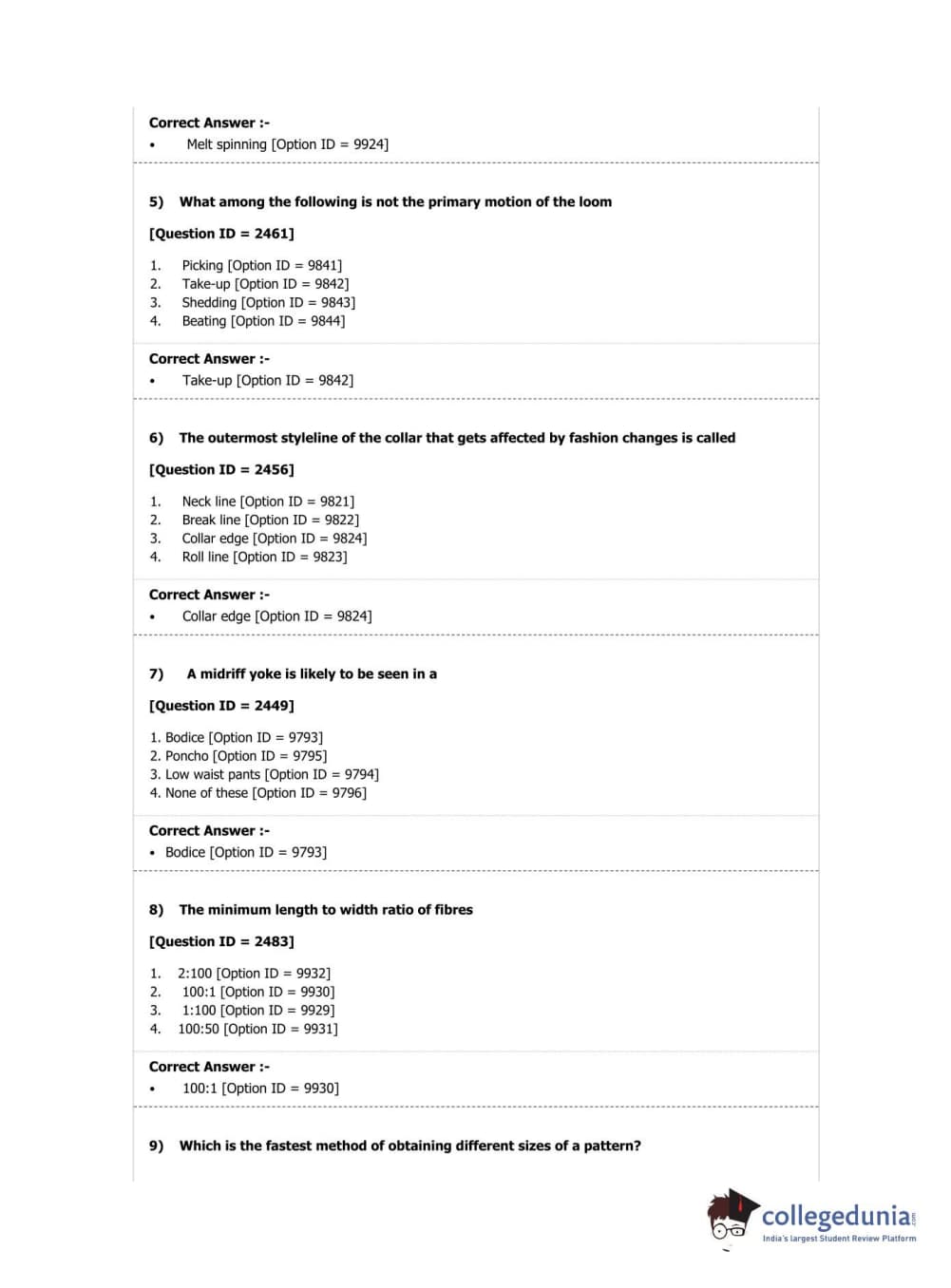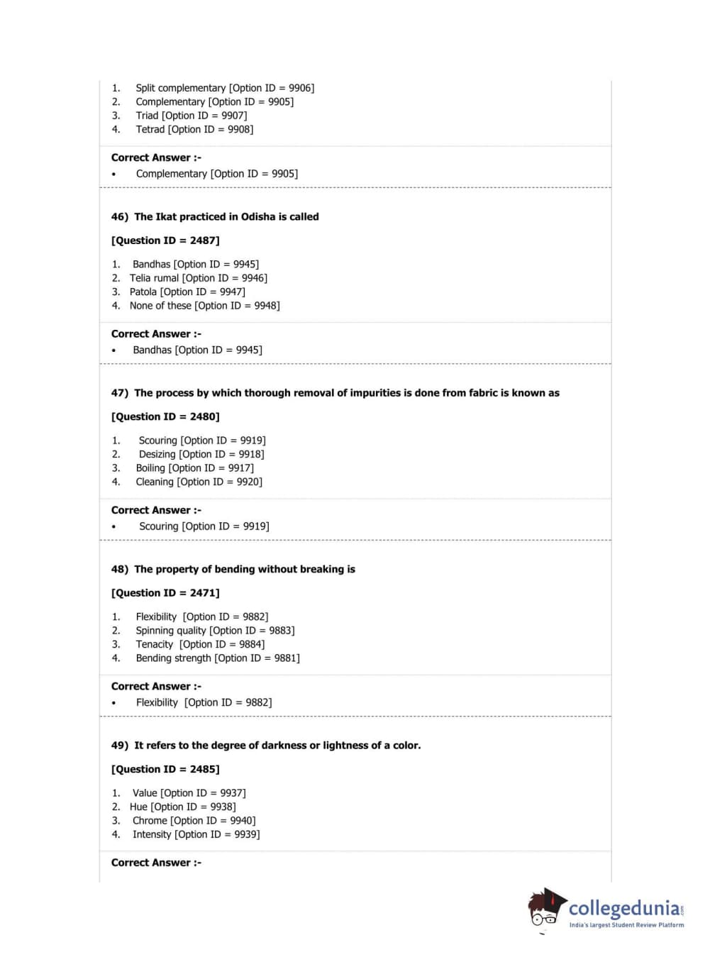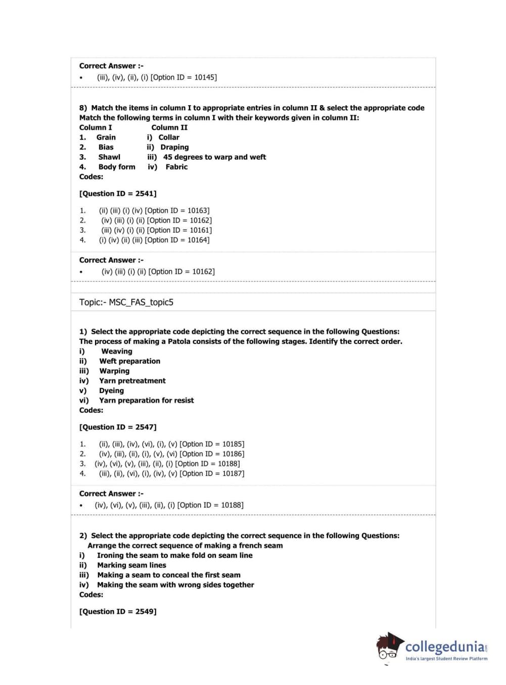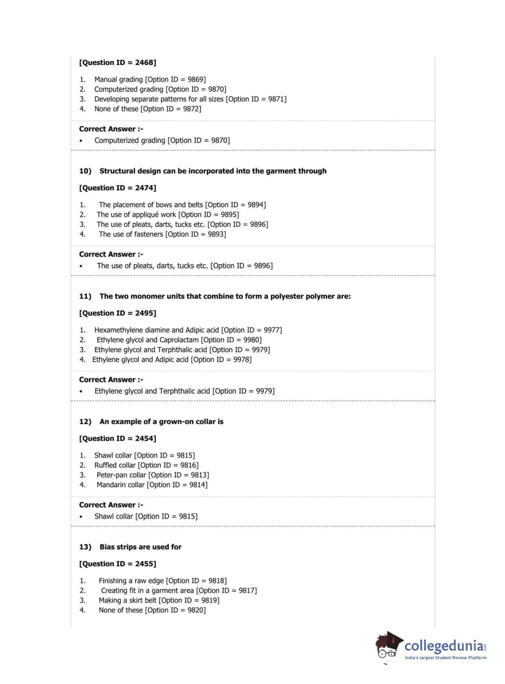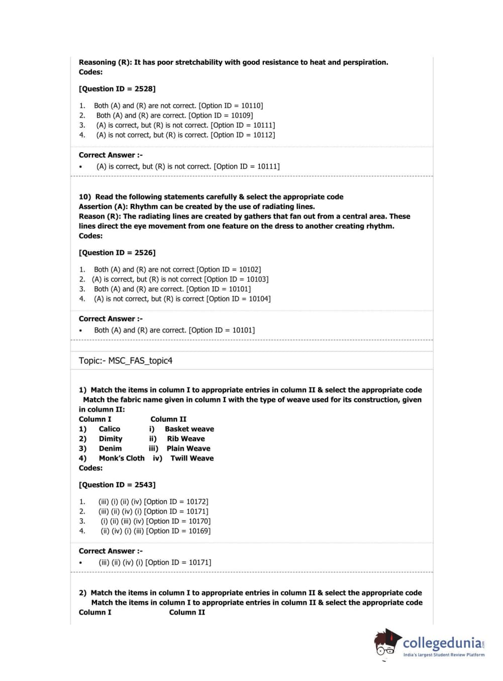DUET 2019 M.Sc. Fabric & Apparel Science Question Paper with Answer Key PDF Shift 2