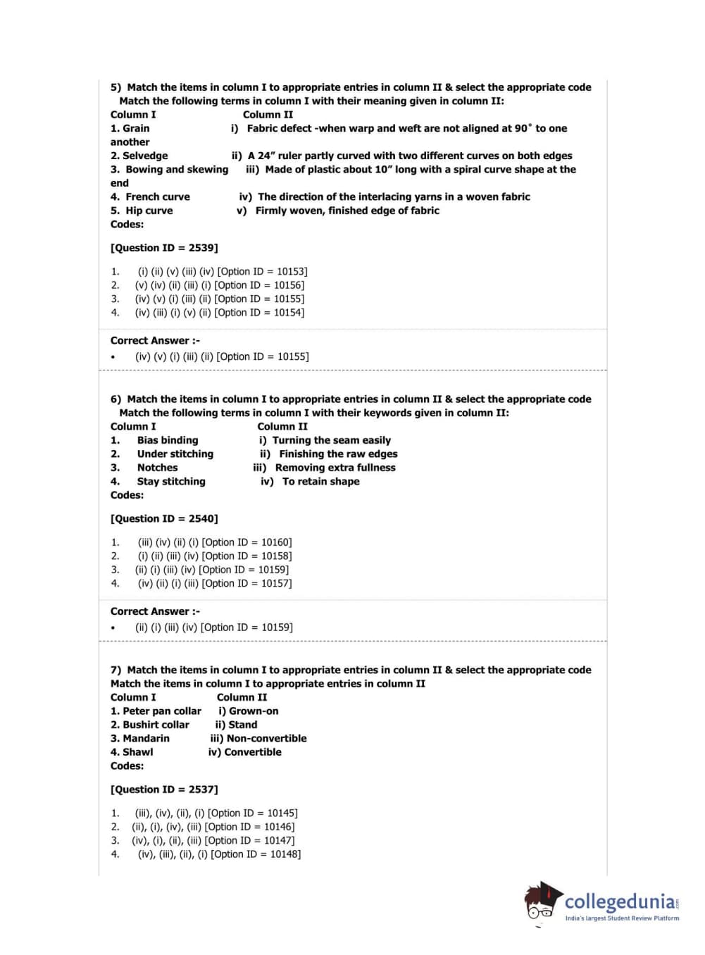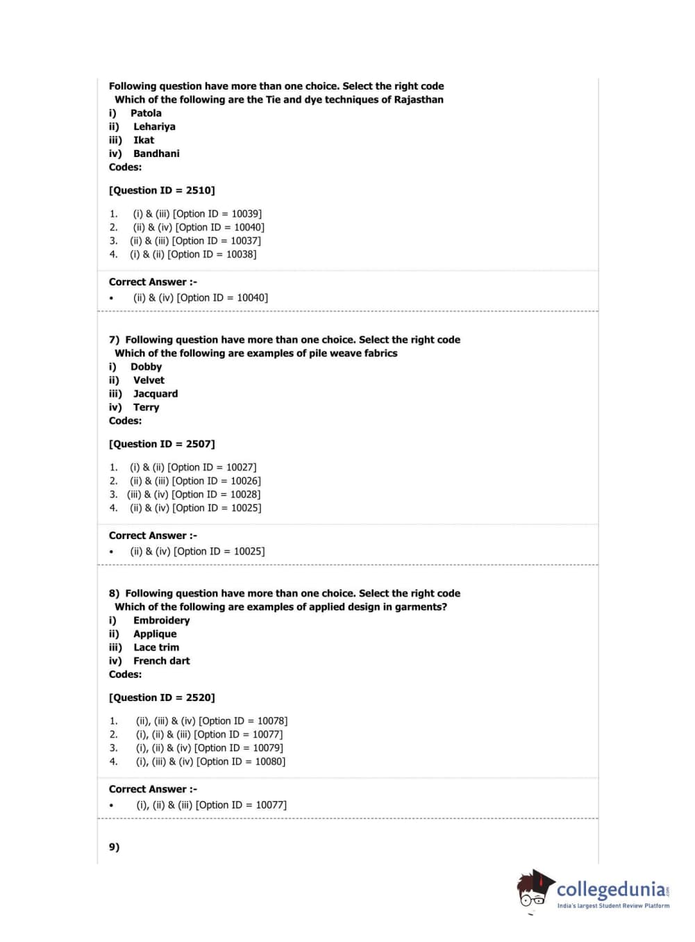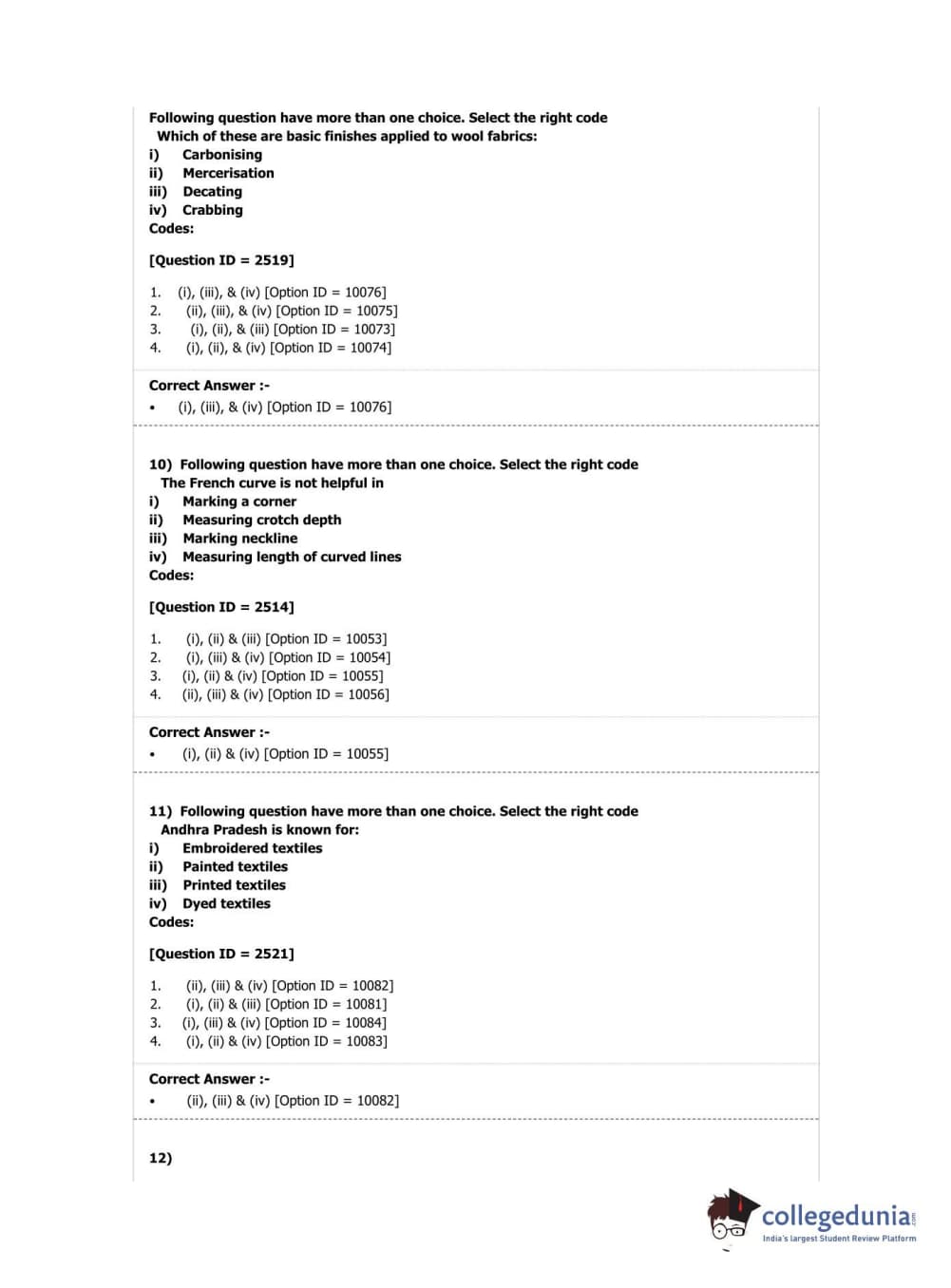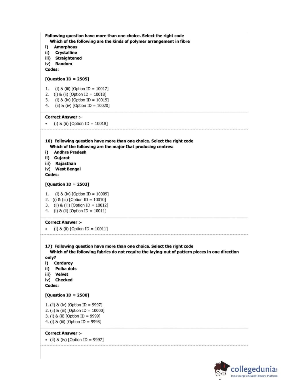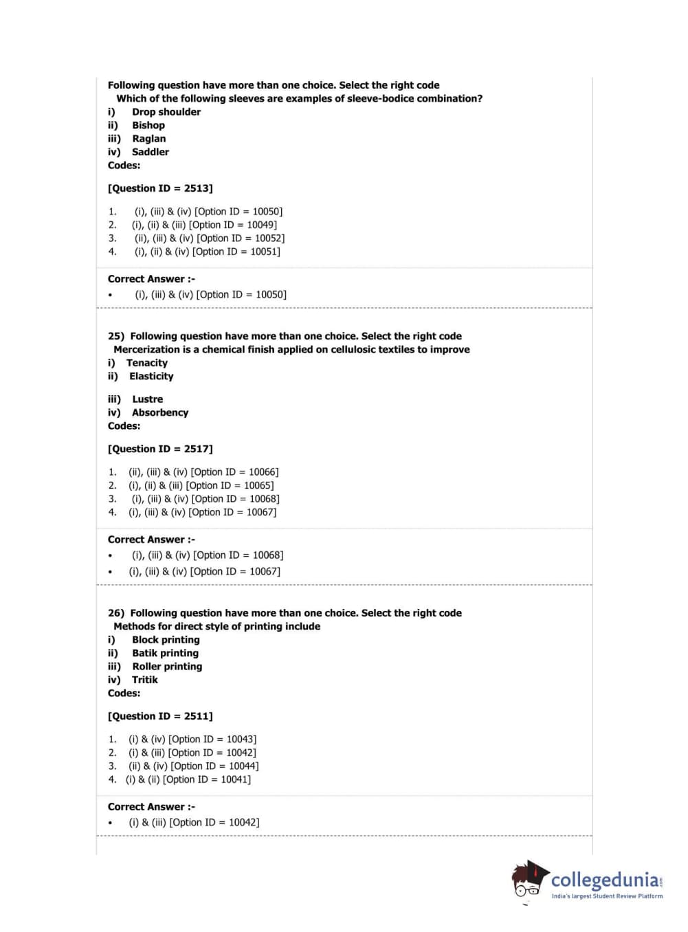 DUET 2019 M.Sc. Fabric & Apparel Science Question Paper with Answer Key PDF Shift 2