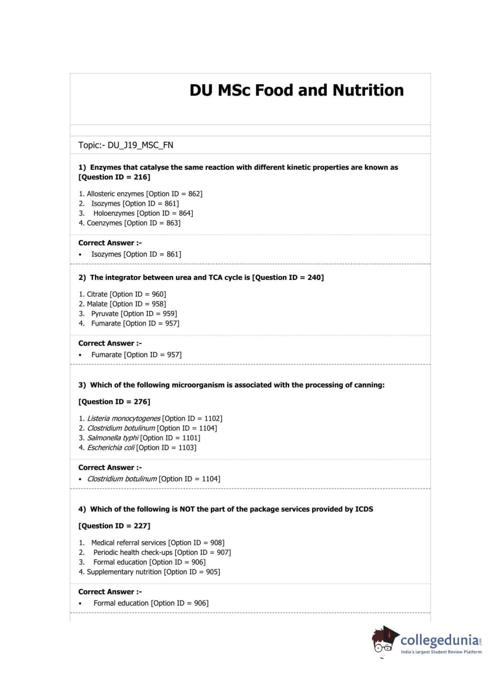 DUET 2019 M.Sc. Food & Nutrition Question paper with answer key pdf conducted on May 7, 2019 in Shift 1 is available for download. The exam was successfully organized by National Testing Agency (NTA). The question paper comprised a total of 100 questions.