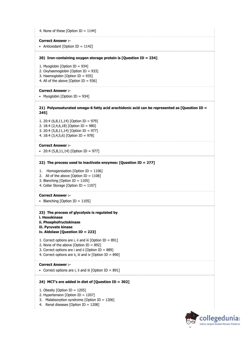 DUET 2019 M.Sc. Food & Nutrition Question Paper with Answer Key PDF Shift 1