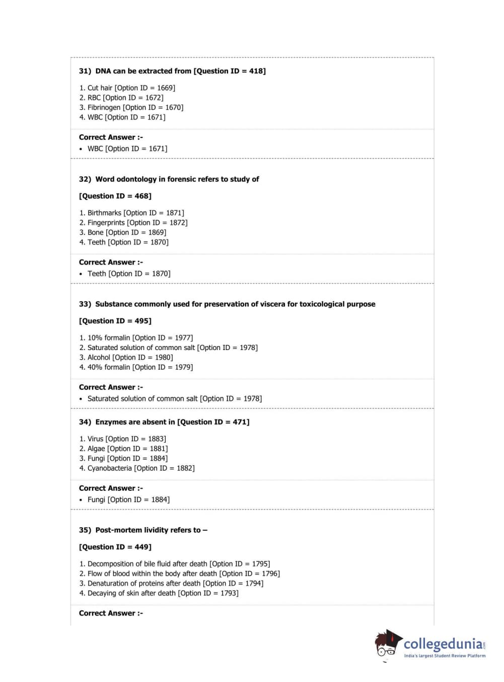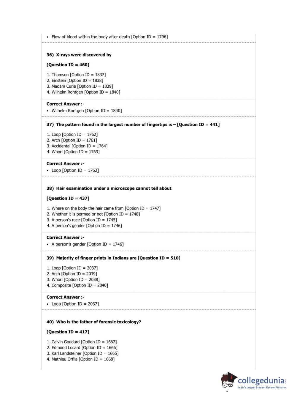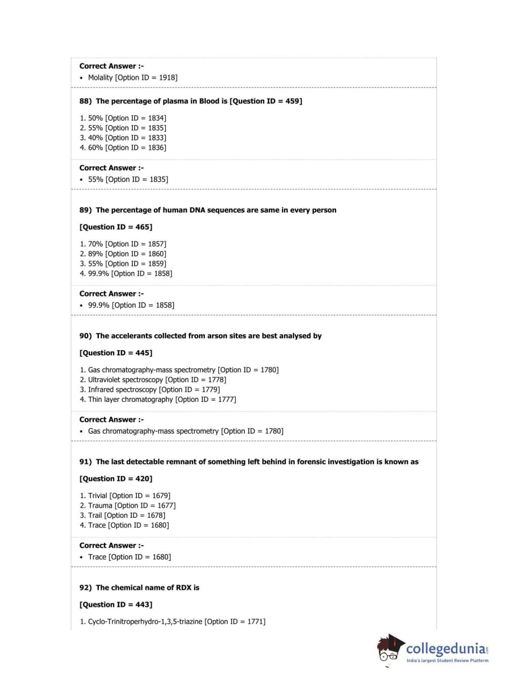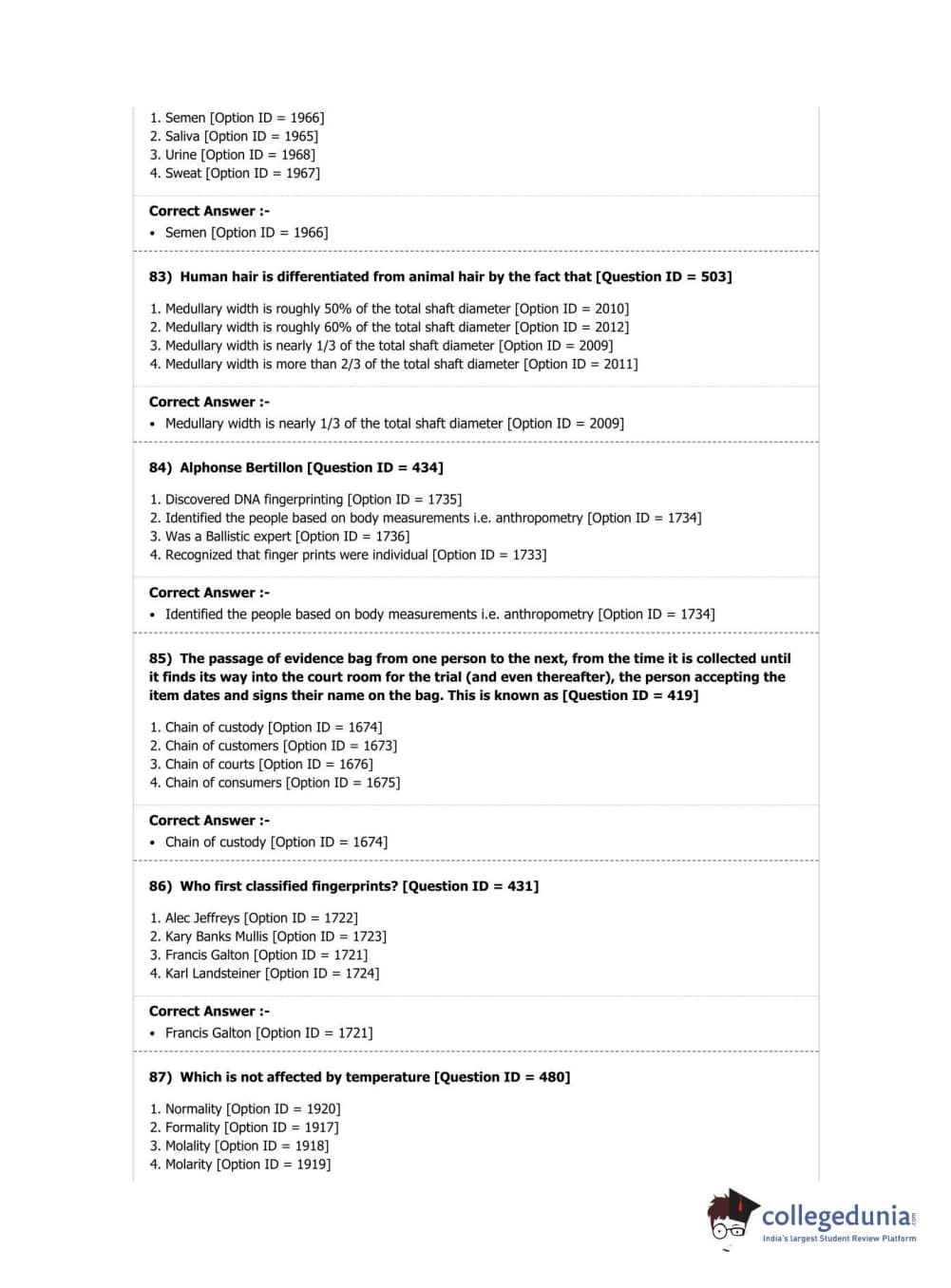 DUET 2019 M.Sc. Forensic Science Question Paper with Answer Key PDF Shift 2