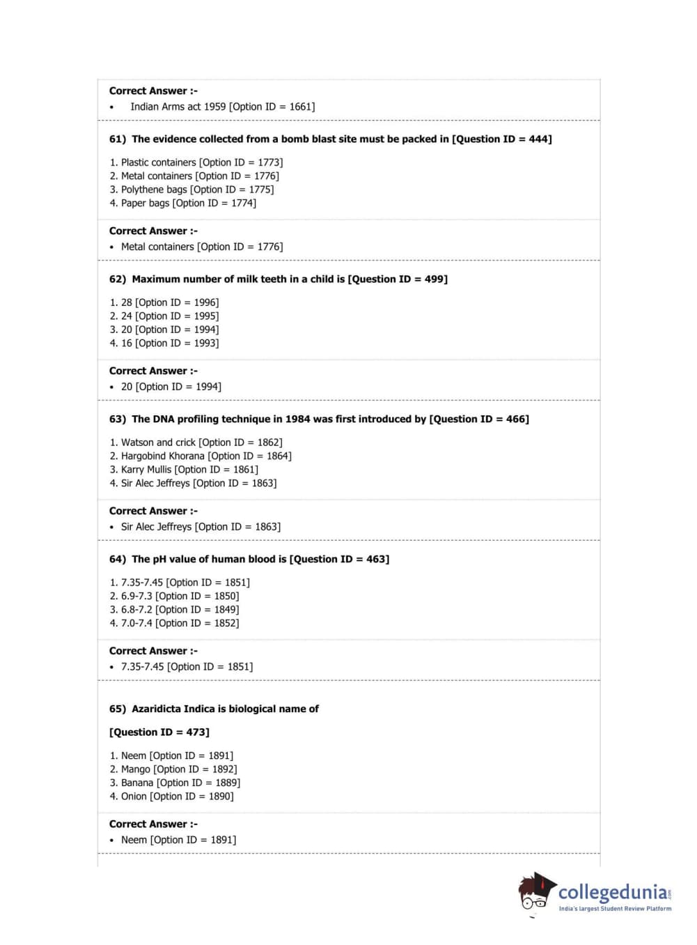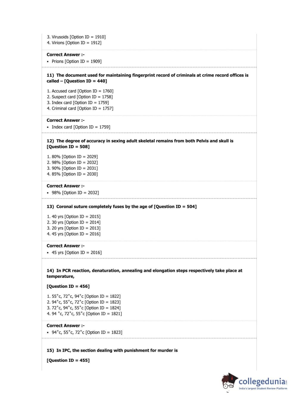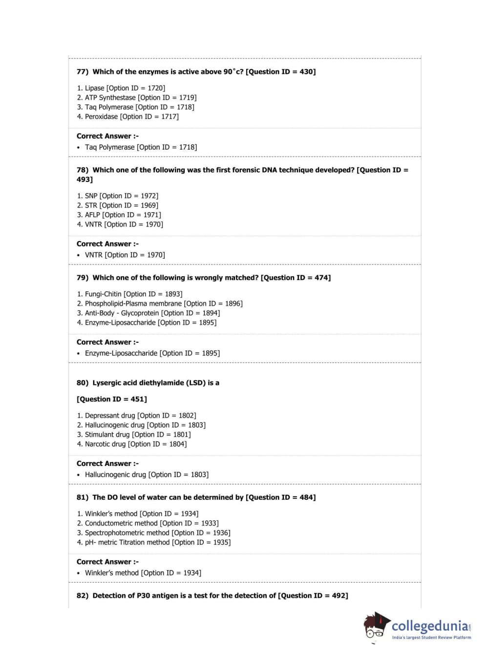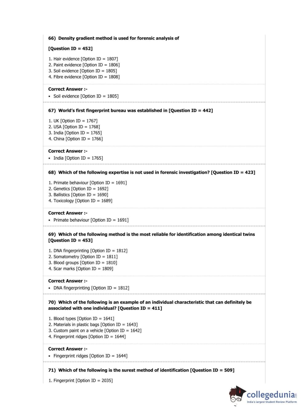 DUET 2019 M.Sc. Forensic Science Question Paper with Answer Key PDF Shift 2