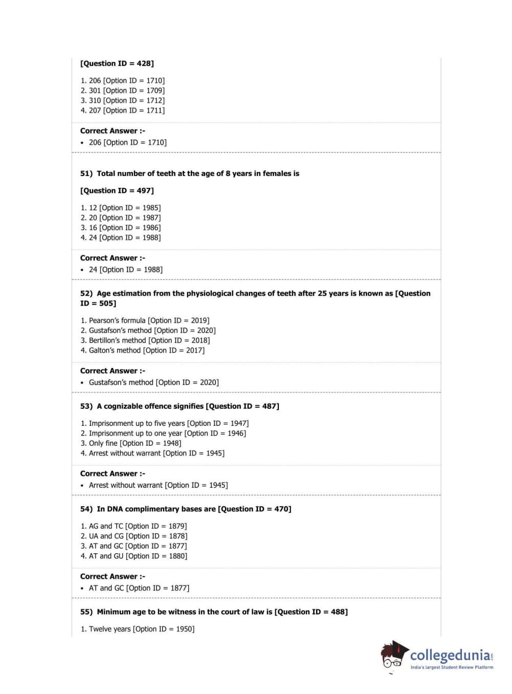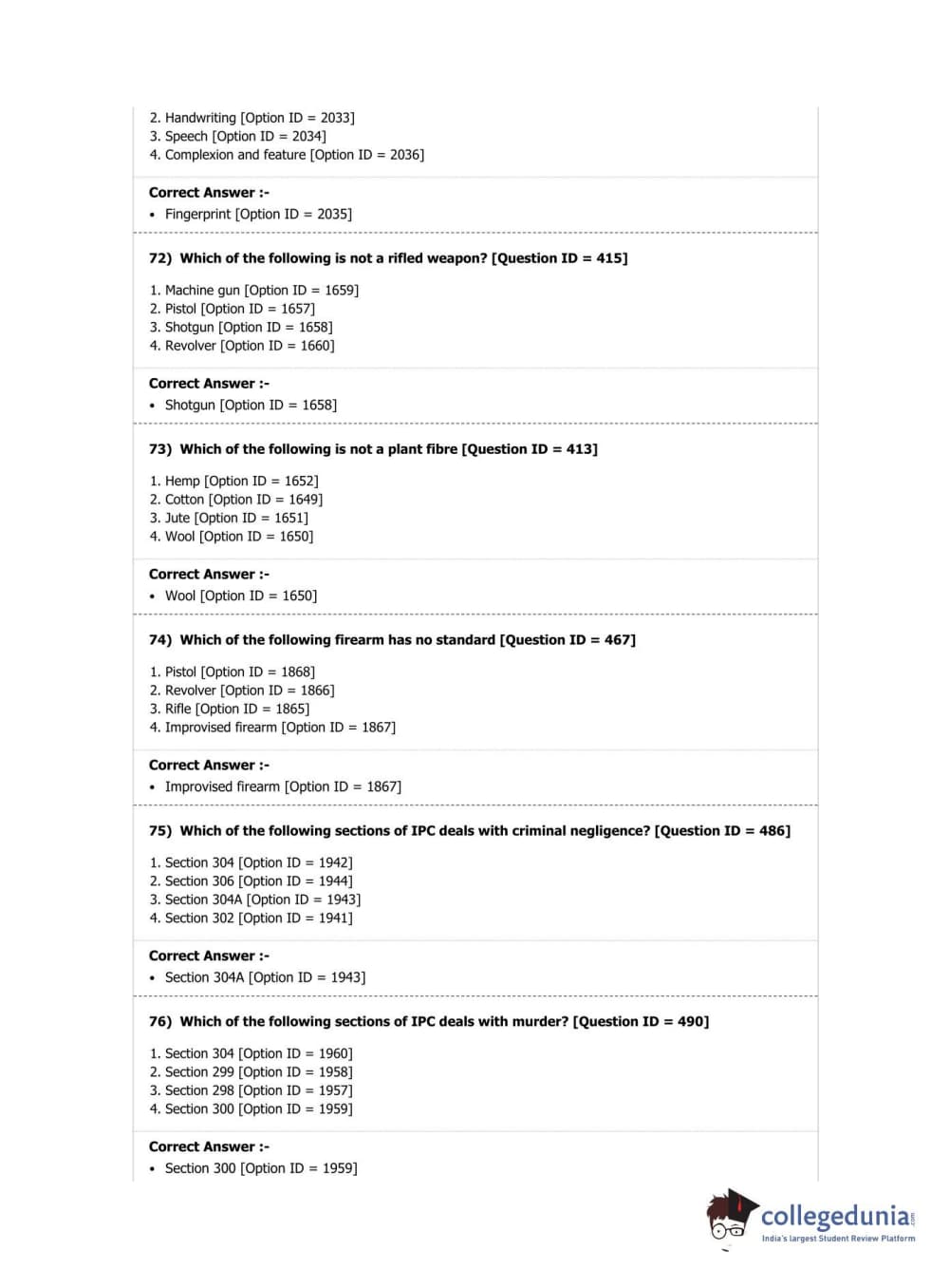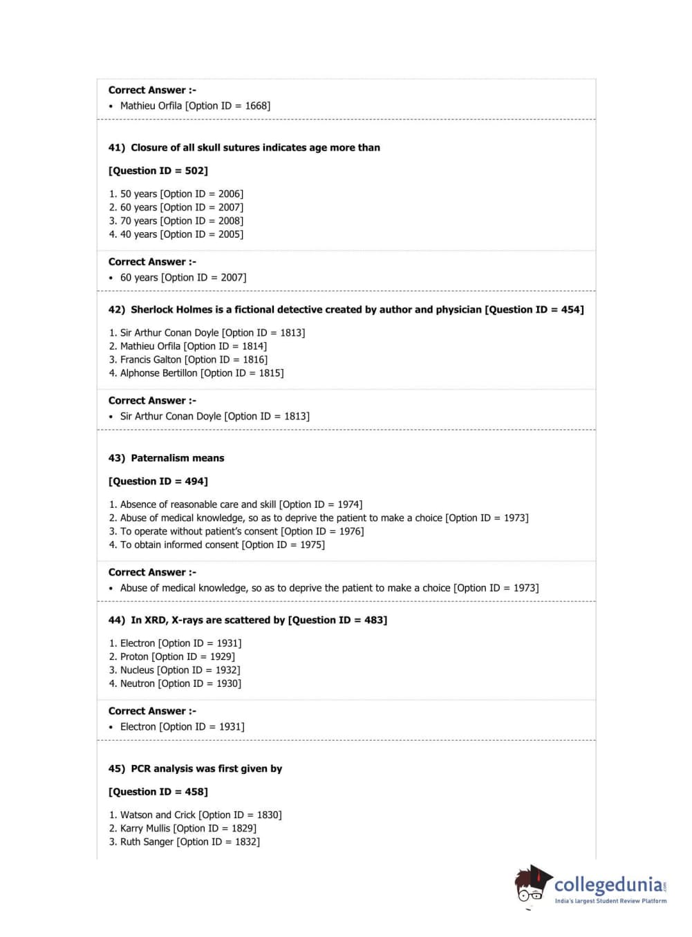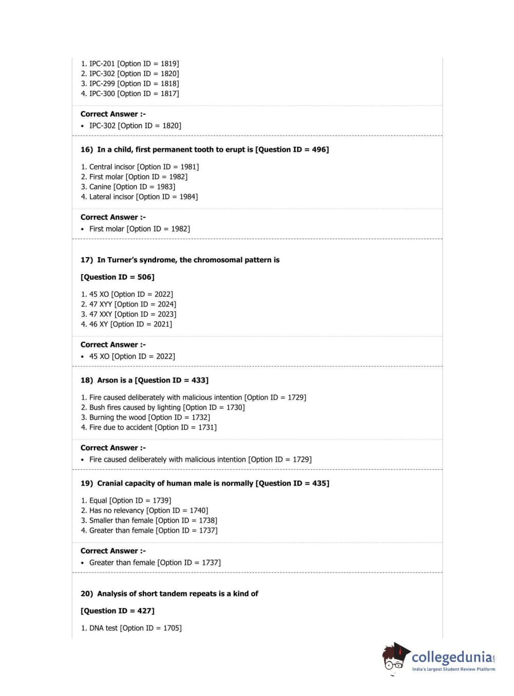 DUET 2019 M.Sc. Forensic Science Question Paper with Answer Key PDF Shift 2