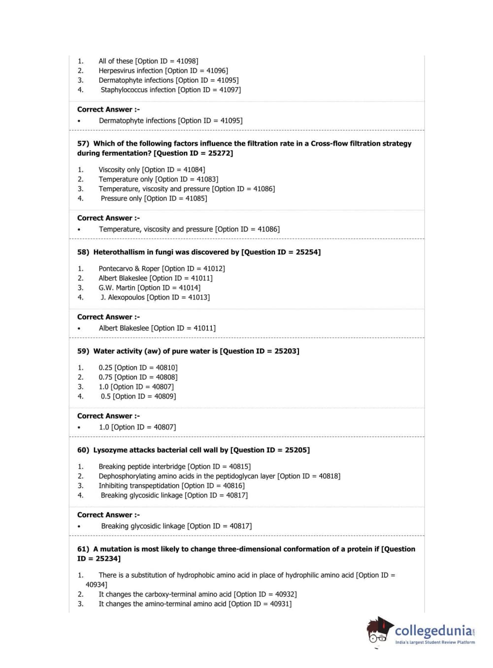 DUET 2019 M.Sc. Microbiology Question Paper with Answer Key PDF Shift 2