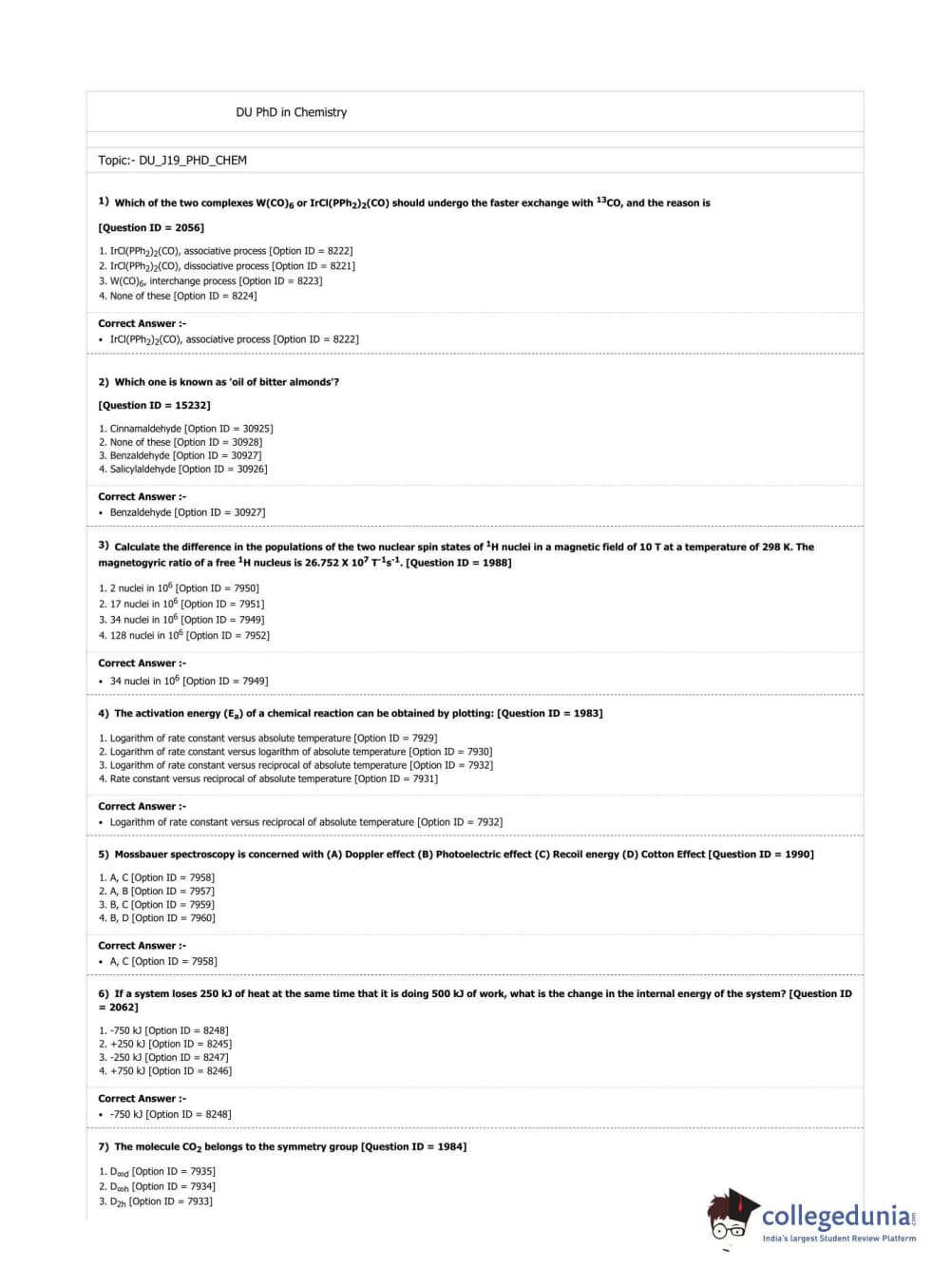 DUET 2019 Ph.D. in Chemistry Question paper with answer key pdf conducted on July 7, 2019 in Shift 3 is available for download. The exam was successfully organized by National Testing Agency (NTA). The question paper comprised a total of 50 questions.
