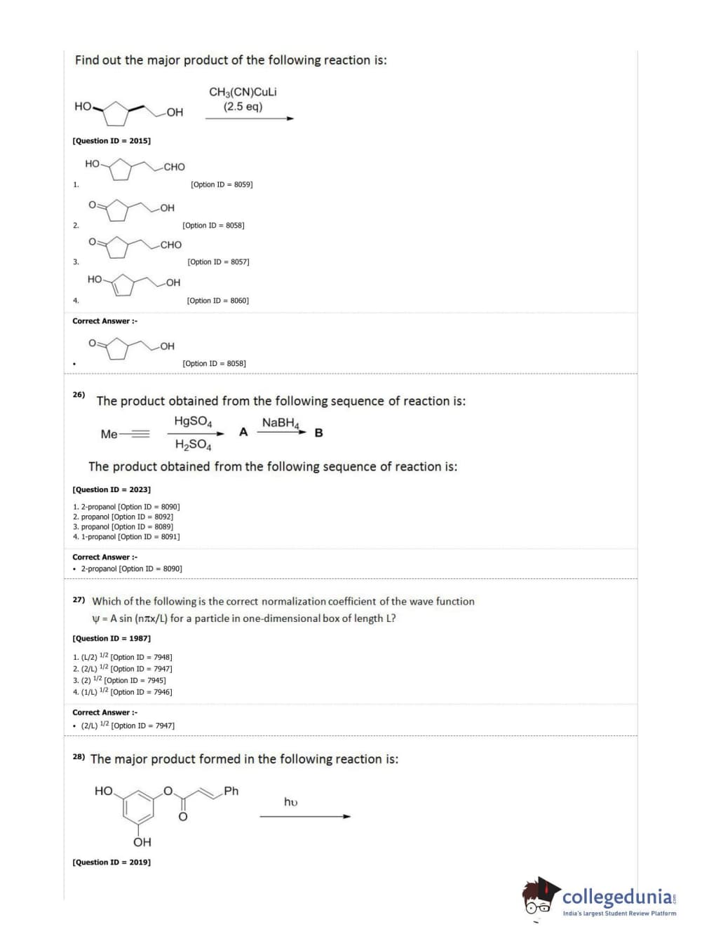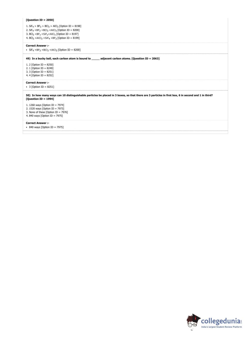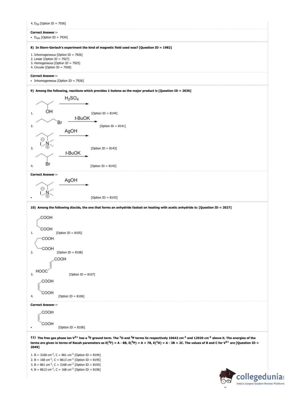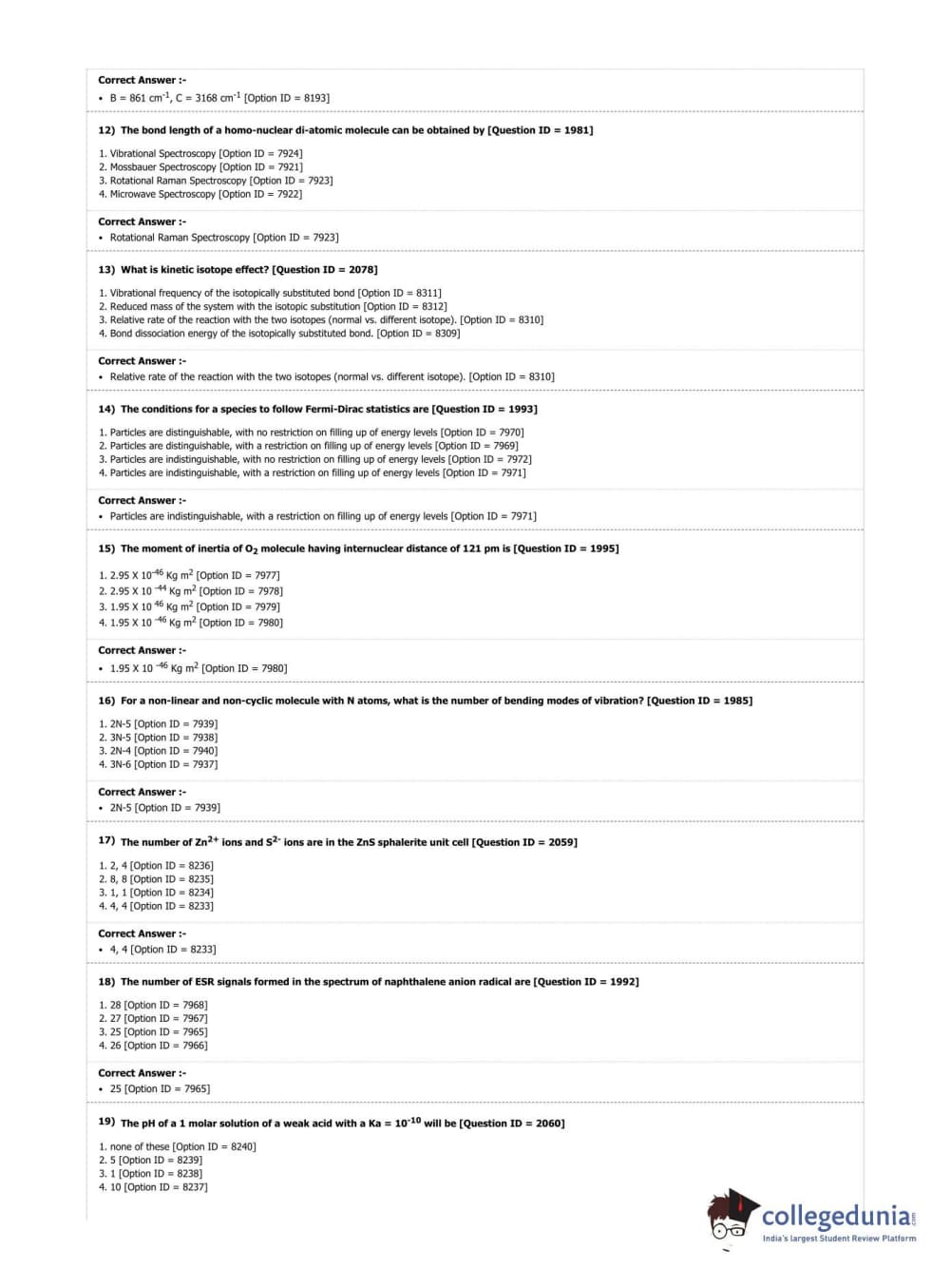 DUET 2019 Ph.D. in Chemistry Question Paper with Answer Key PDF Shift 3