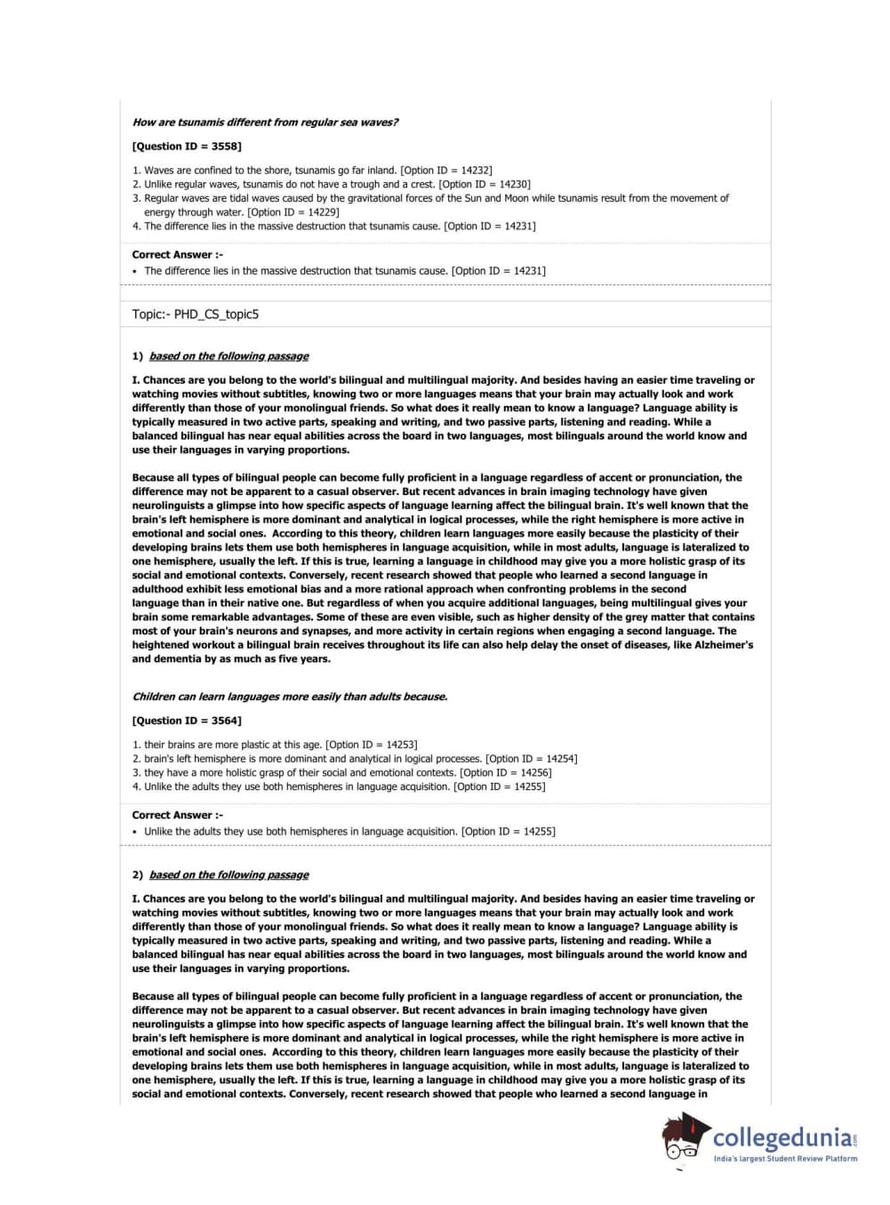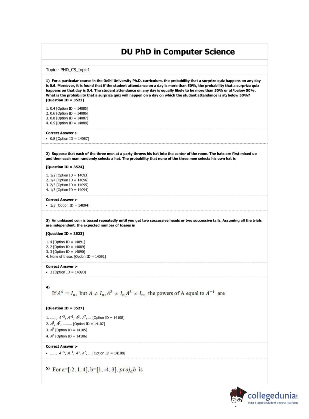 DUET 2019 Ph.D. in Computer Science Question paper with answer key pdf conducted on May 7, 2019 in Shift 2 is available for download. The exam was successfully organized by National Testing Agency (NTA). The question paper comprised a total of 50