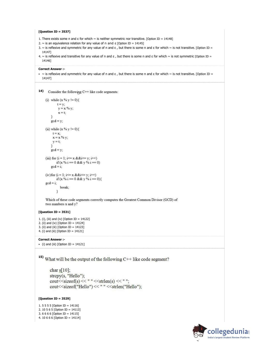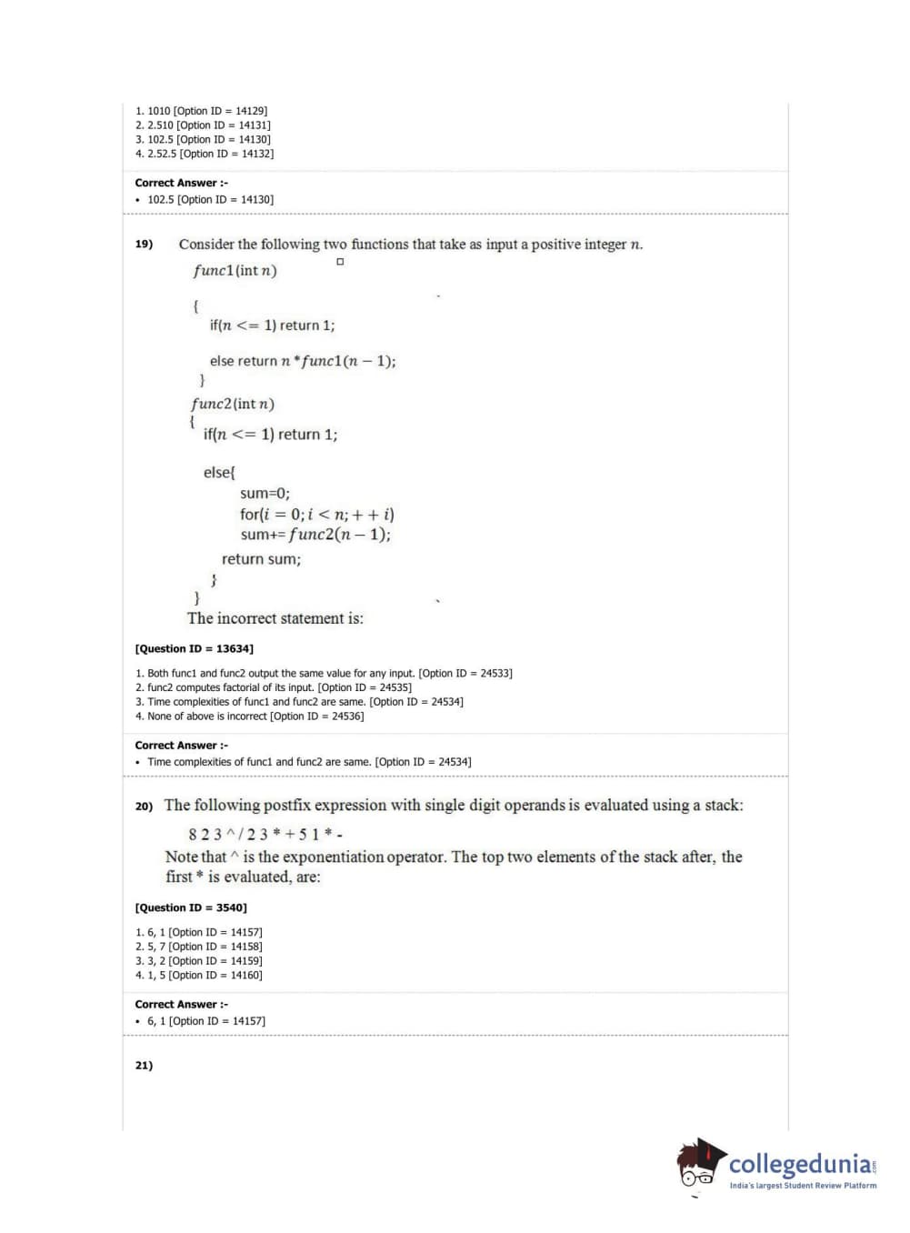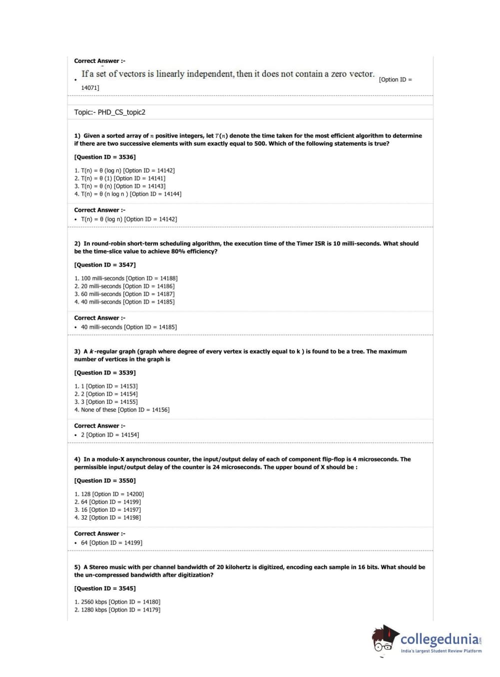 DUET 2019 Ph.D. in Computer Science Question Paper with Answer Key PDF Shift 2