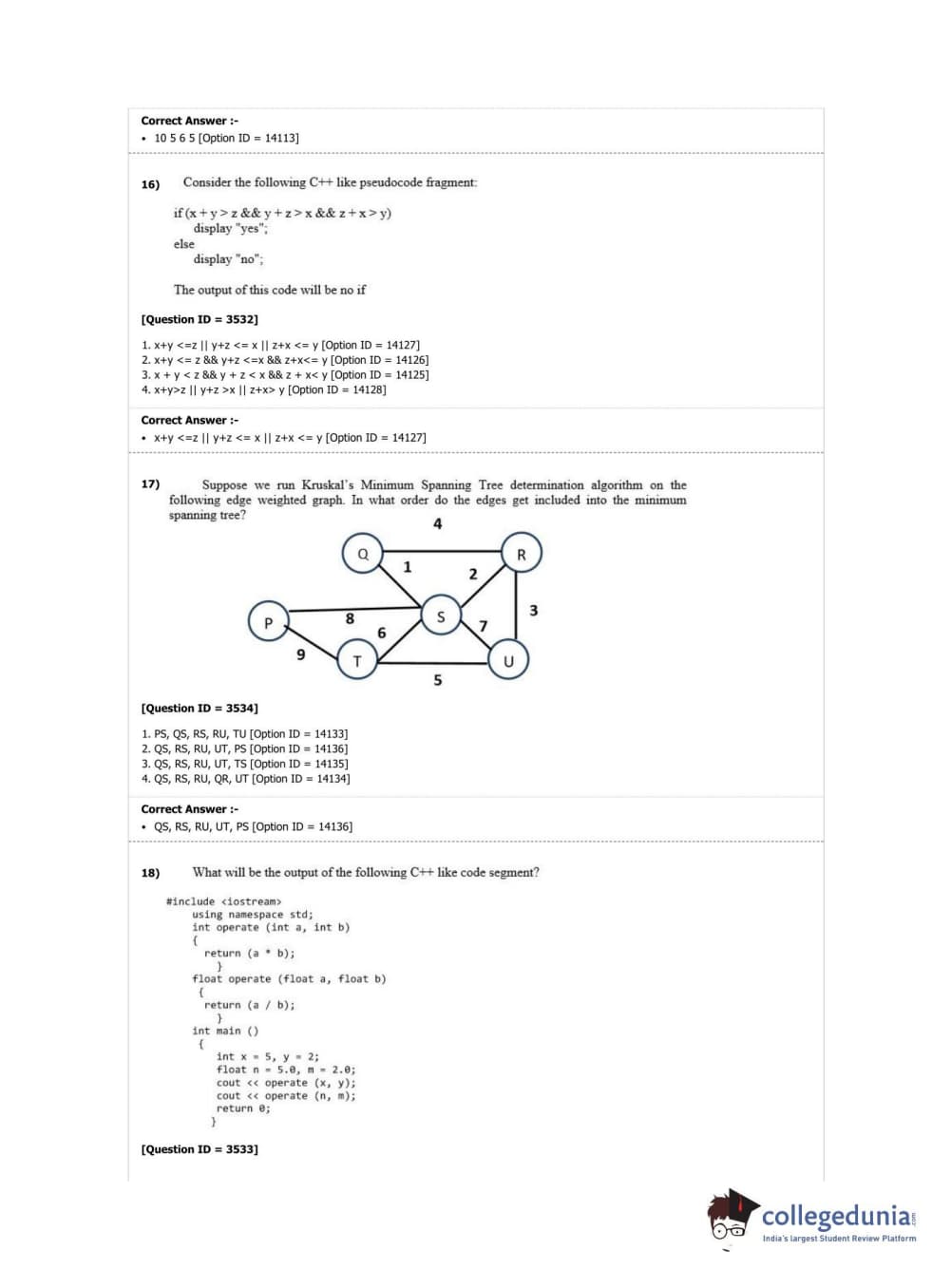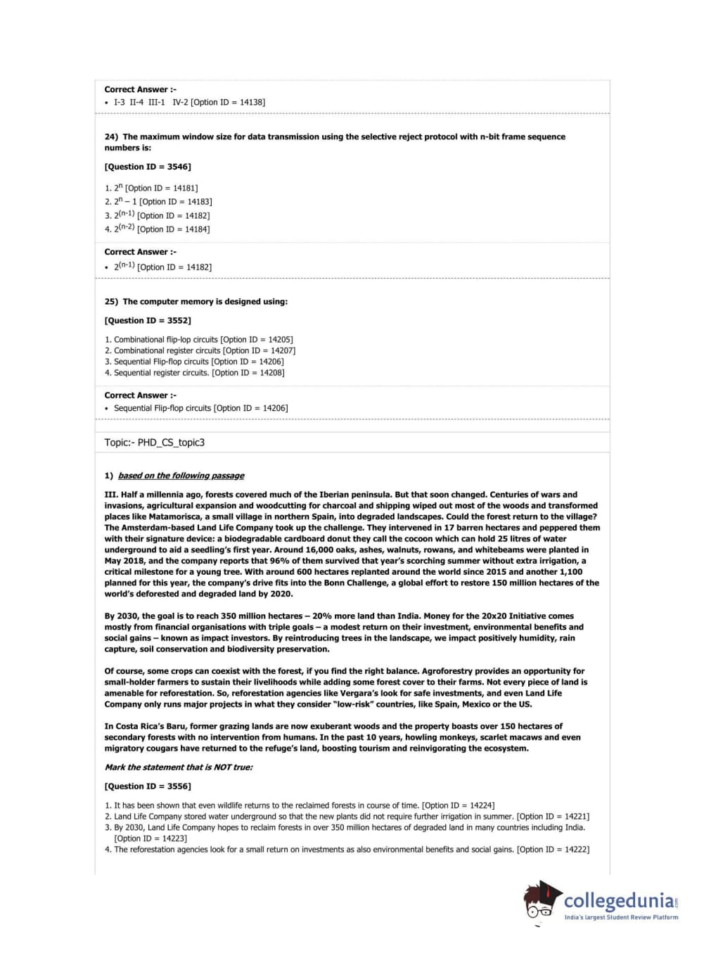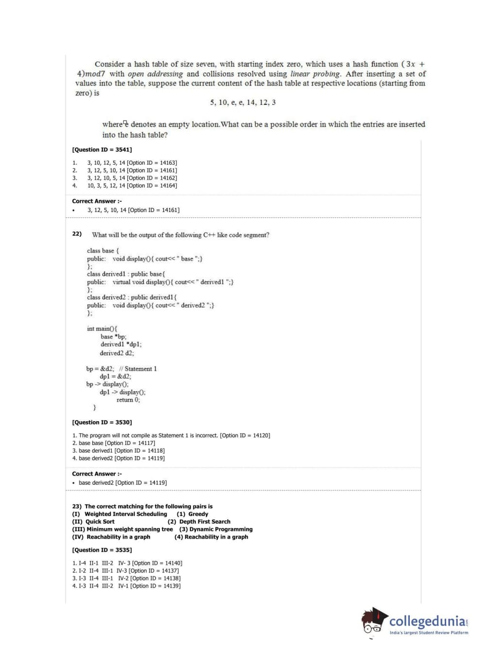DUET 2019 Ph.D. in Computer Science Question Paper with Answer Key PDF Shift 2
