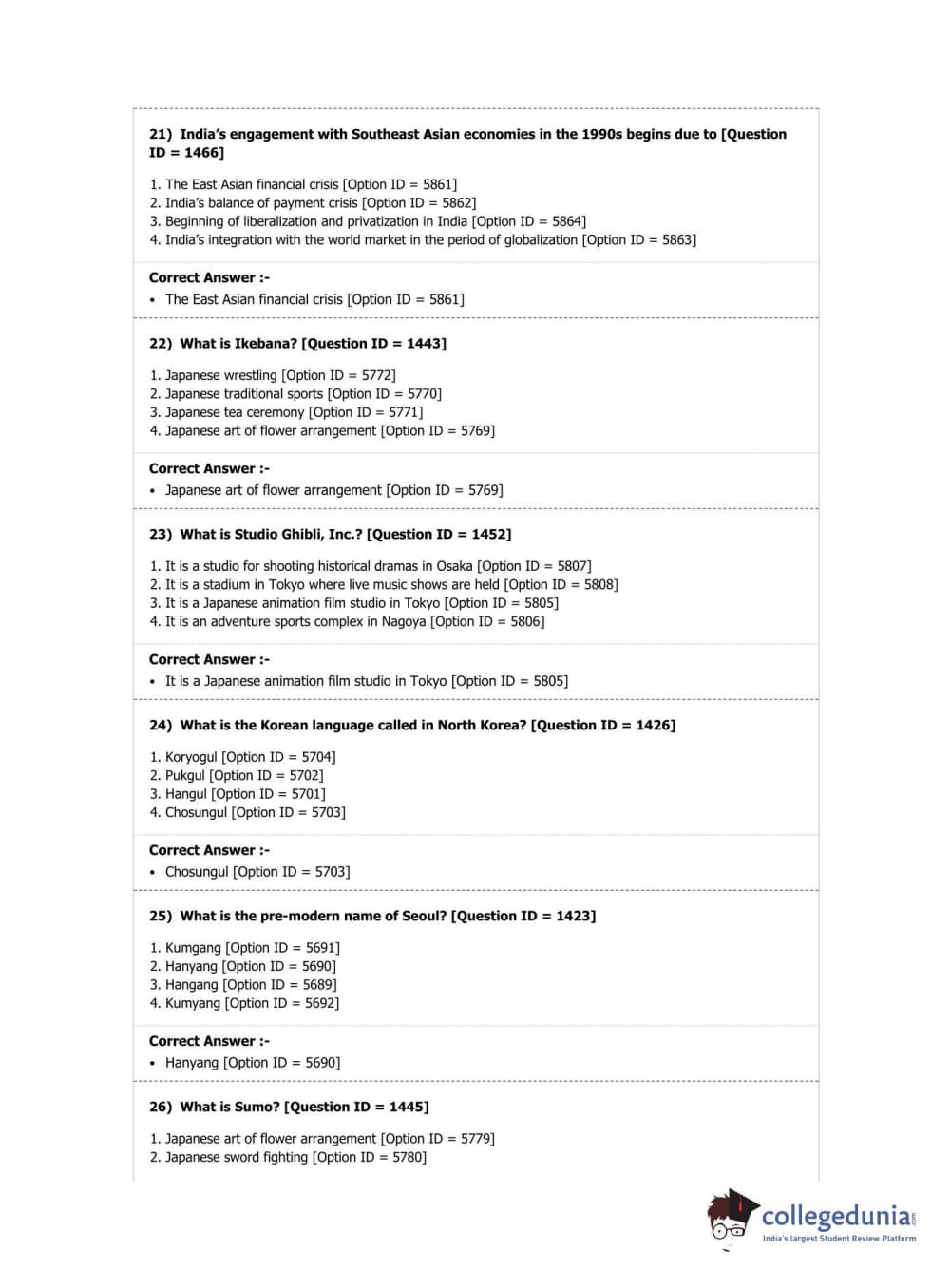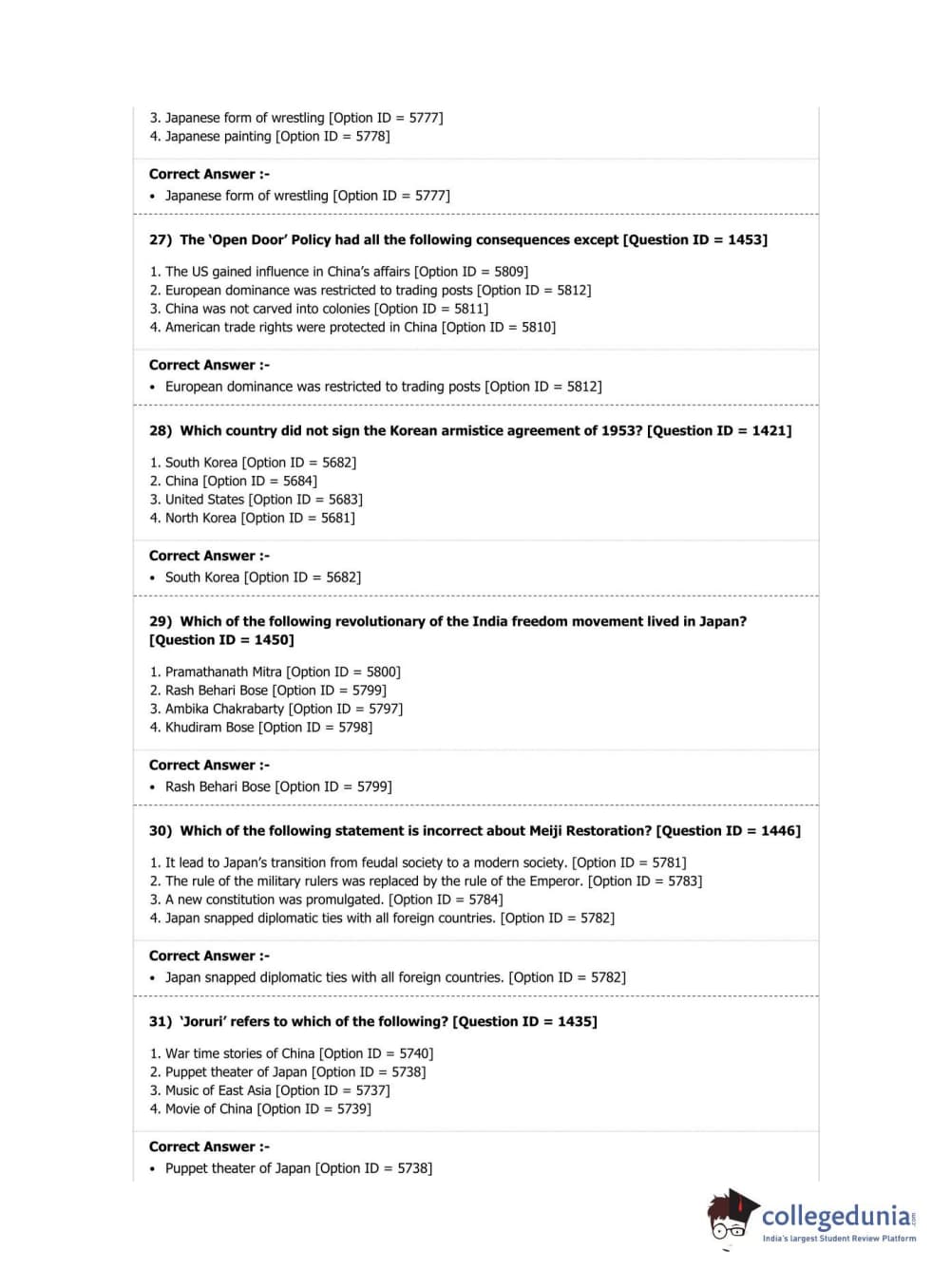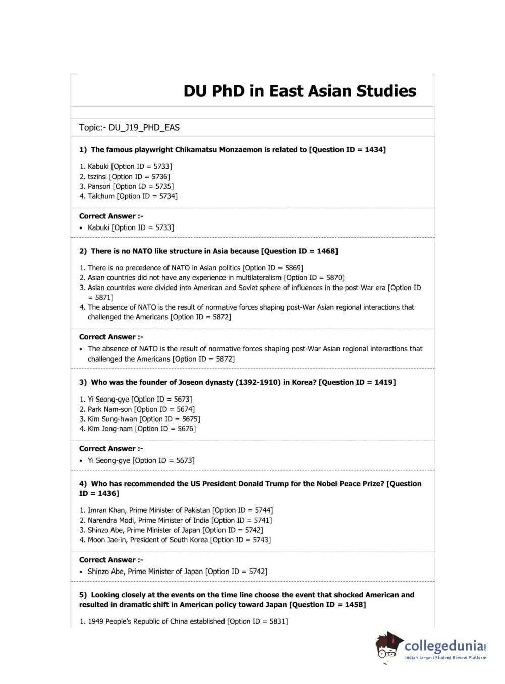 DUET 2019 Ph.D. in East Asian Studies Question Paper with Answer Key PDF Shift 2