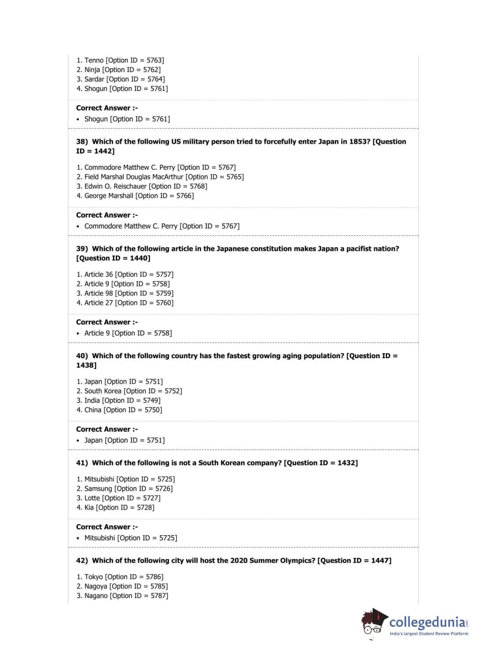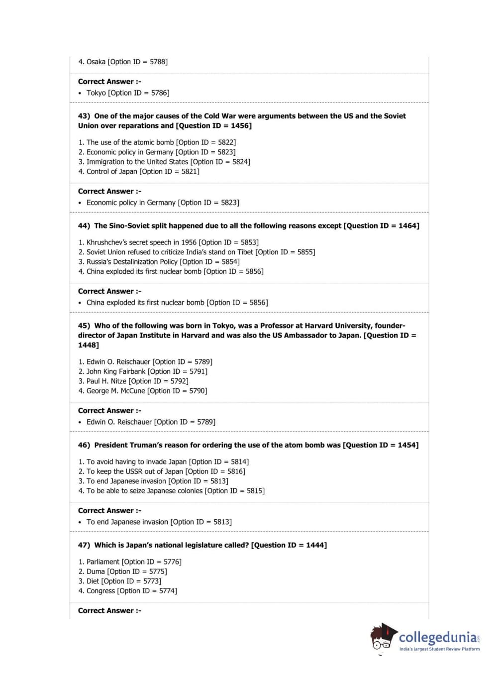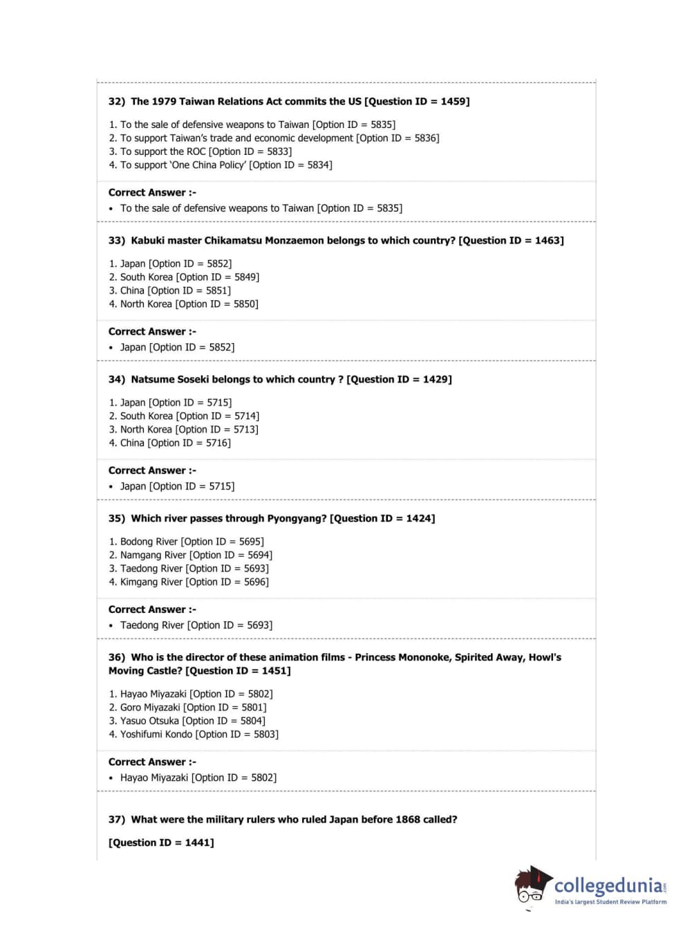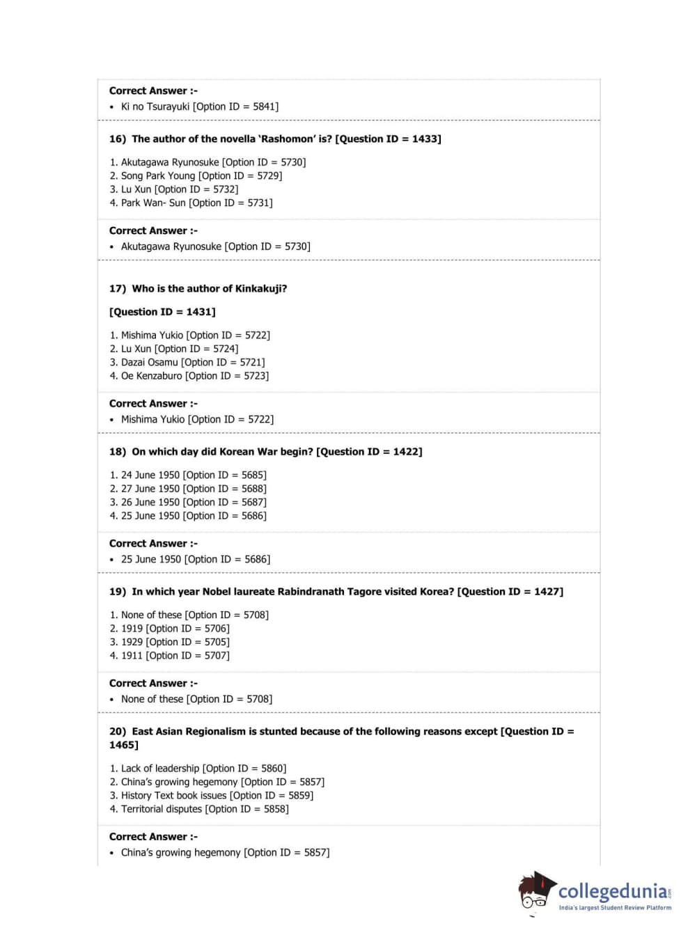 DUET 2019 Ph.D. in East Asian Studies Question Paper with Answer Key PDF Shift 2