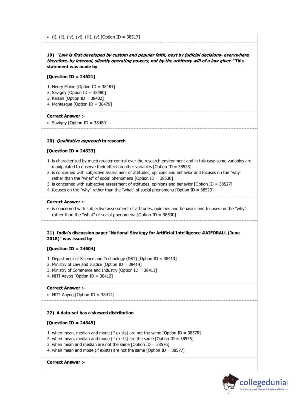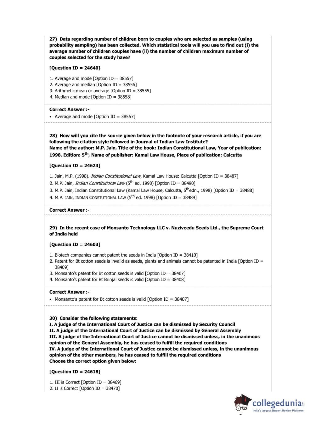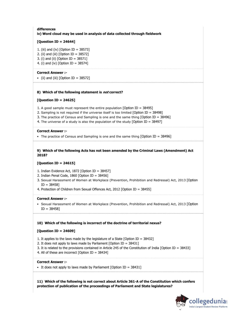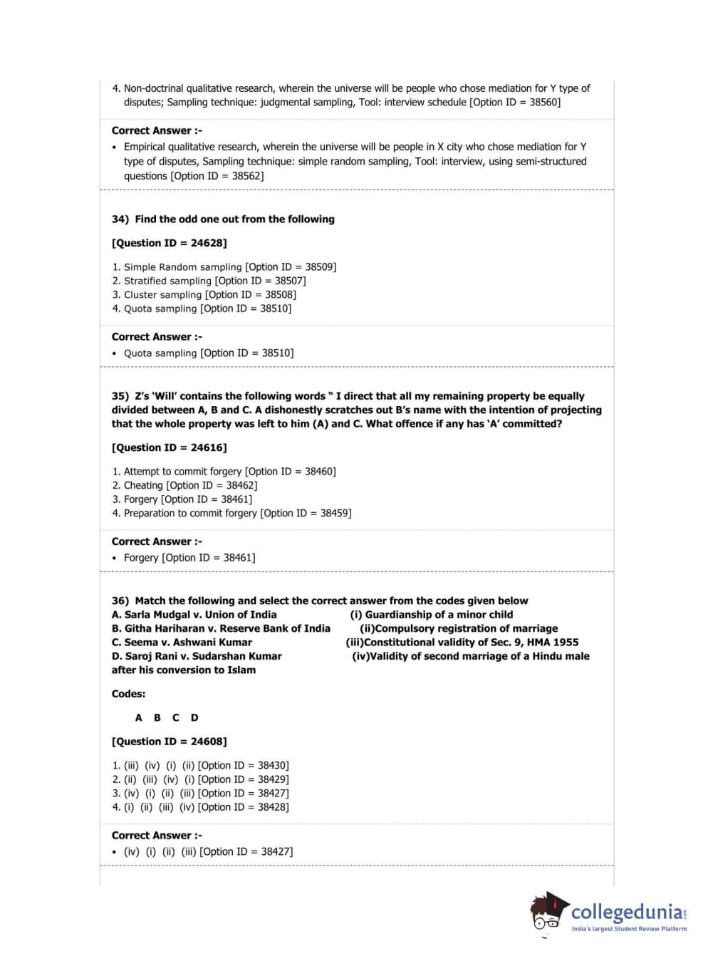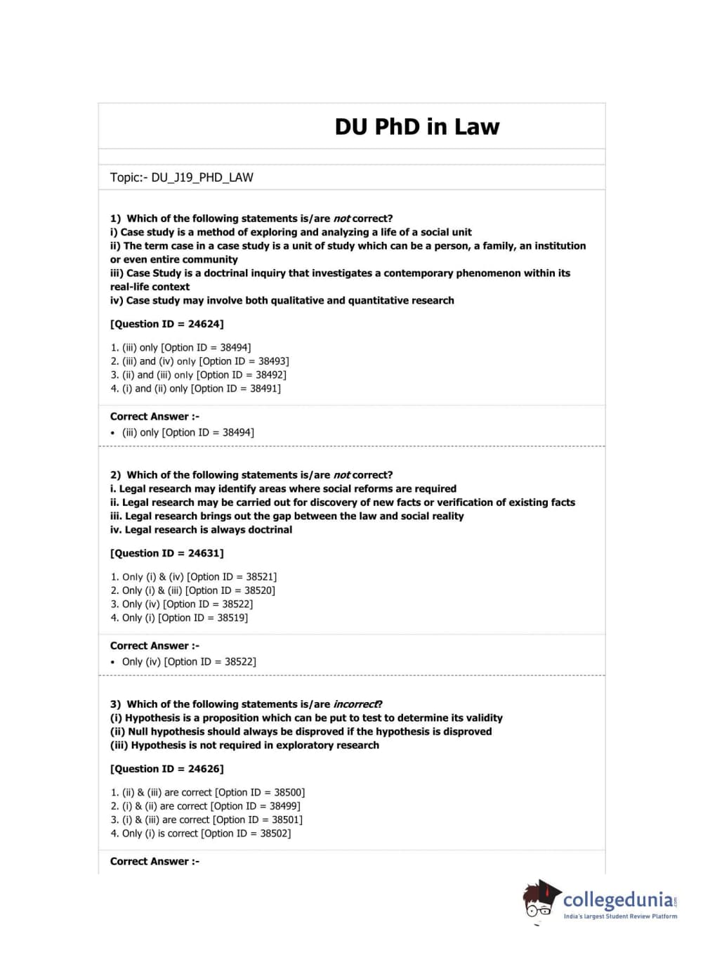 DUET 2019 Ph.D in Law Question Paper with Answer Key PDF Shift 2