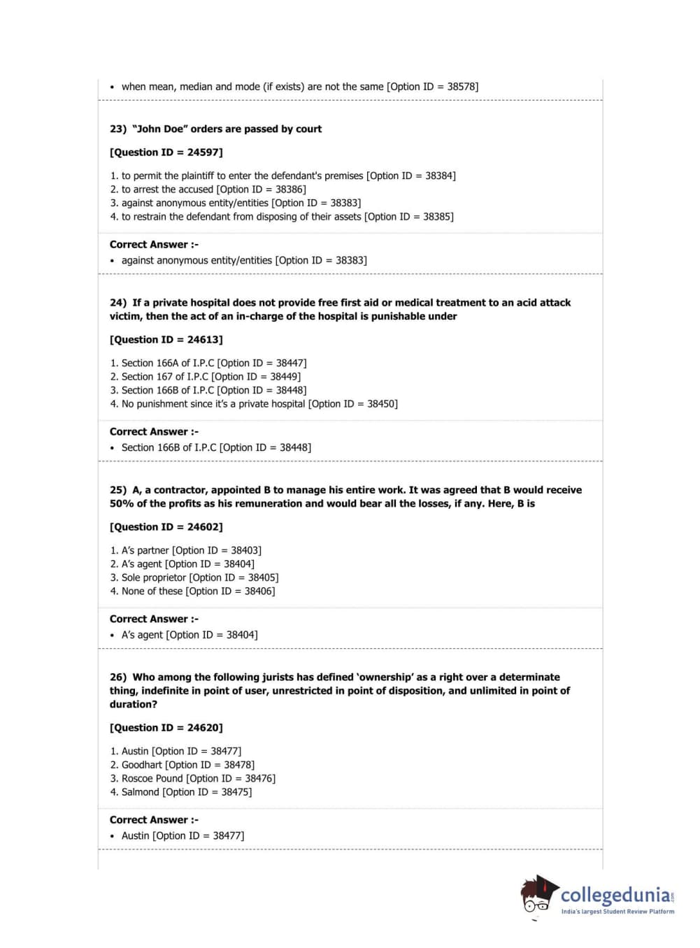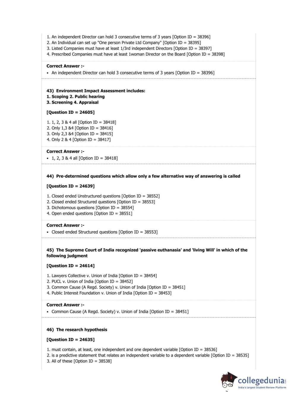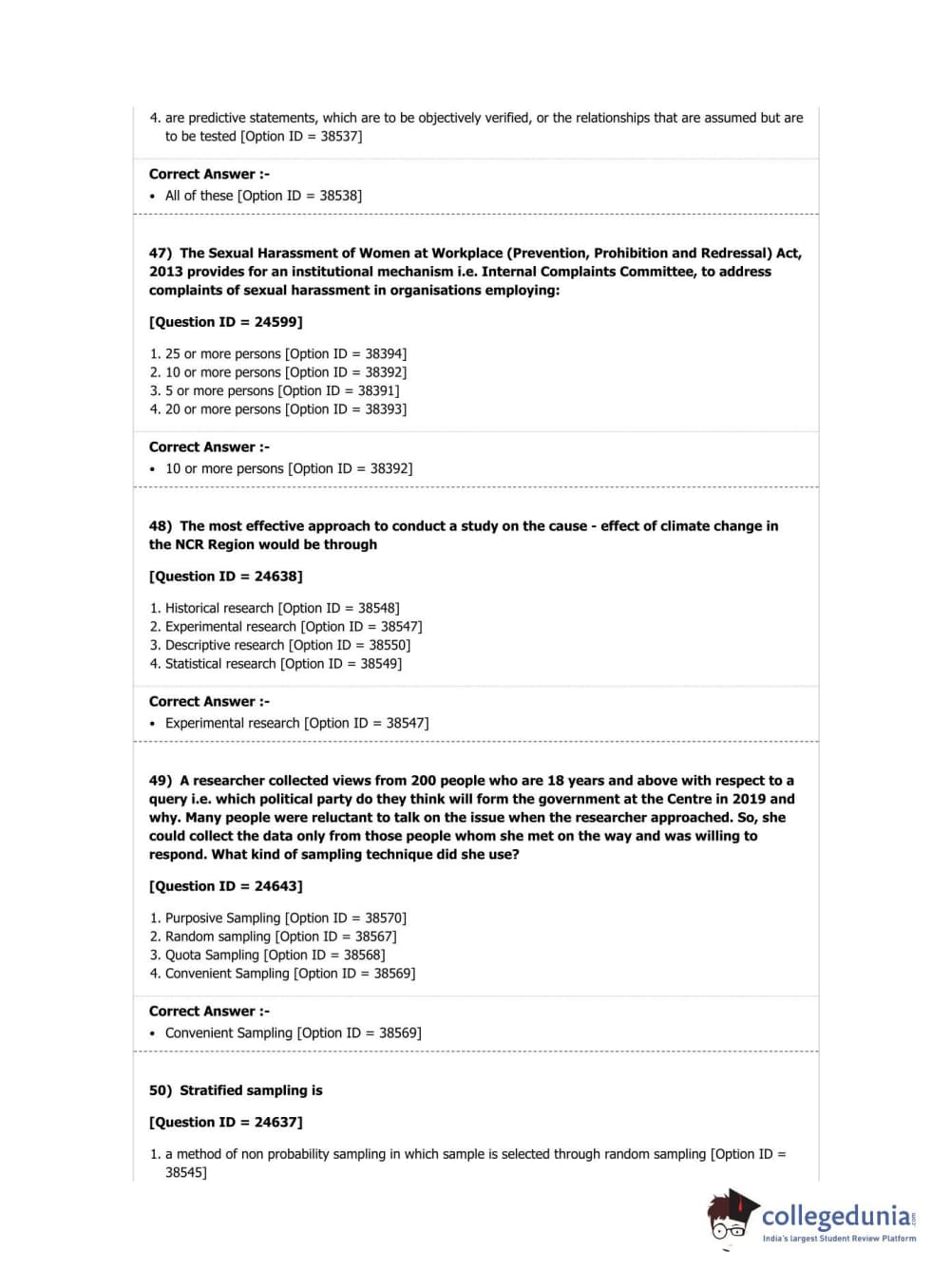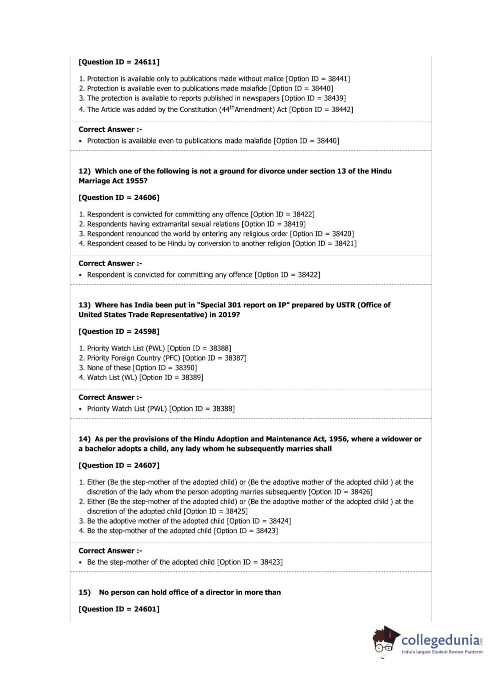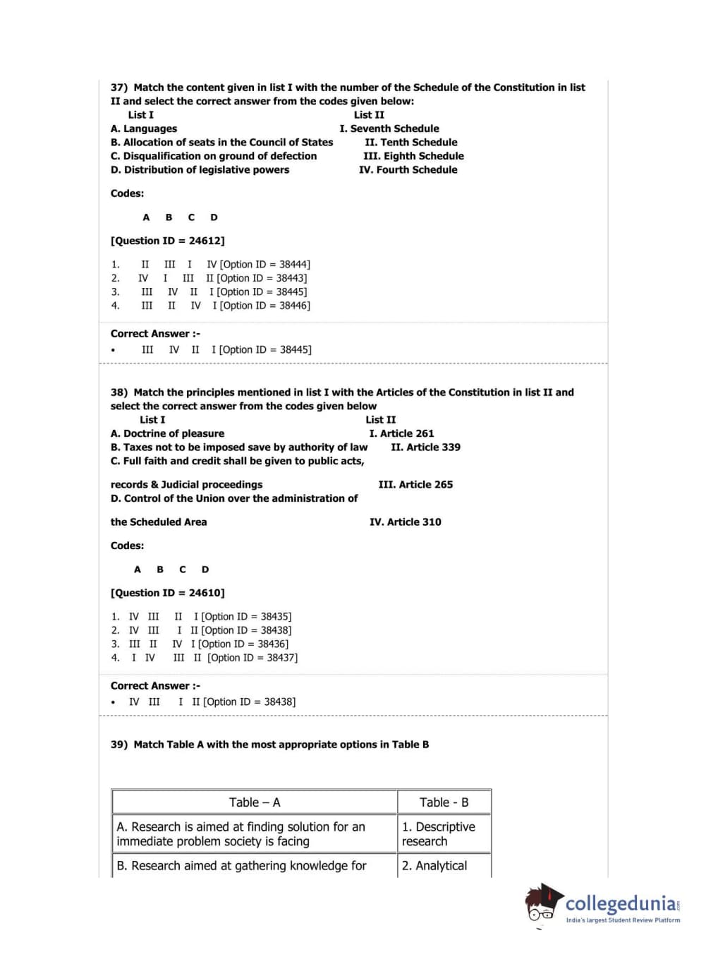 DUET 2019 Ph.D in Law Question Paper with Answer Key PDF Shift 2
