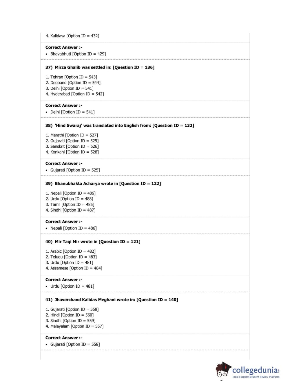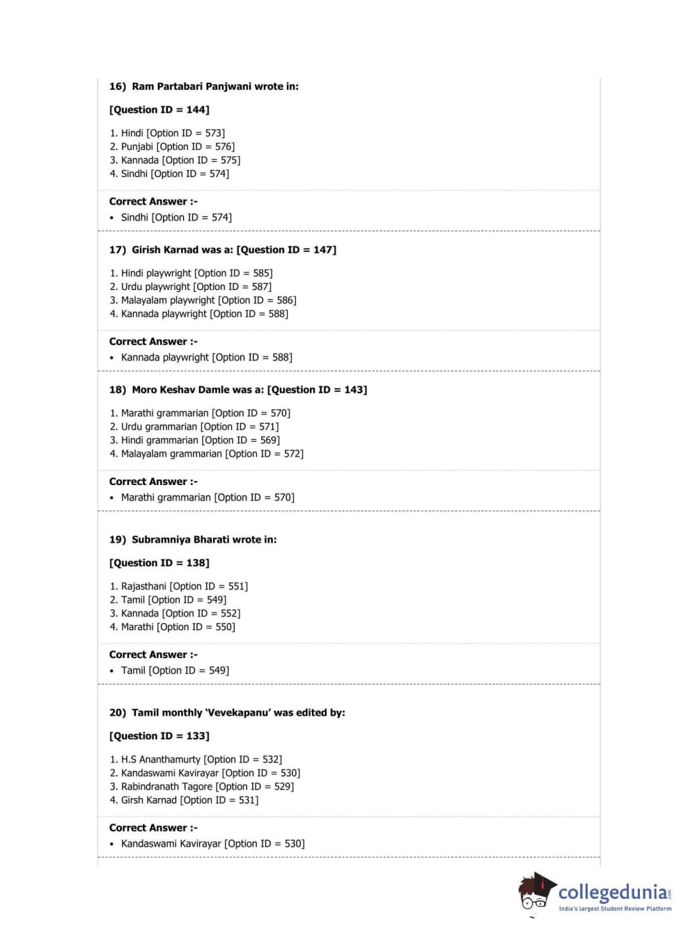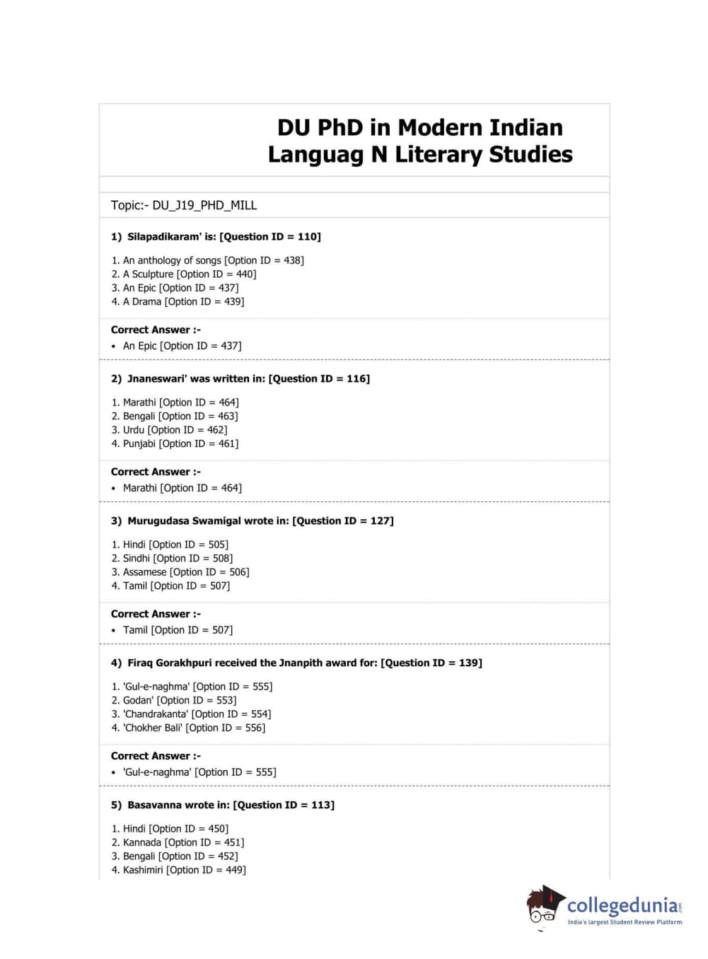 DUET 2019 Ph.D. in Modern Indian Languages & Literary Studies Question Paper with Answer Key PDF Shift 2