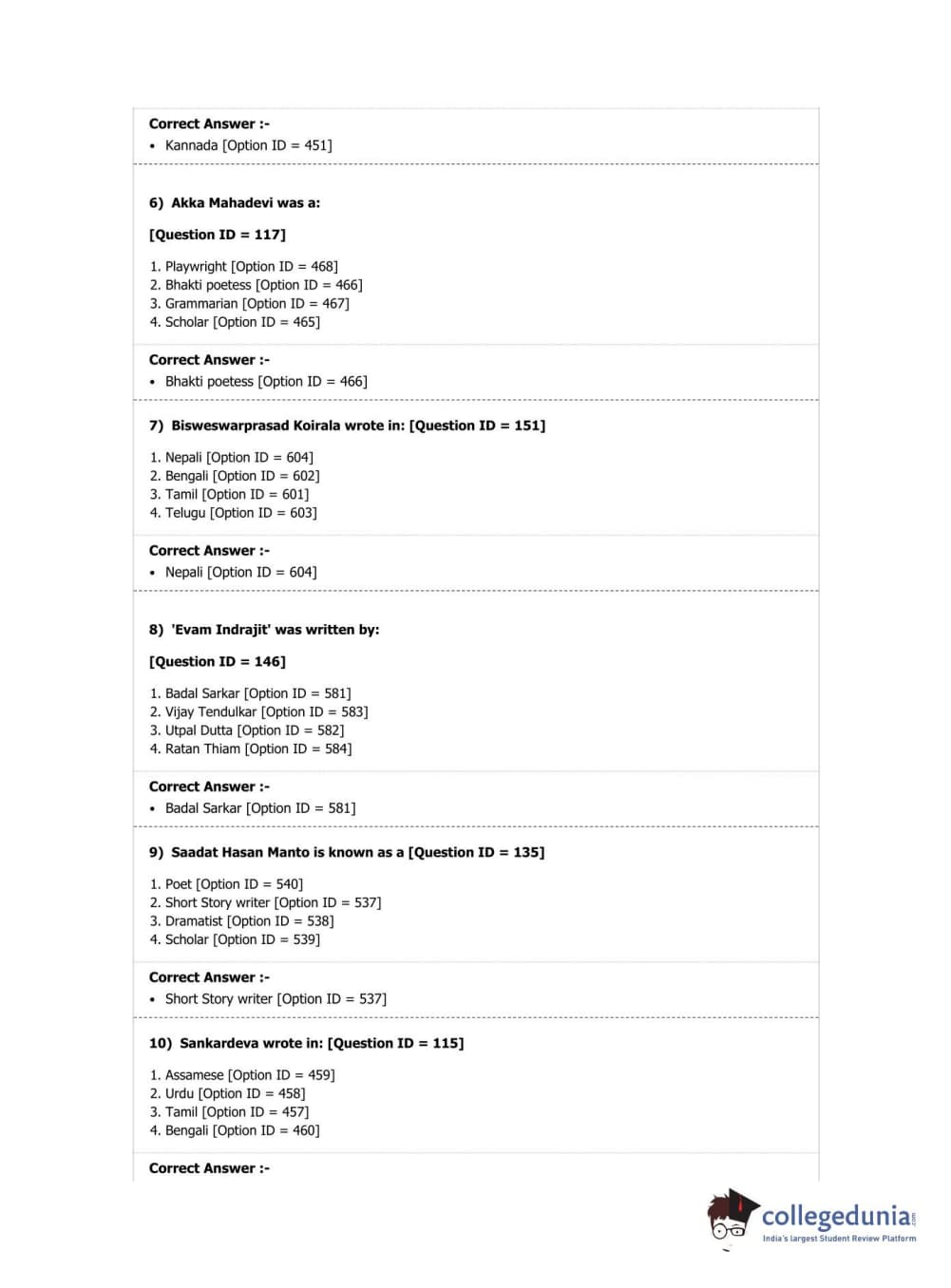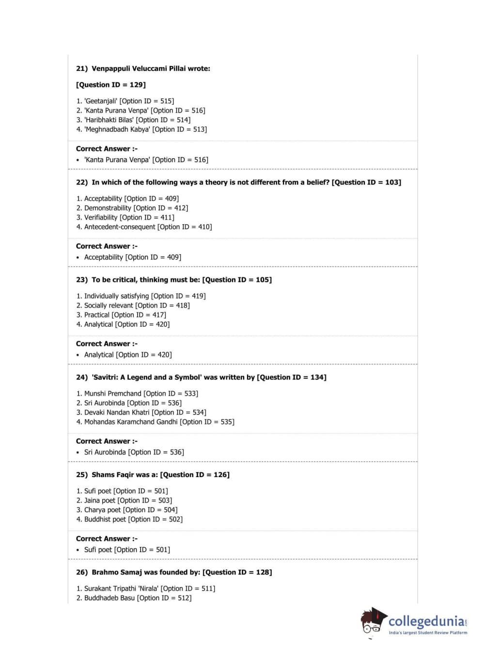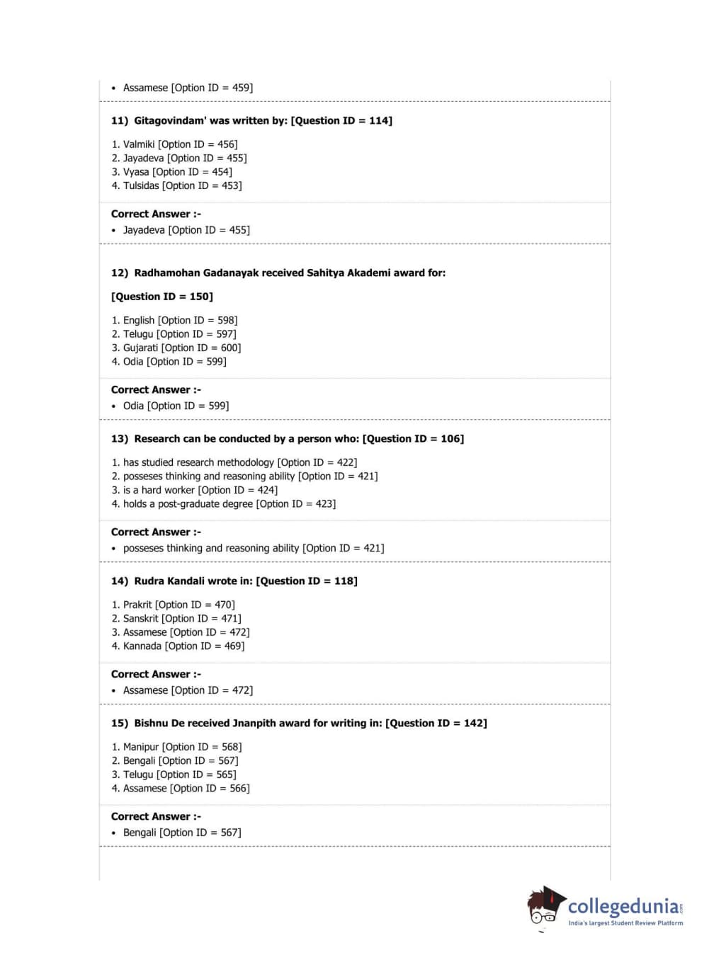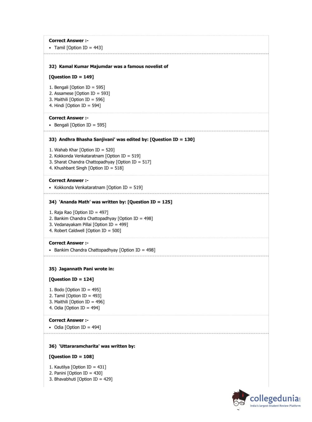 DUET 2019 Ph.D. in Modern Indian Languages & Literary Studies Question Paper with Answer Key PDF Shift 2