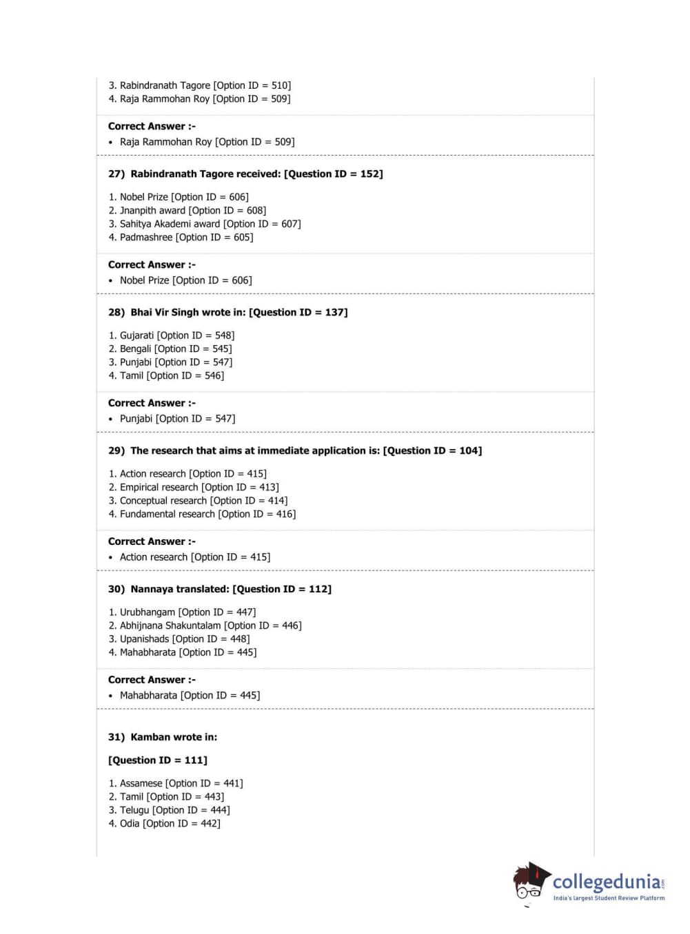 DUET 2019 Ph.D. in Modern Indian Languages & Literary Studies Question paper with answer key pdf conducted on April 7, 2019 in Shift 2 is available for download. The exam was successfully organized by National Testing Agency (NTA). The question paper comprised a total of 50 questions.