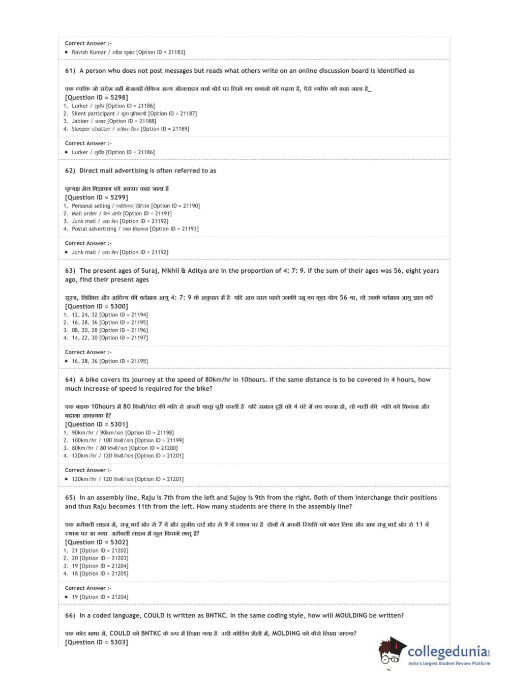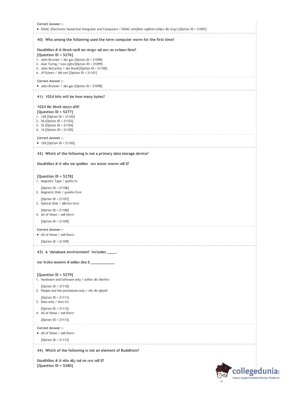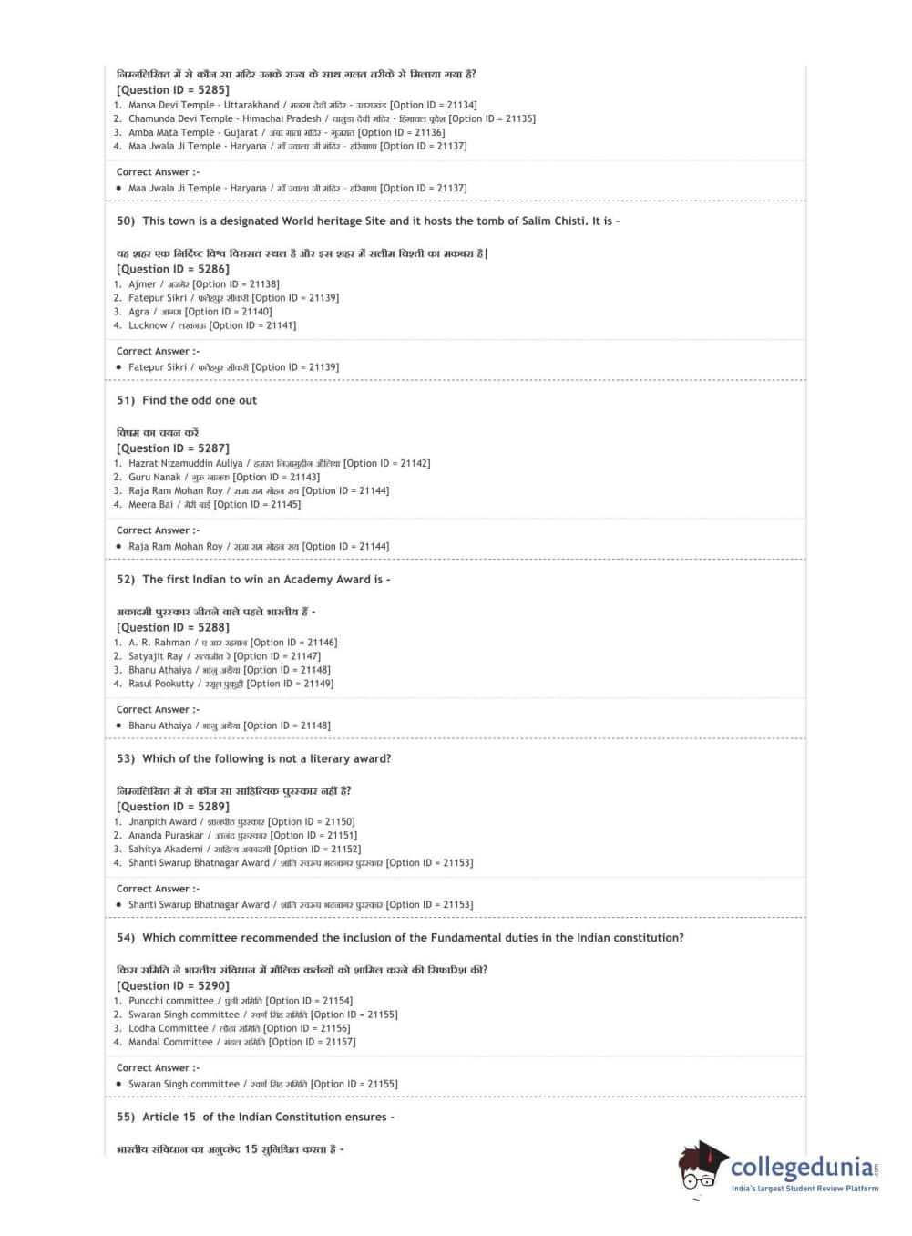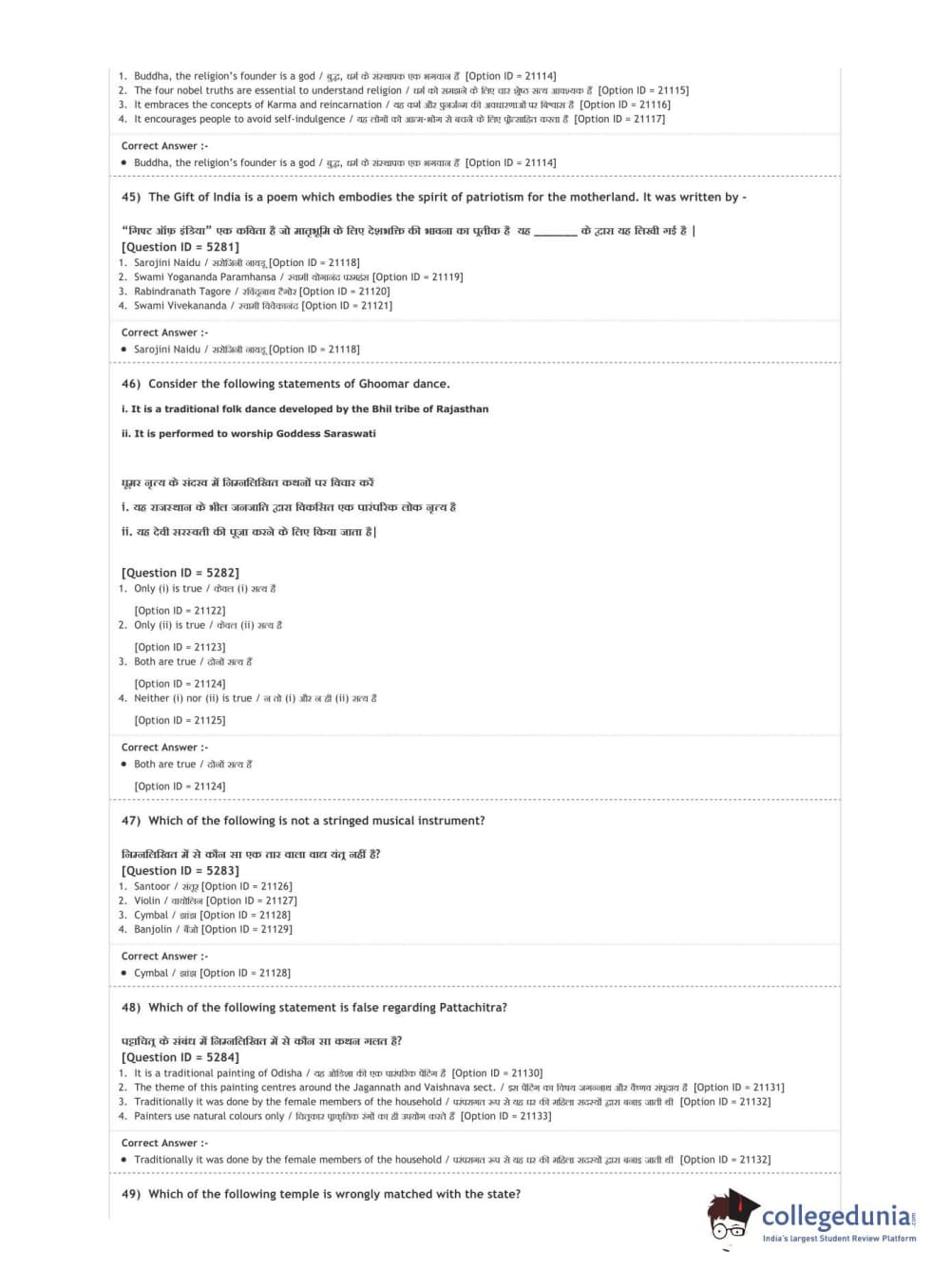 | DUET Subject | Question Paper with Answer Key PDF |