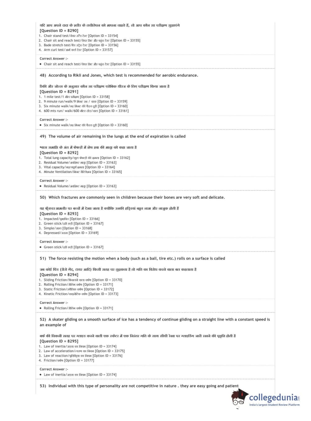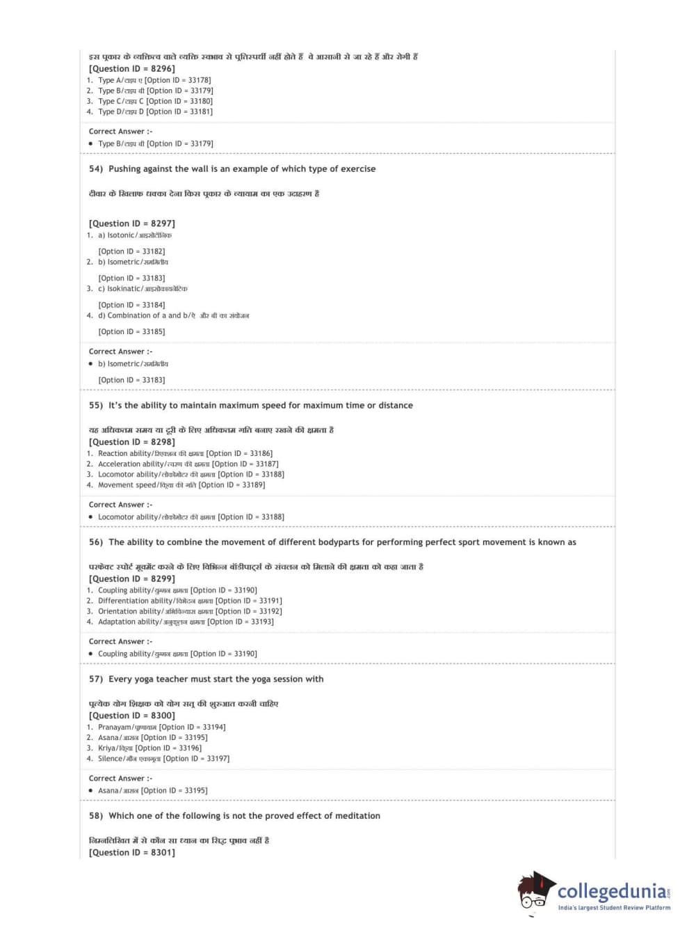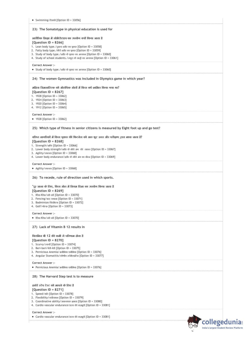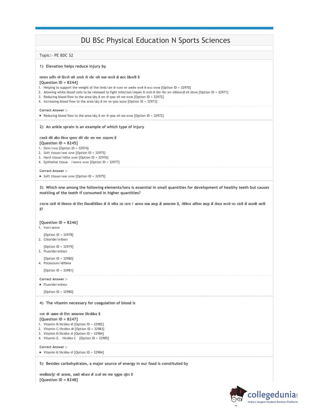 DUET 2020 B.Sc. Physical Education, Health Education & Sports Sciences Question paper with answer key pdf conducted on October 9, 2020 in Shift 3 is available for download. The exam was successfully organized by National Testing Agency (NTA). The question paper comprised a total of 100 questions.