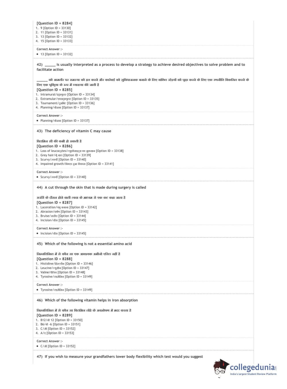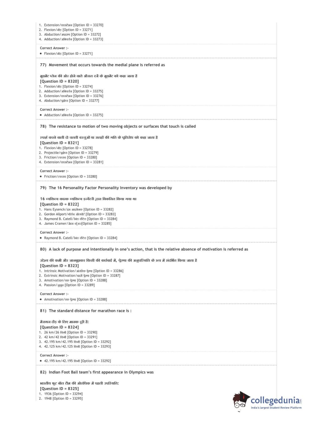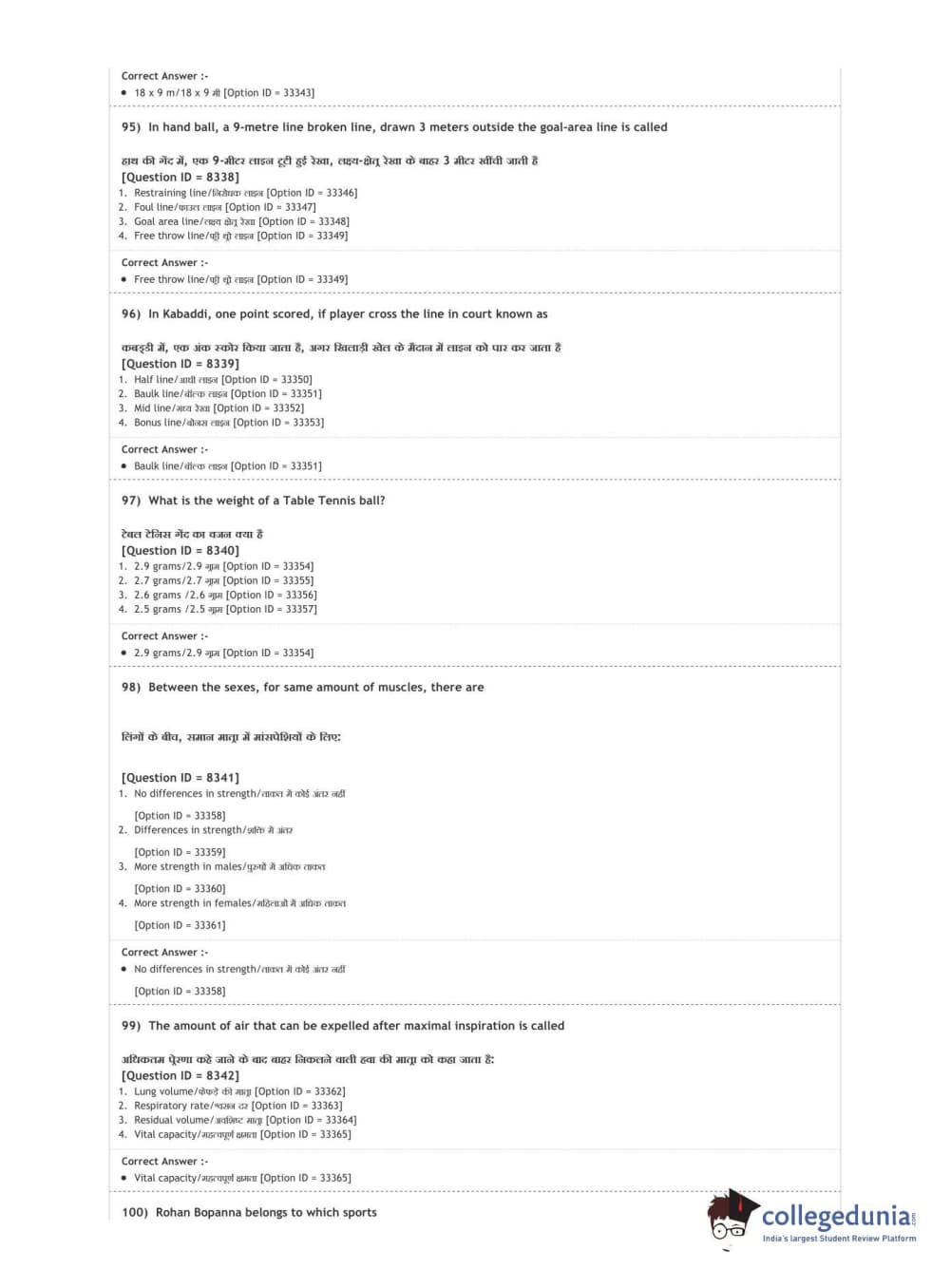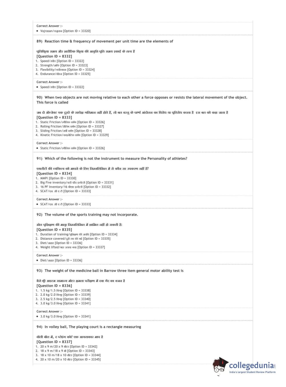 DUET 2020 B.Sc. Physical Education, Health Education & Sports Sciences Question paper with answer key pdf conducted on October 9, 2020 in Shift 3 is available for download. The exam was successfully organized by National Testing Agency (NTA). The question paper comprised a total of 100 questions.