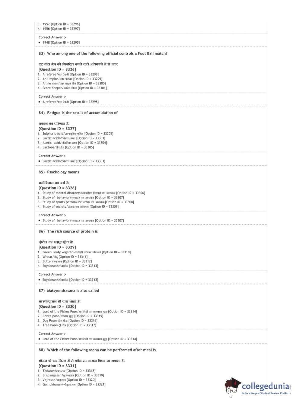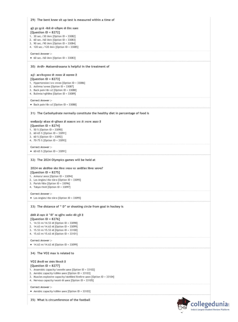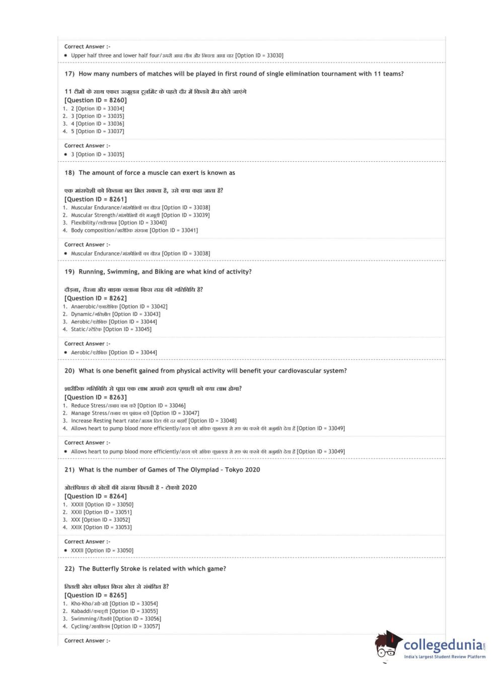 DUET 2020 B.Sc. Physical Education, Health Education & Sports Sciences Question Paper with Answer Key PDF Shift 3