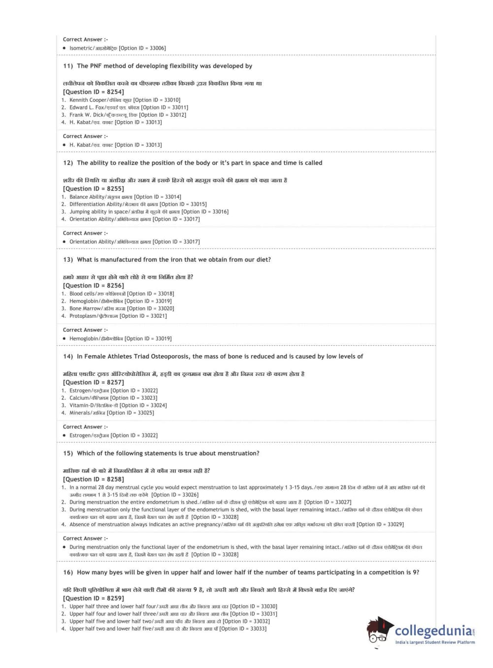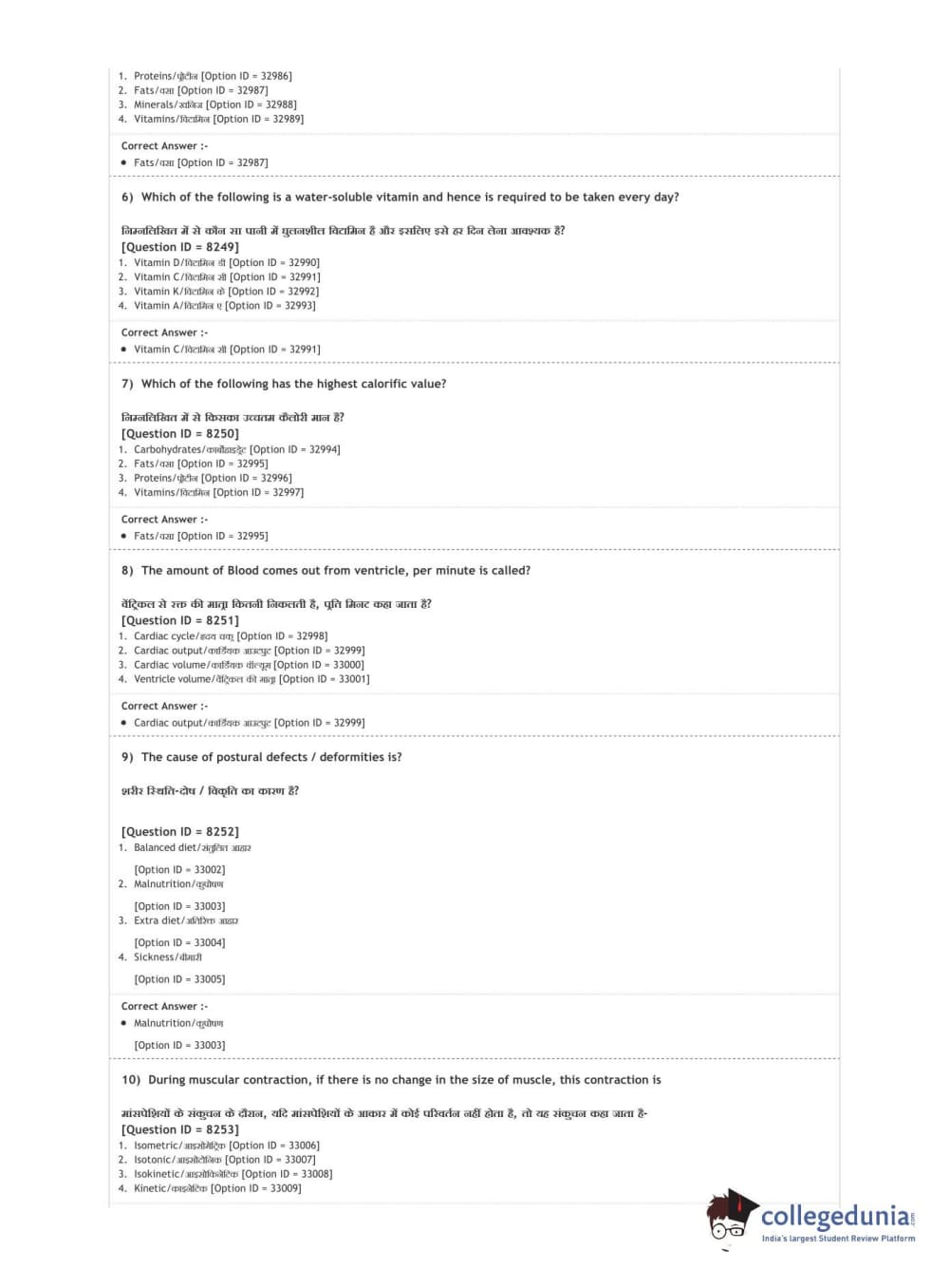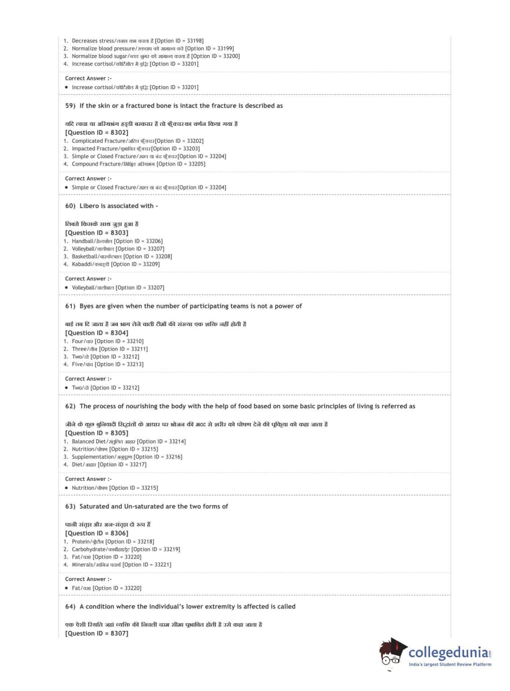 DUET 2020 B.Sc. Physical Education, Health Education & Sports Sciences Question Paper with Answer Key PDF Shift 3
