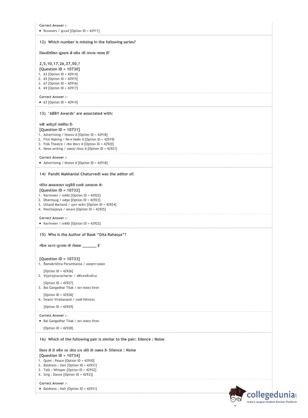 DUET 2020 Five Year Integrated Course in Journalism (English) Question paper with answer key pdf conducted on November 9, 2020 in Shift 1 is available for download. The exam was successfully organized by National Testing Agency (NTA). The question paper comprised a total of 100 questions.