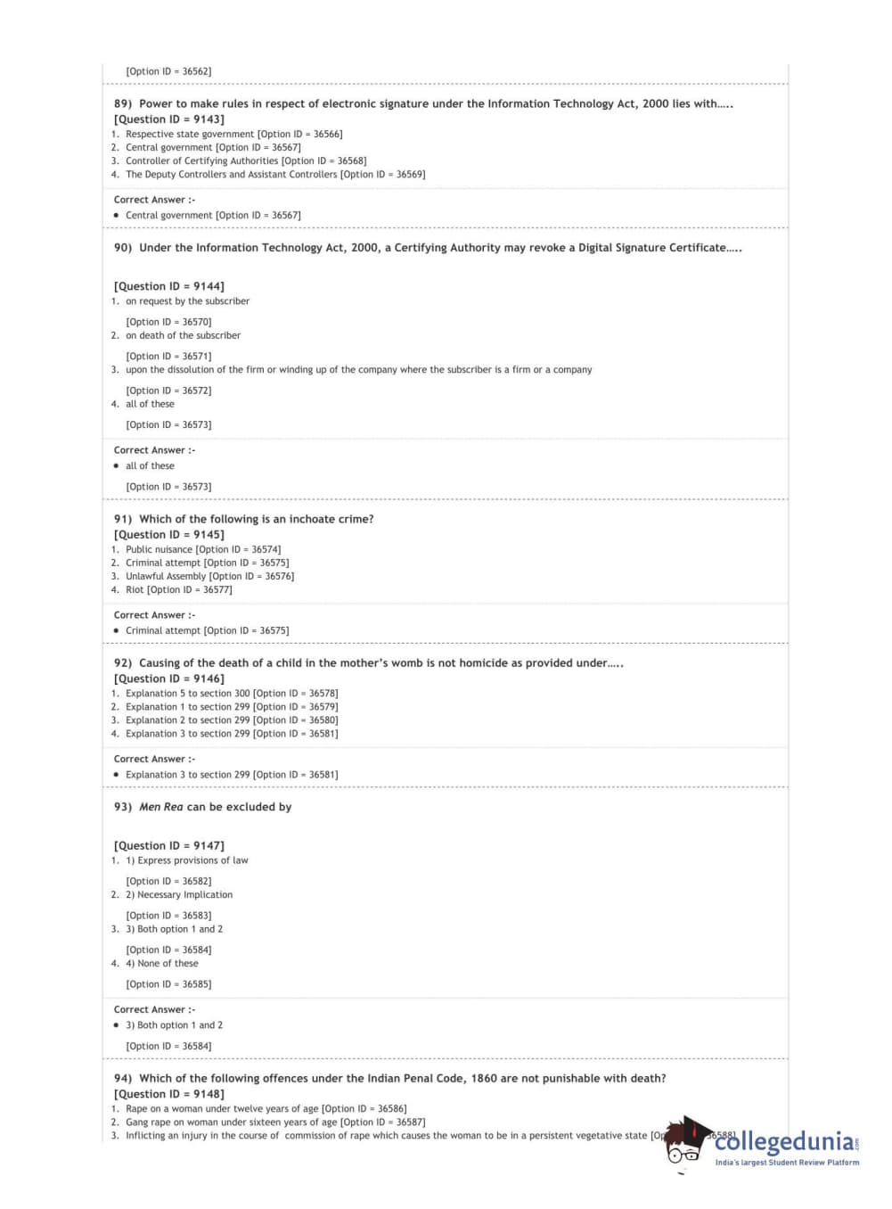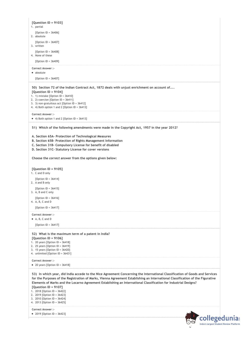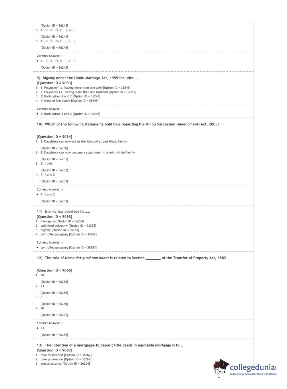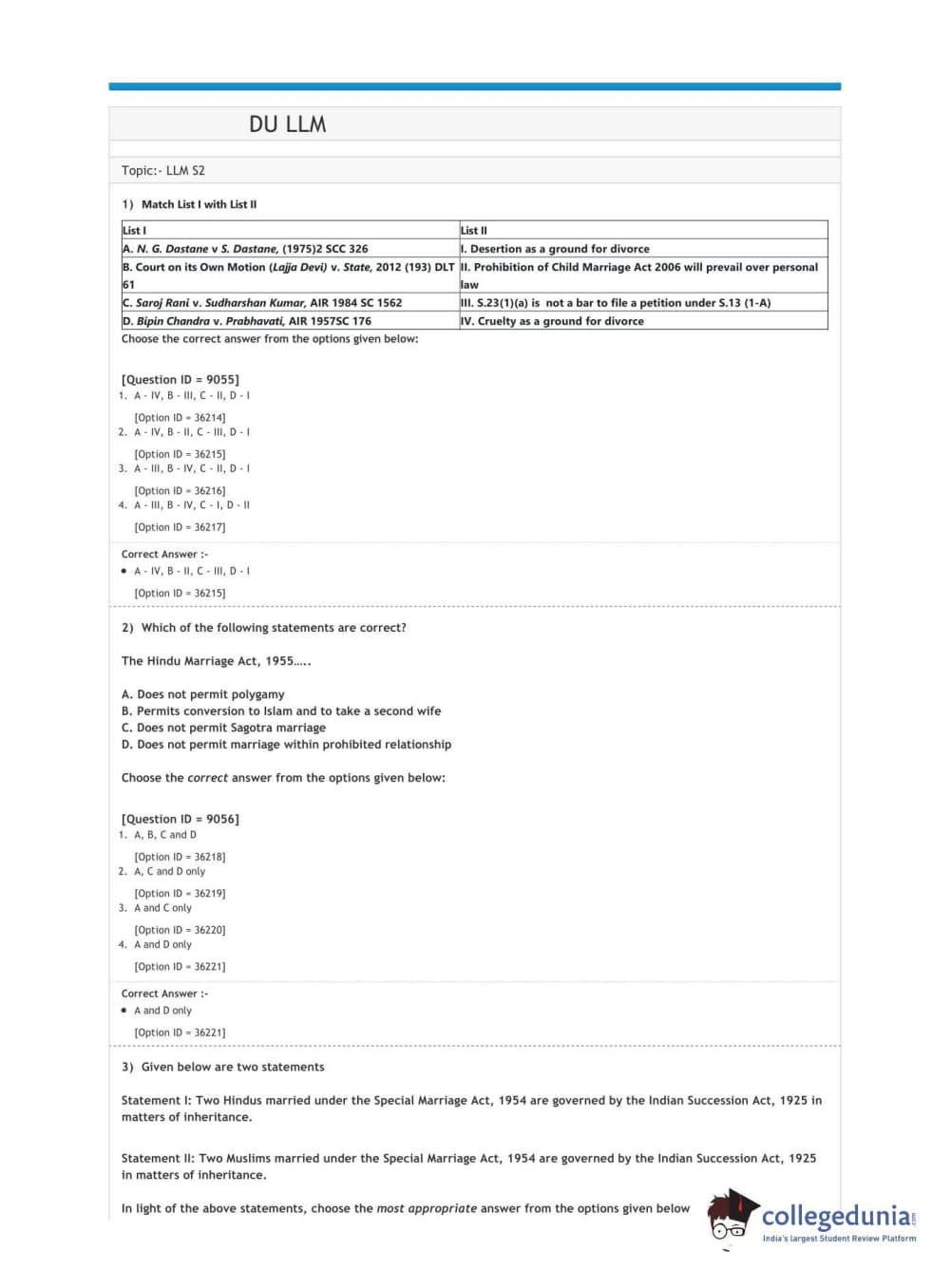 DUET 2020 L.L.M. Question Paper with Answer Key PDF Shift 2