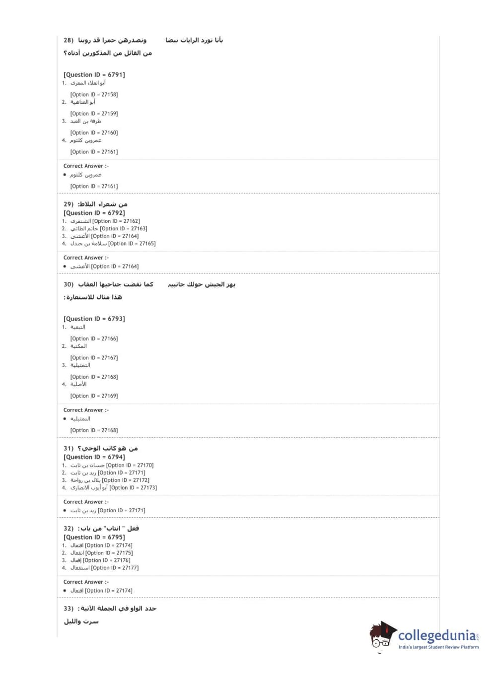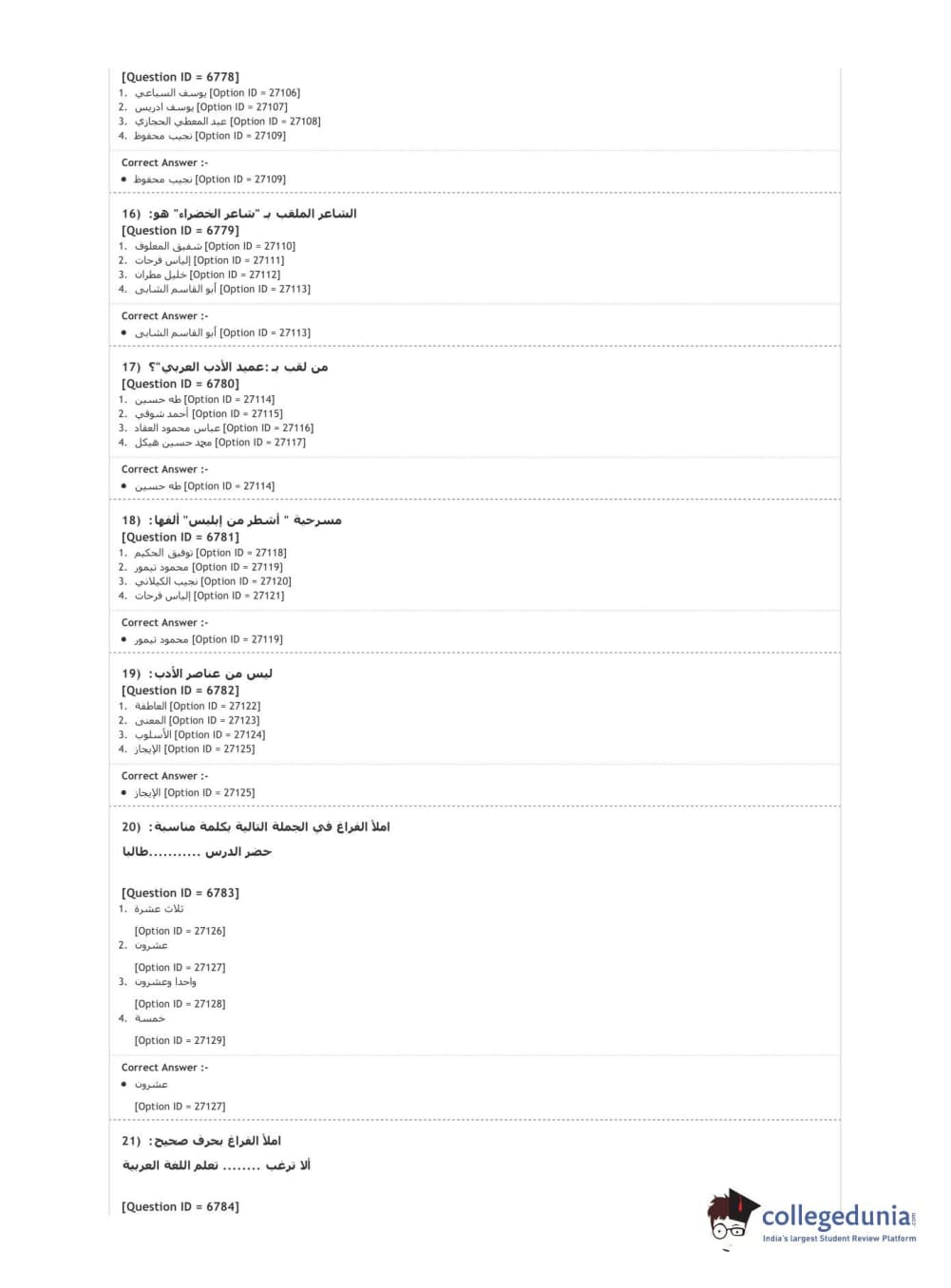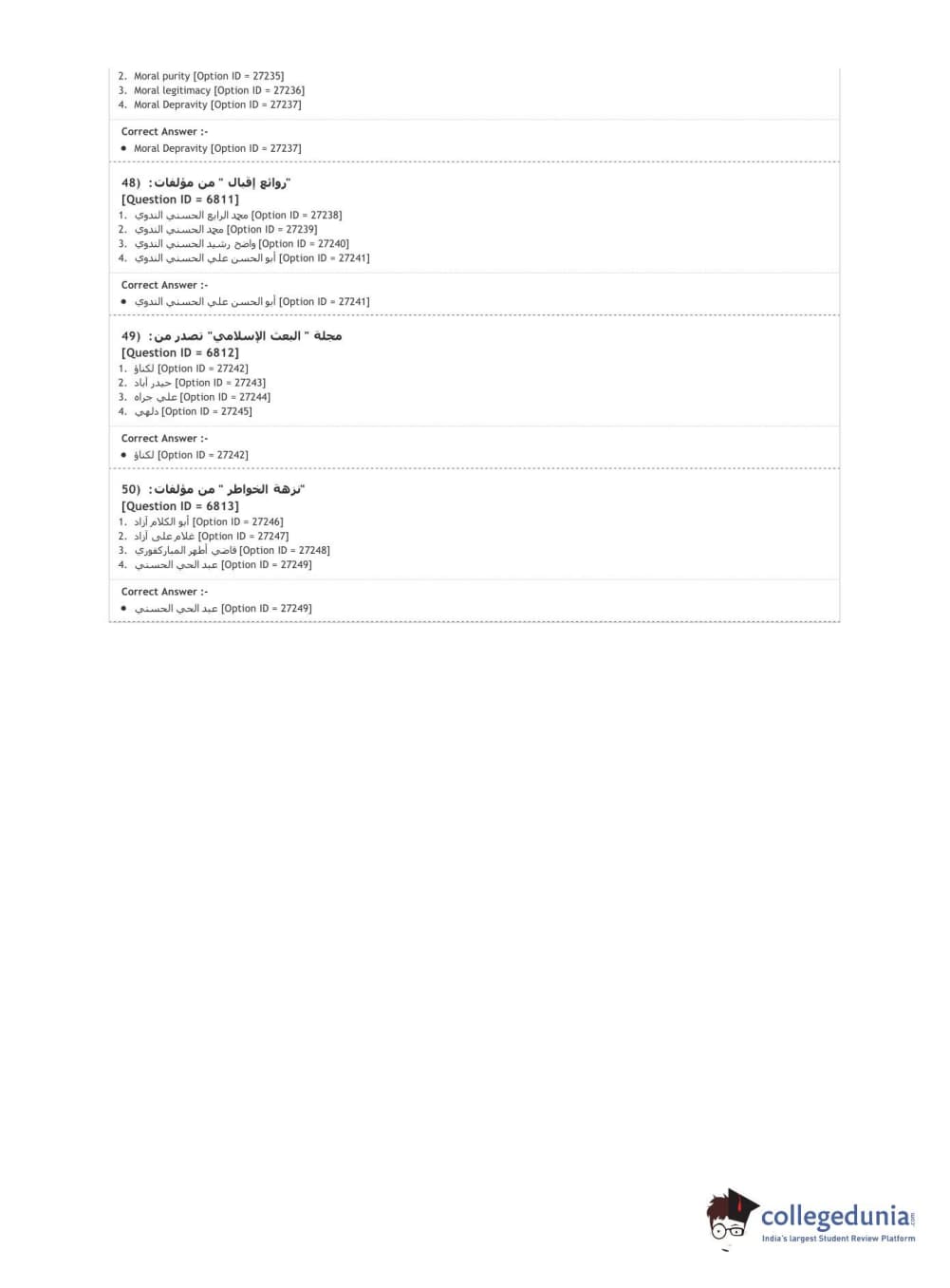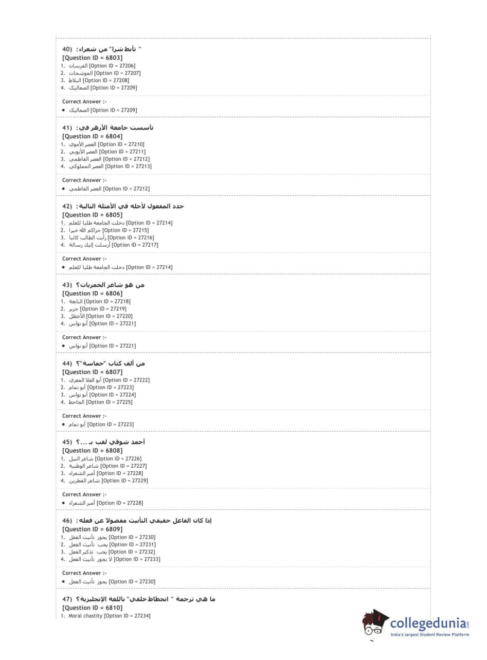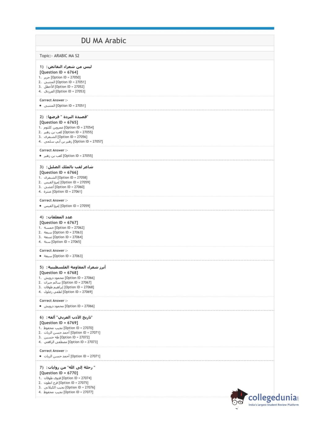 DUET 2020 M.A. Arabic Question Paper with Answer Key PDF Shift 1