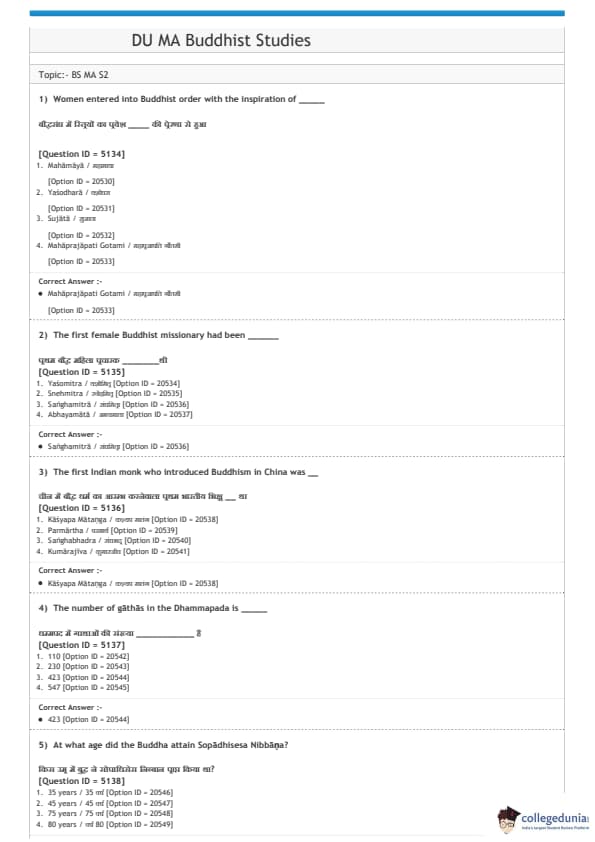 | DUET 2020 M.A. Buddhist Studies | Download PDF |