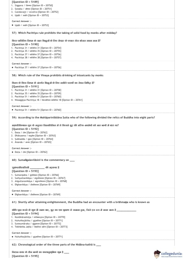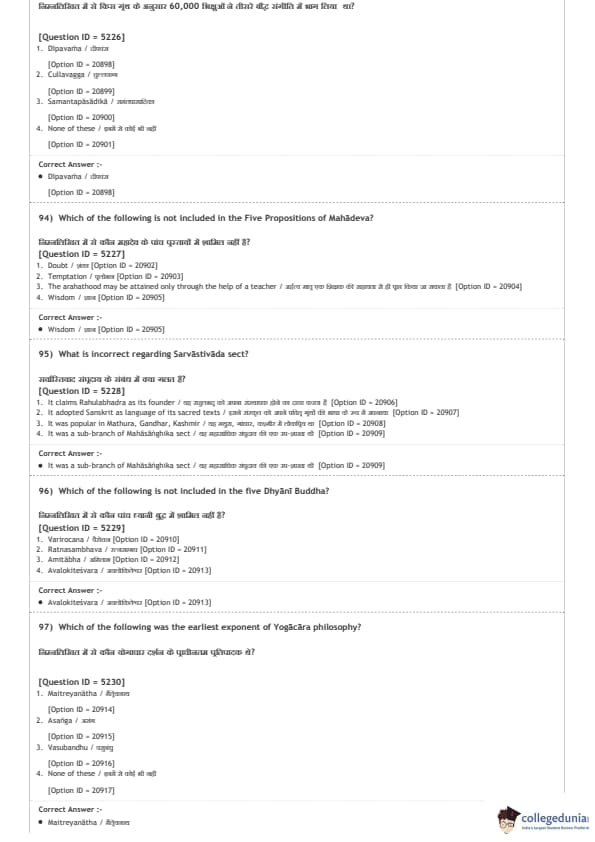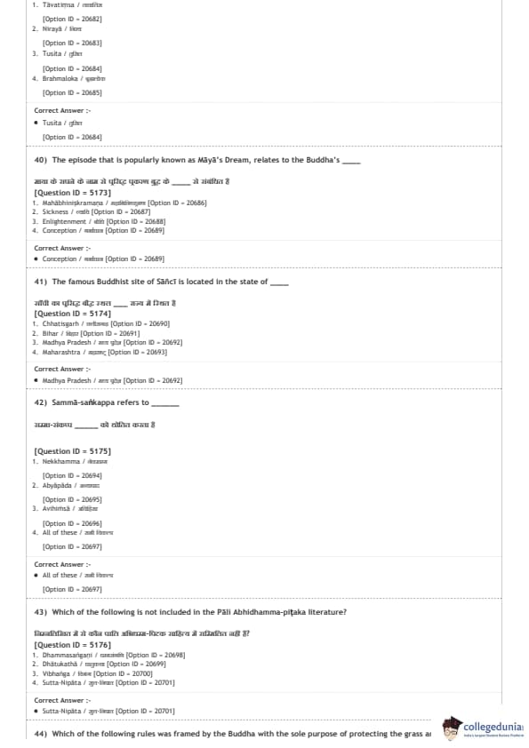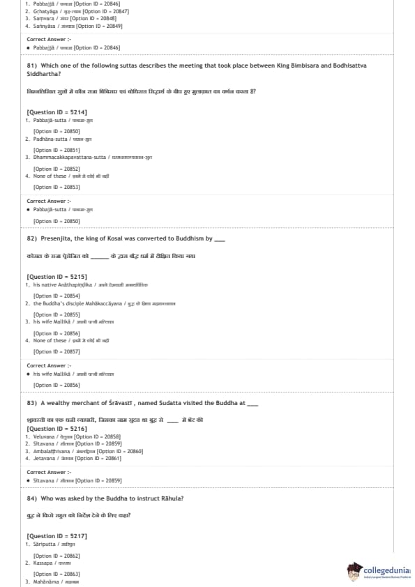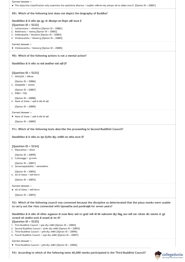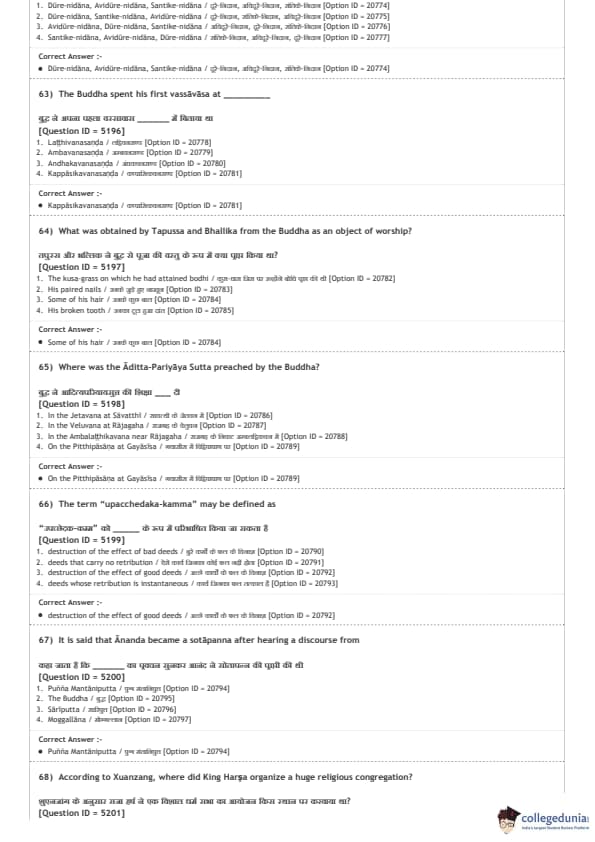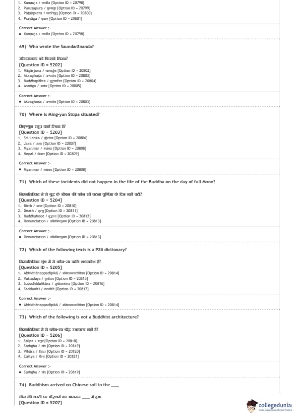 DUET 2020 M.A. Buddhist Studies Question paper with answer key pdf conducted on August 9, 2020 in Shift 2 is available for download. The exam was successfully organized by National Testing Agency (NTA). The question paper comprised a total of 100 questions.
