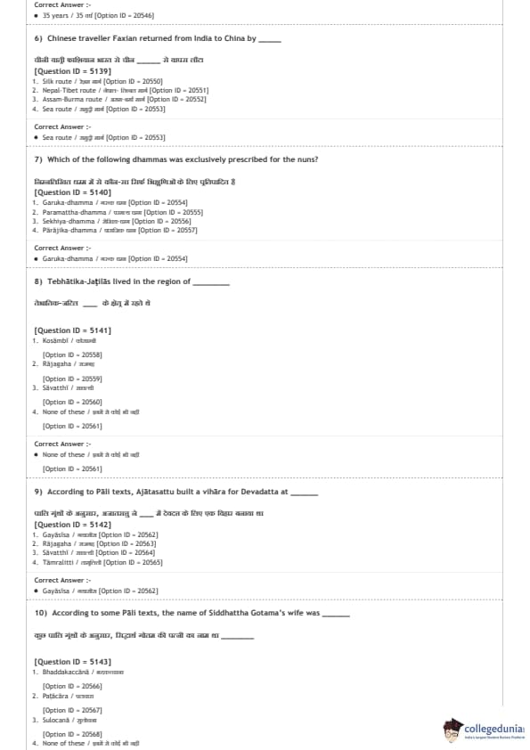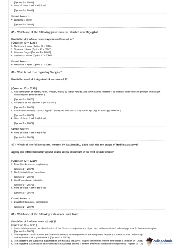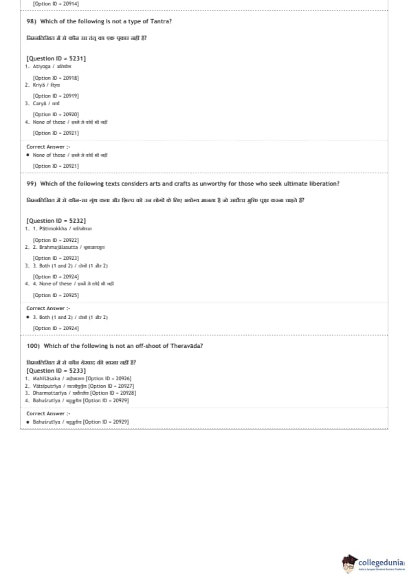 DUET 2020 M.A. Buddhist Studies Question Paper with Answer Key PDF Shift 2