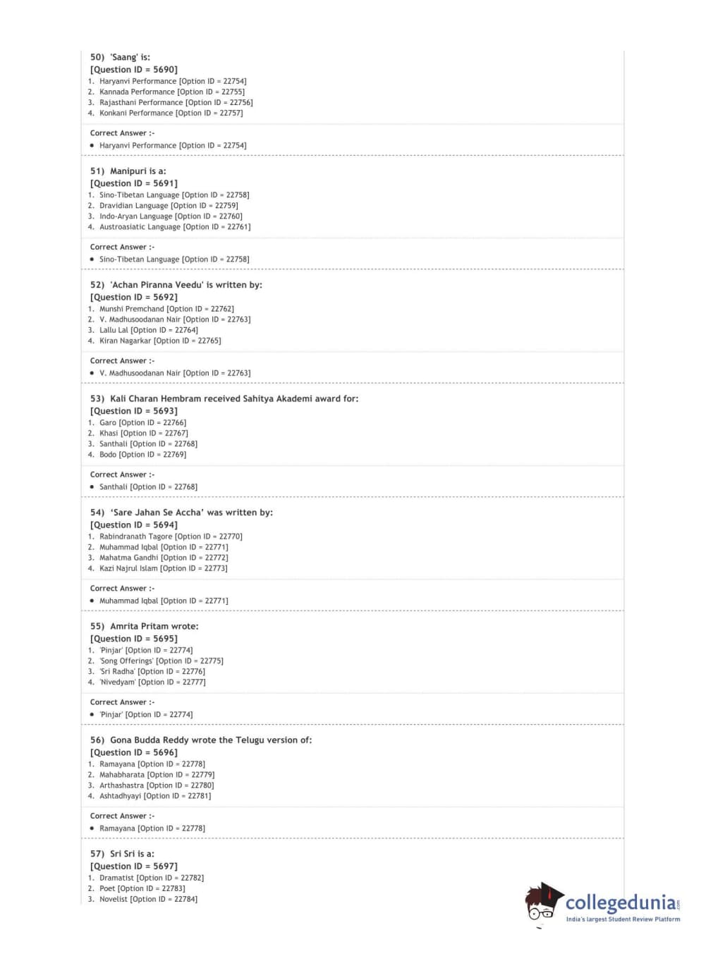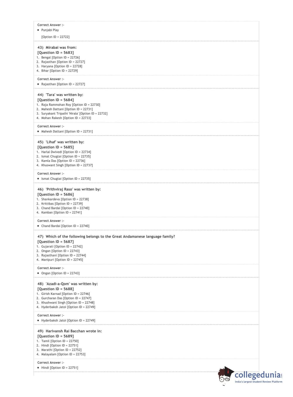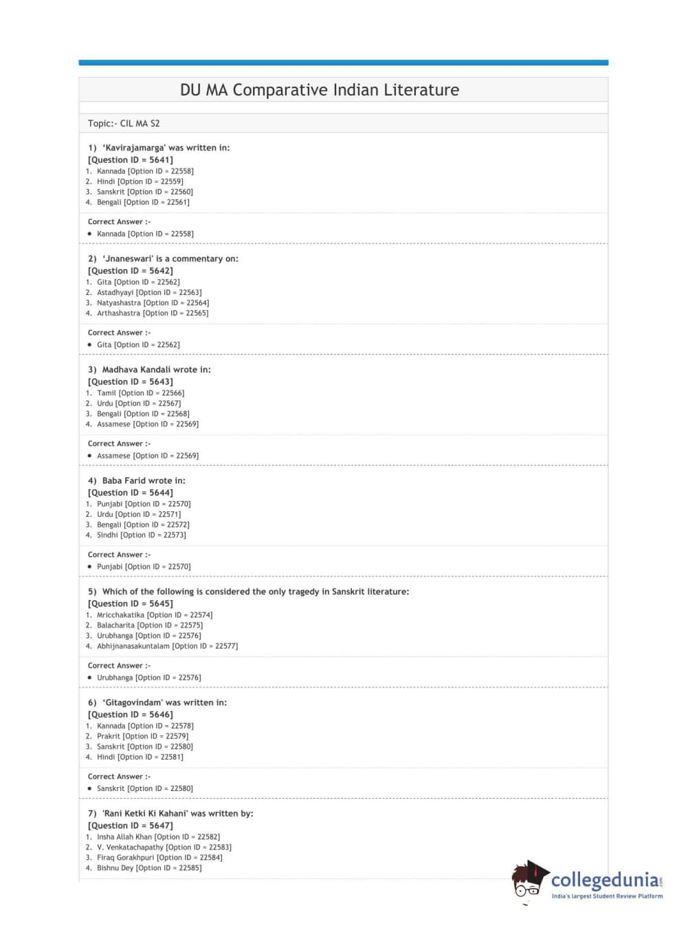 | DUET 2020 M.A. Comparative Indian Literature | Download PDF |