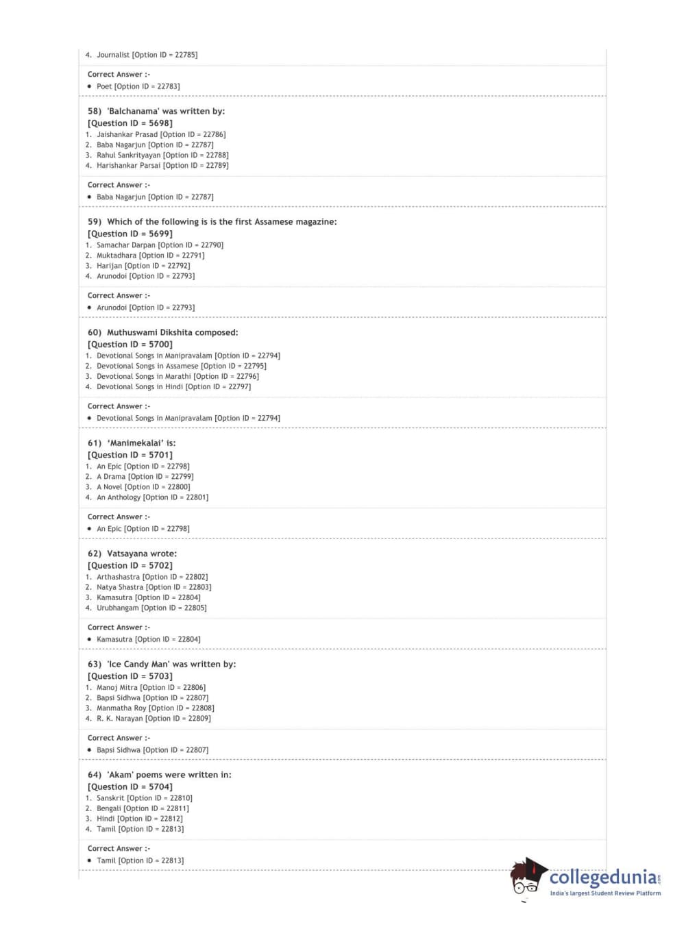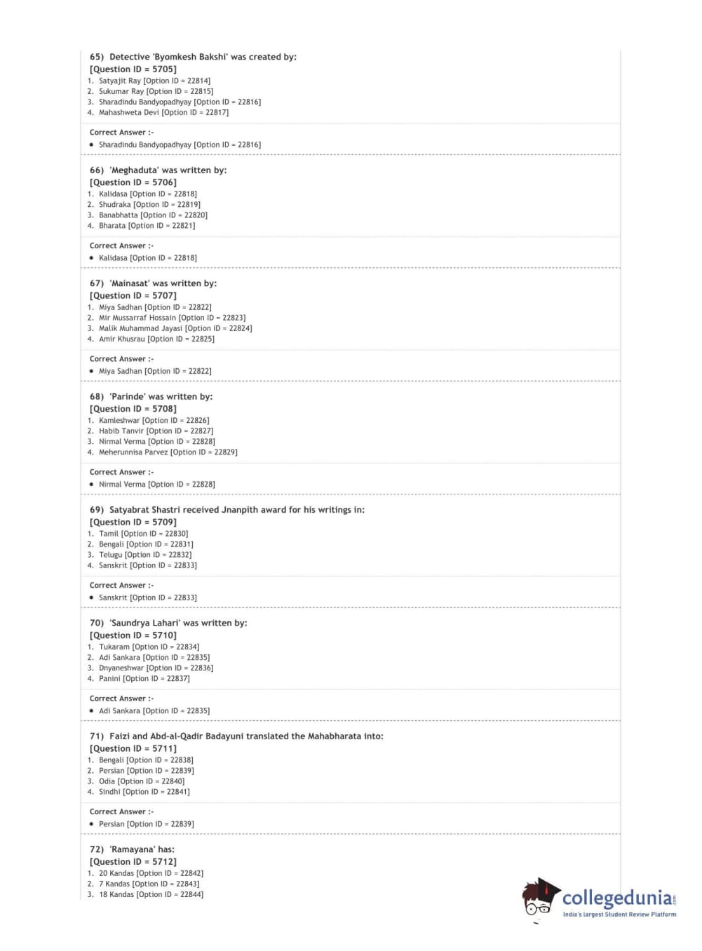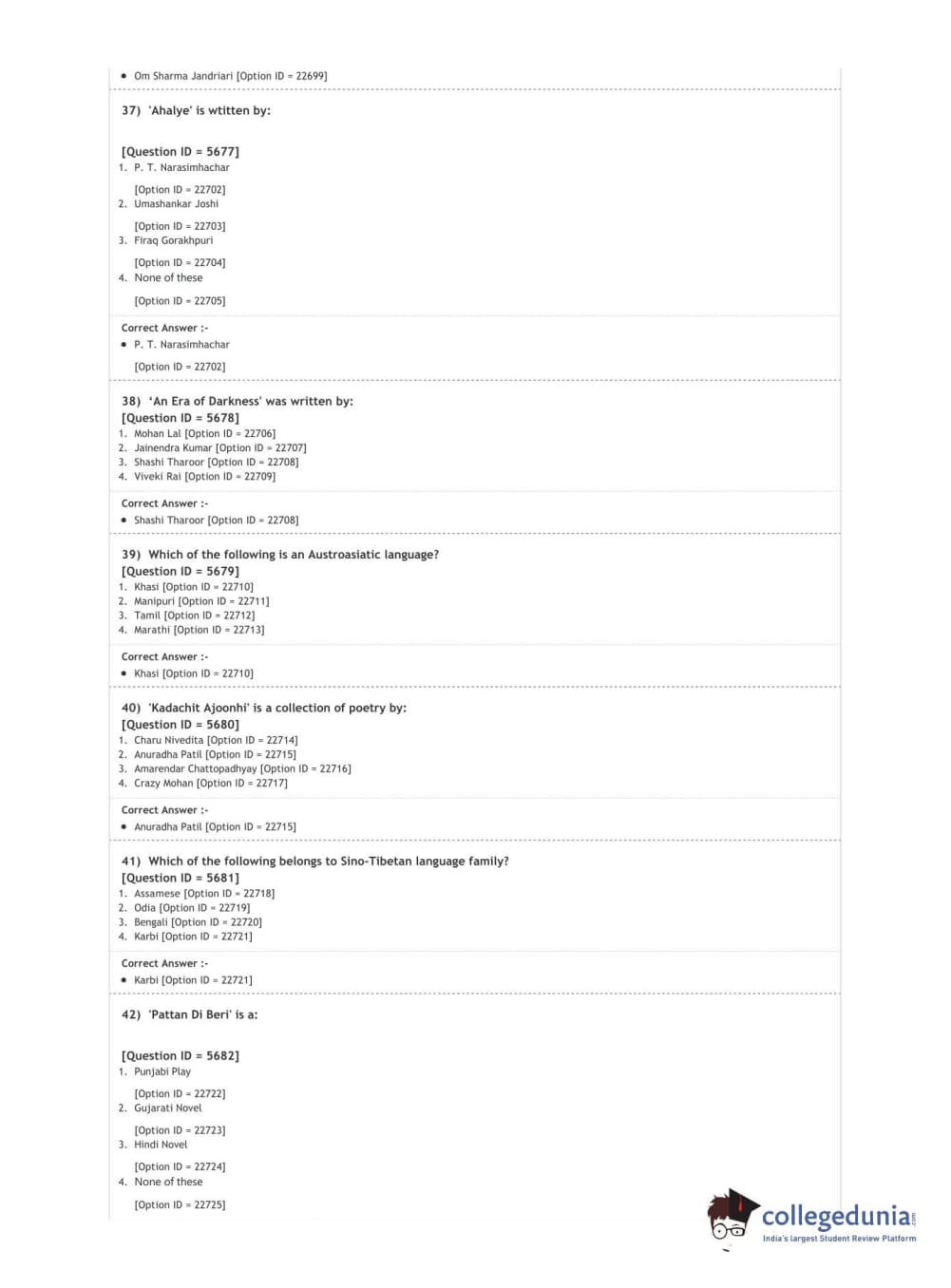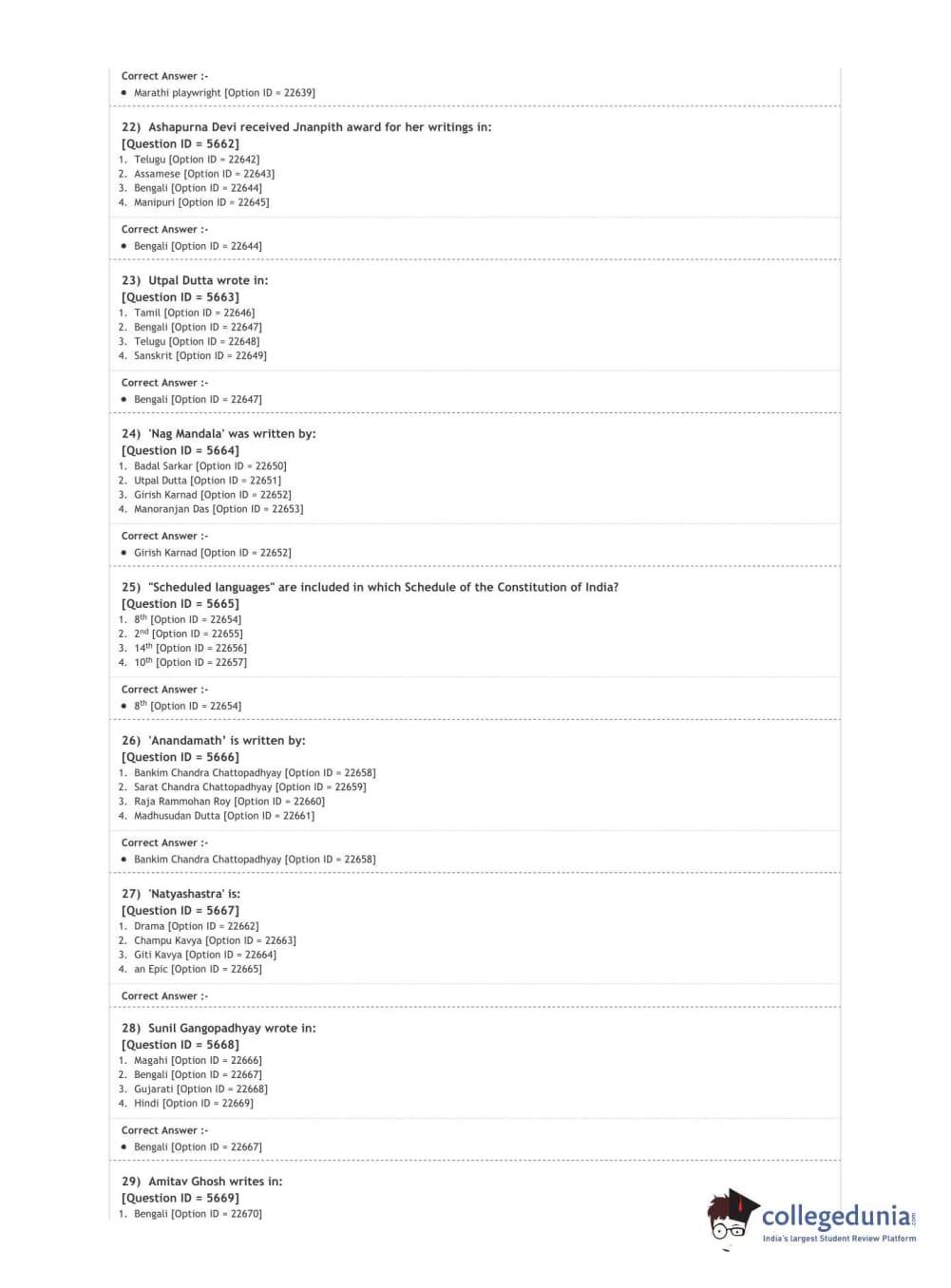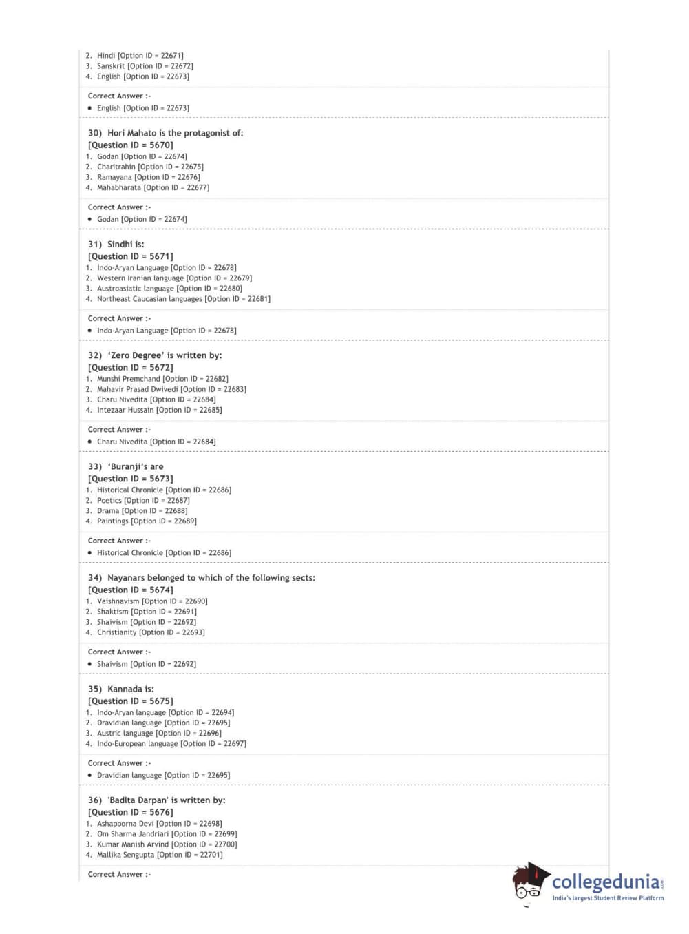 DUET 2020 M.A. Comparative Indian Literature Question Paper with Answer Key PDF Shift 2