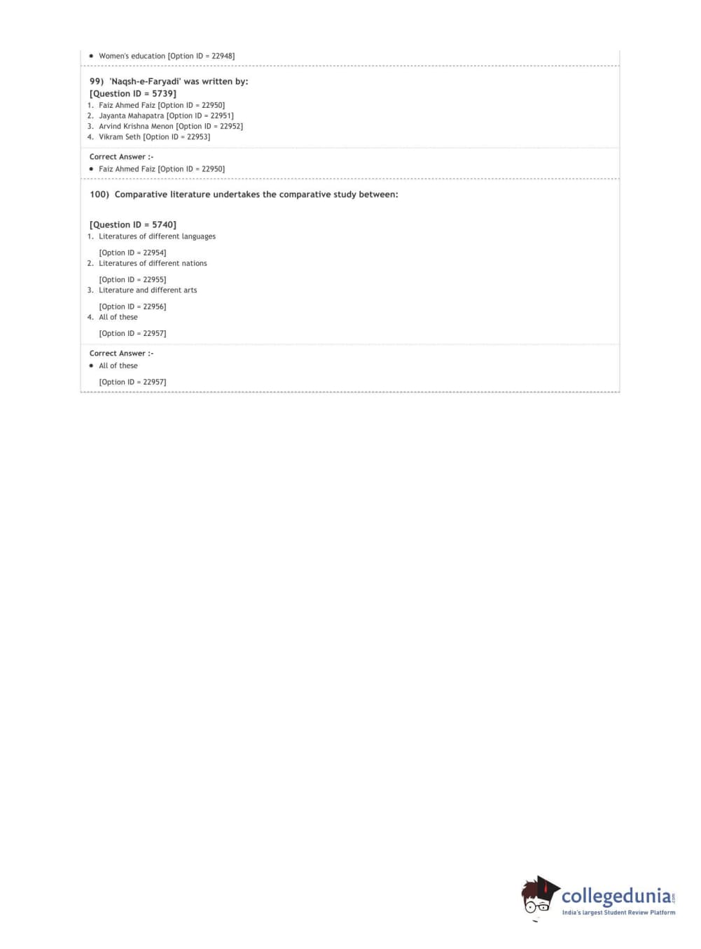 DUET 2020 M.A. Comparative Indian Literature Question paper with answer key pdf conducted on October 9, 2020 in Shift 2 is available for download. The exam was successfully organized by National Testing Agency (NTA). The question paper comprised a total of 100 questions.