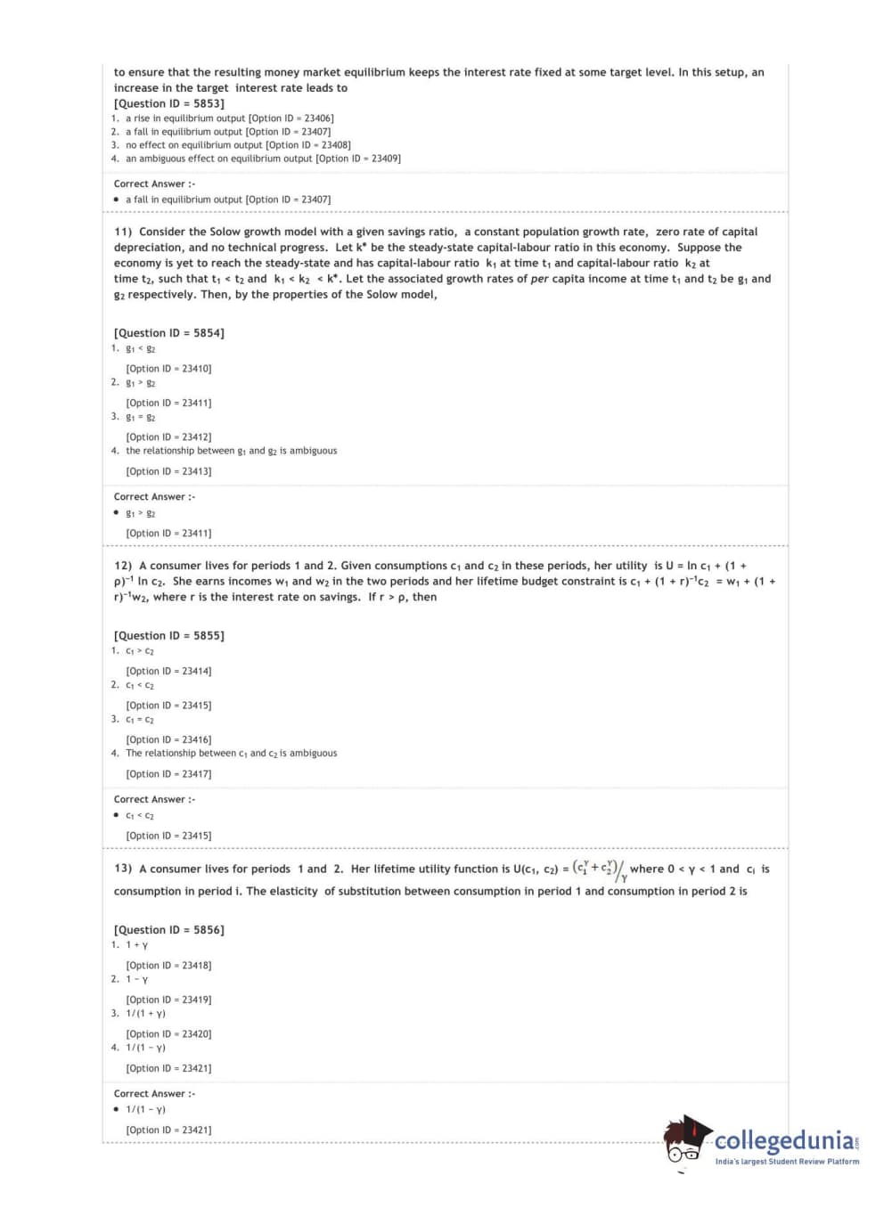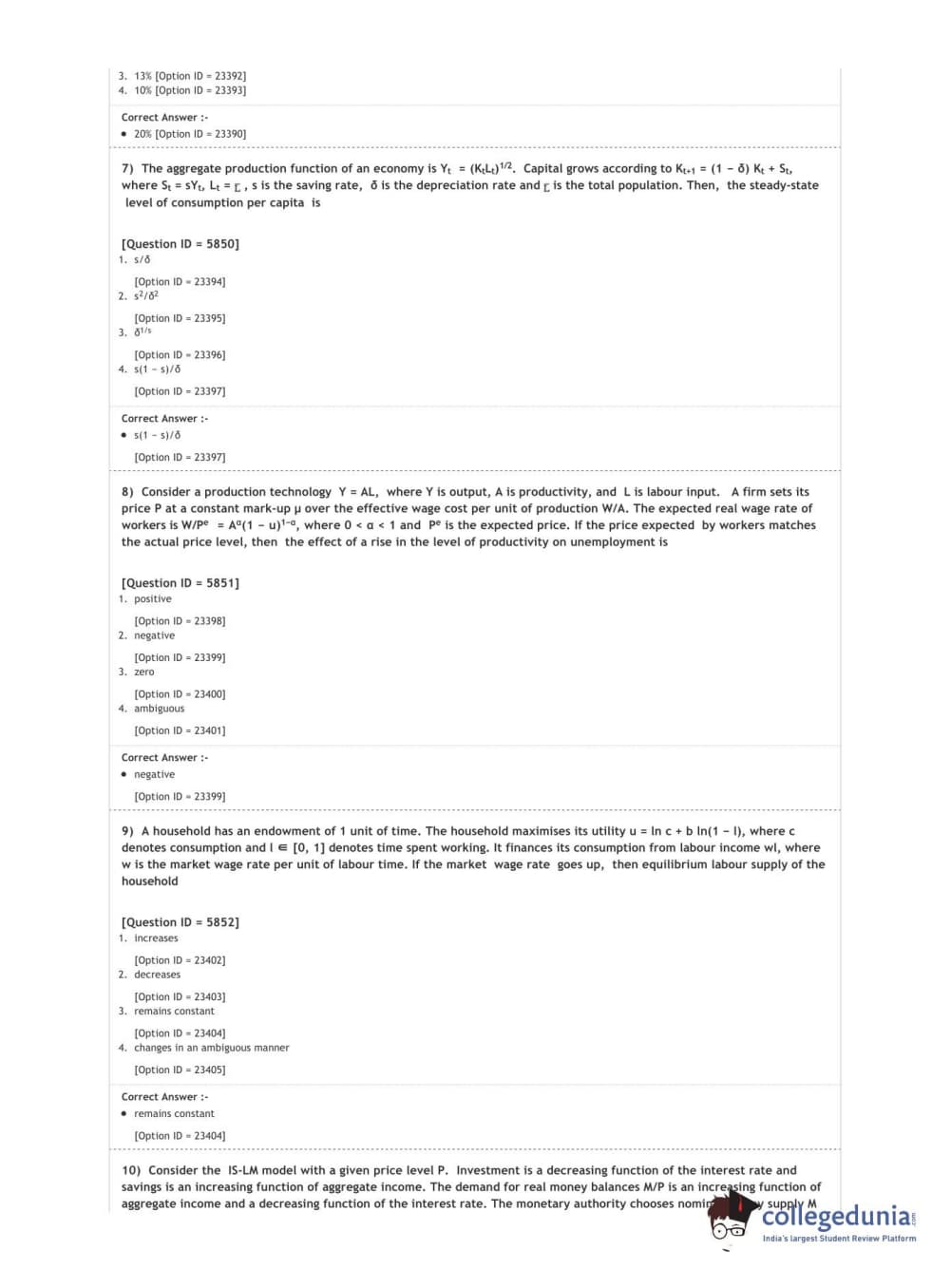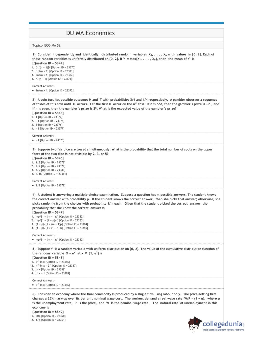 DUET 2020 M.A. Economics Question Paper with Answer Key PDF Shift 1