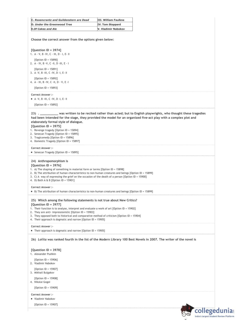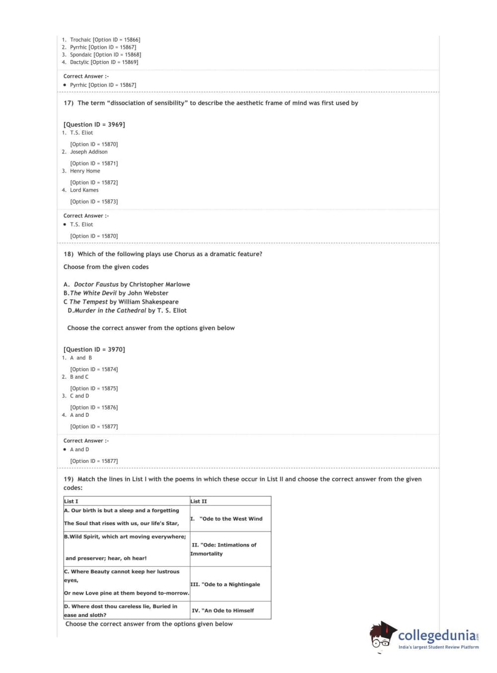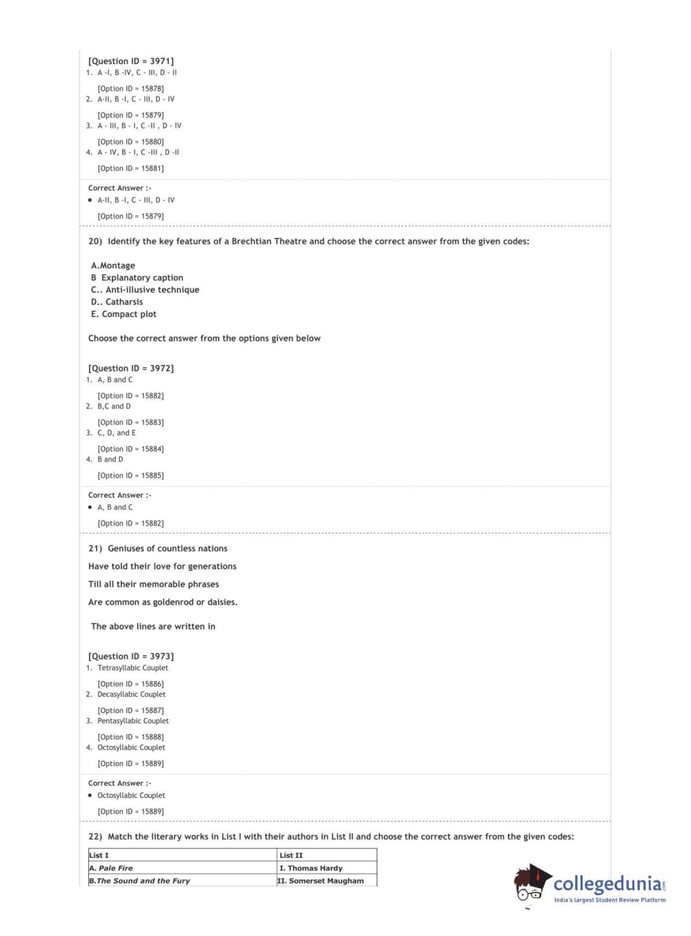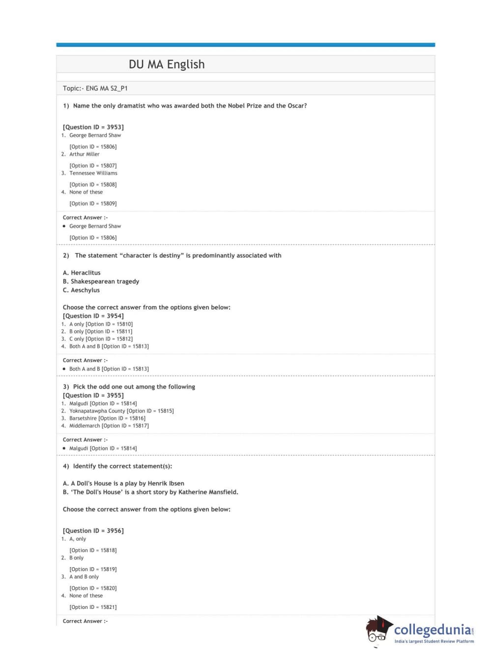 DUET 2020 M.A. English Question Paper with Answer Key PDF Shift 1
