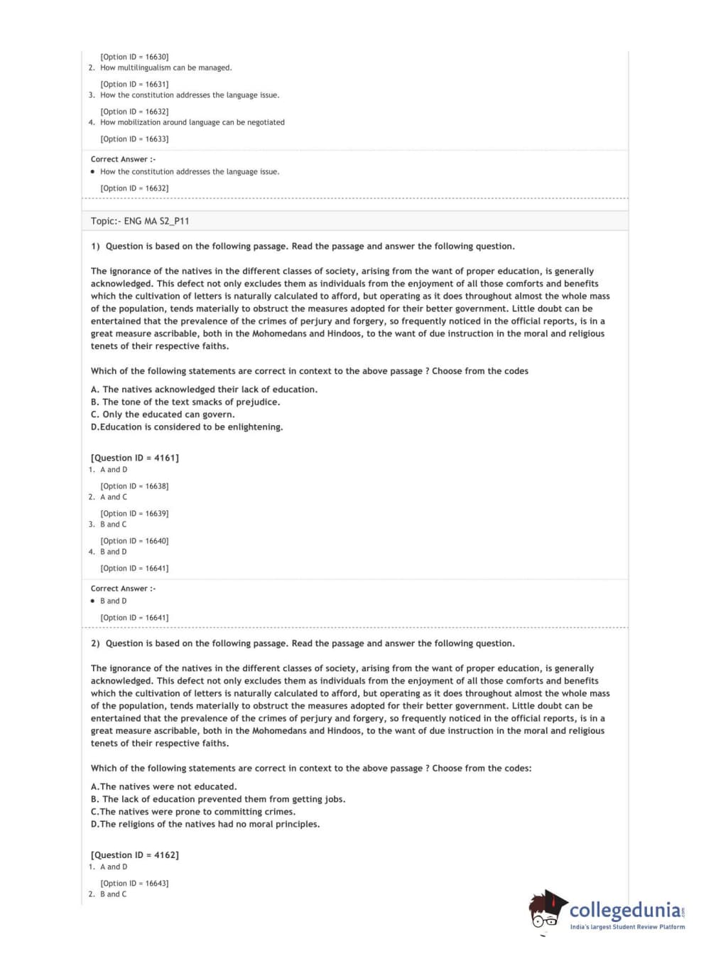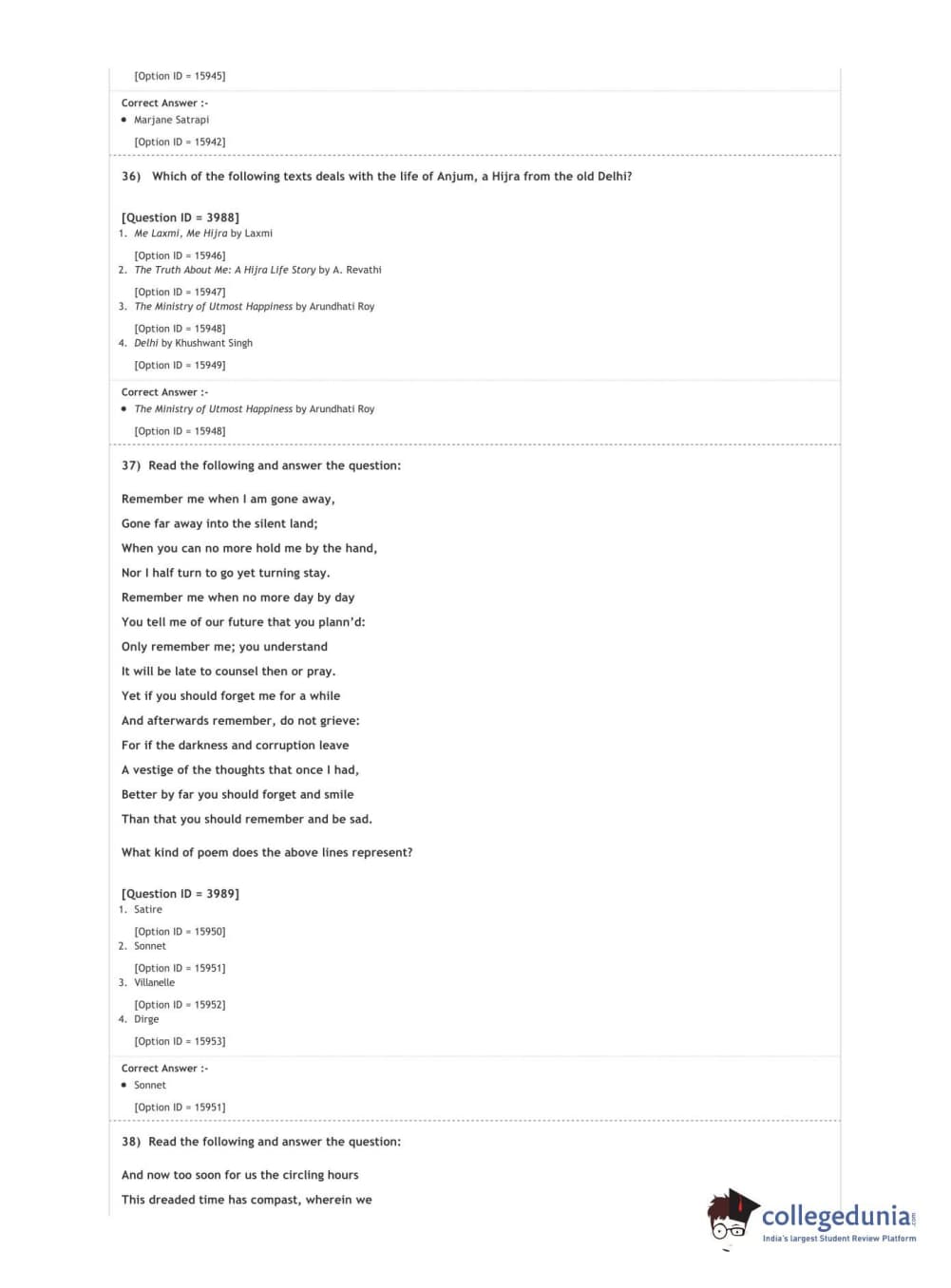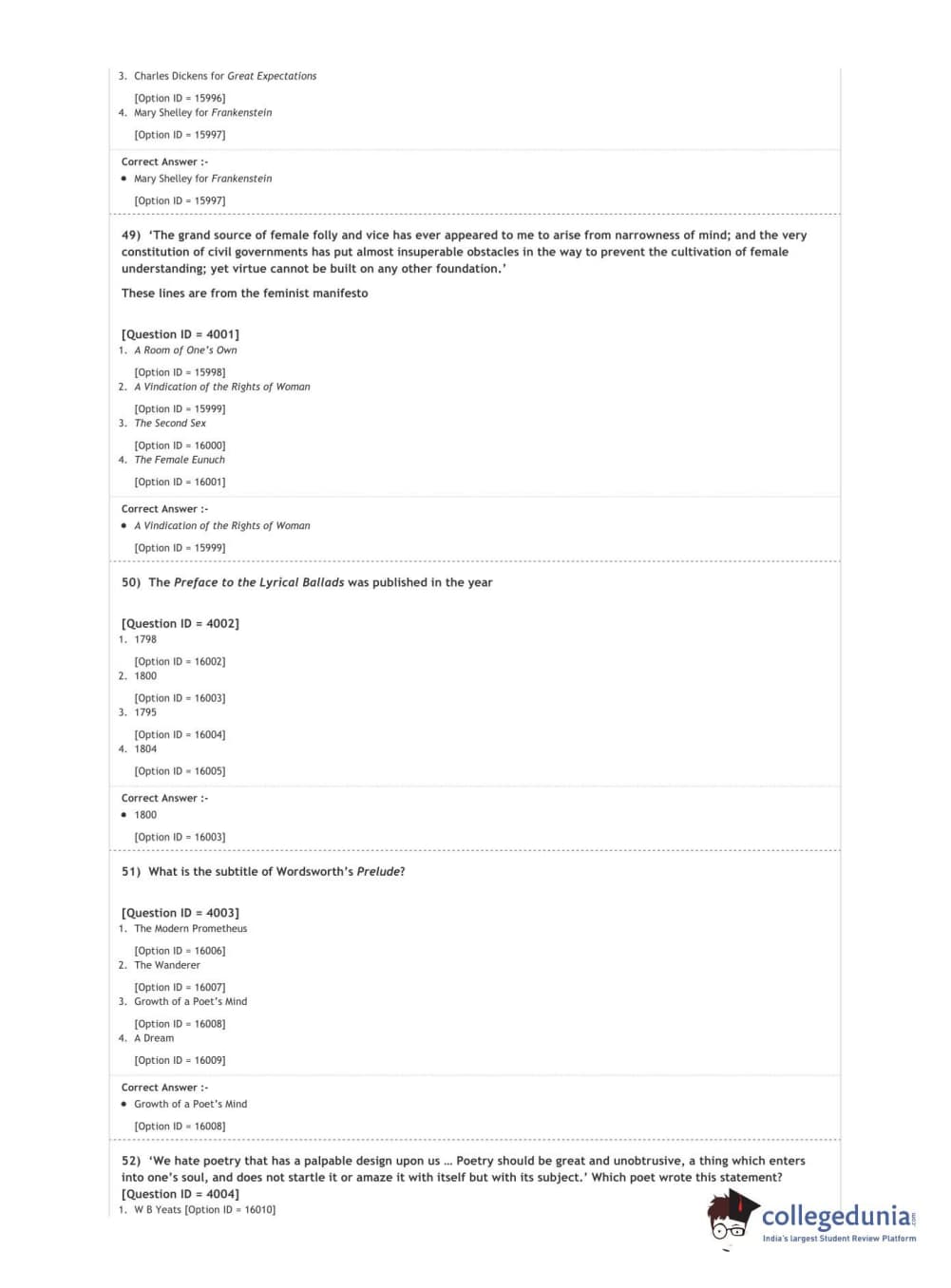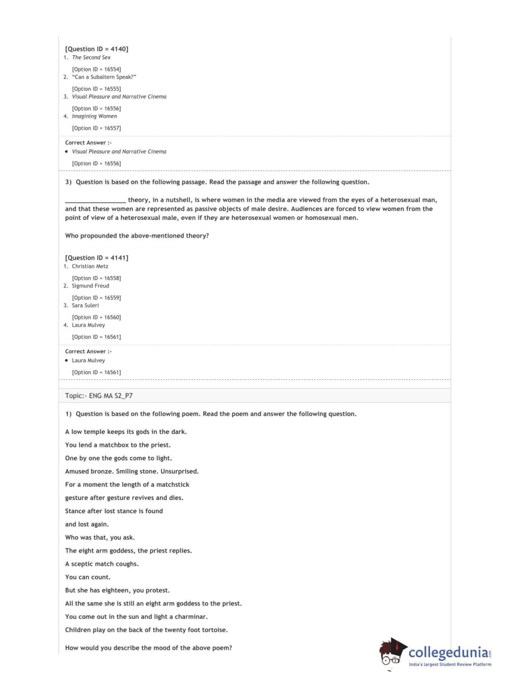 DUET 2020 M.A. English Question Paper with Answer Key PDF Shift 1