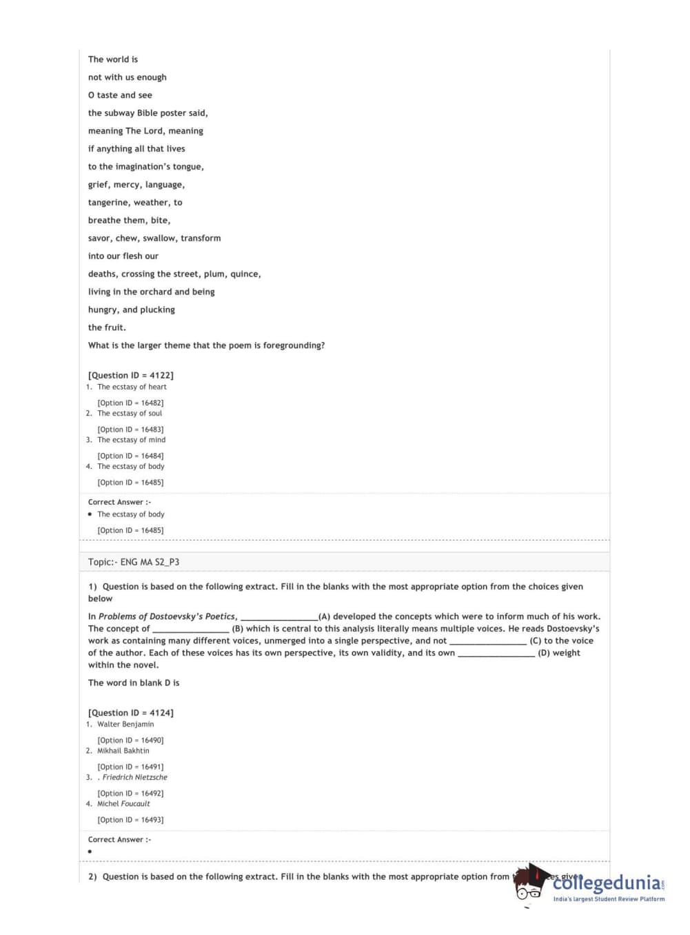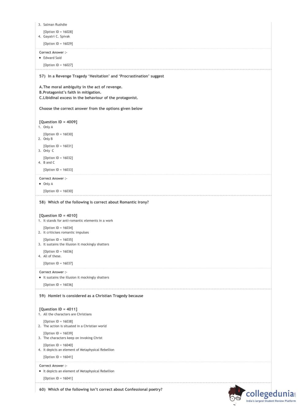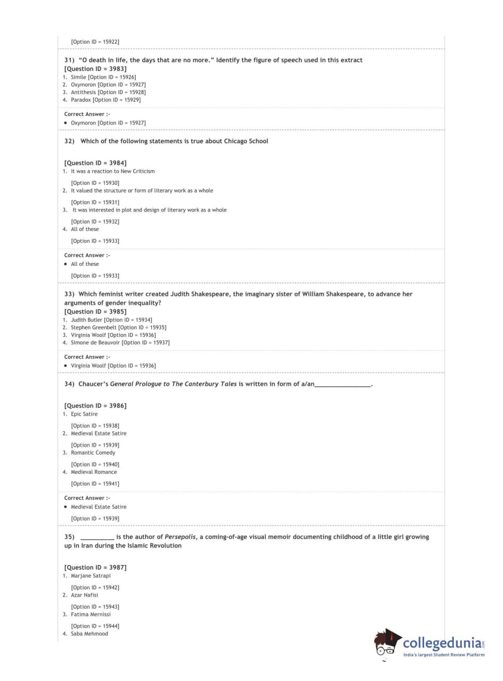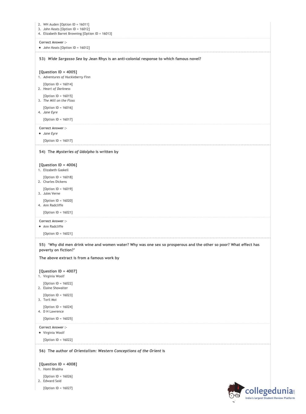 DUET 2020 M.A. English Question Paper with Answer Key PDF Shift 1