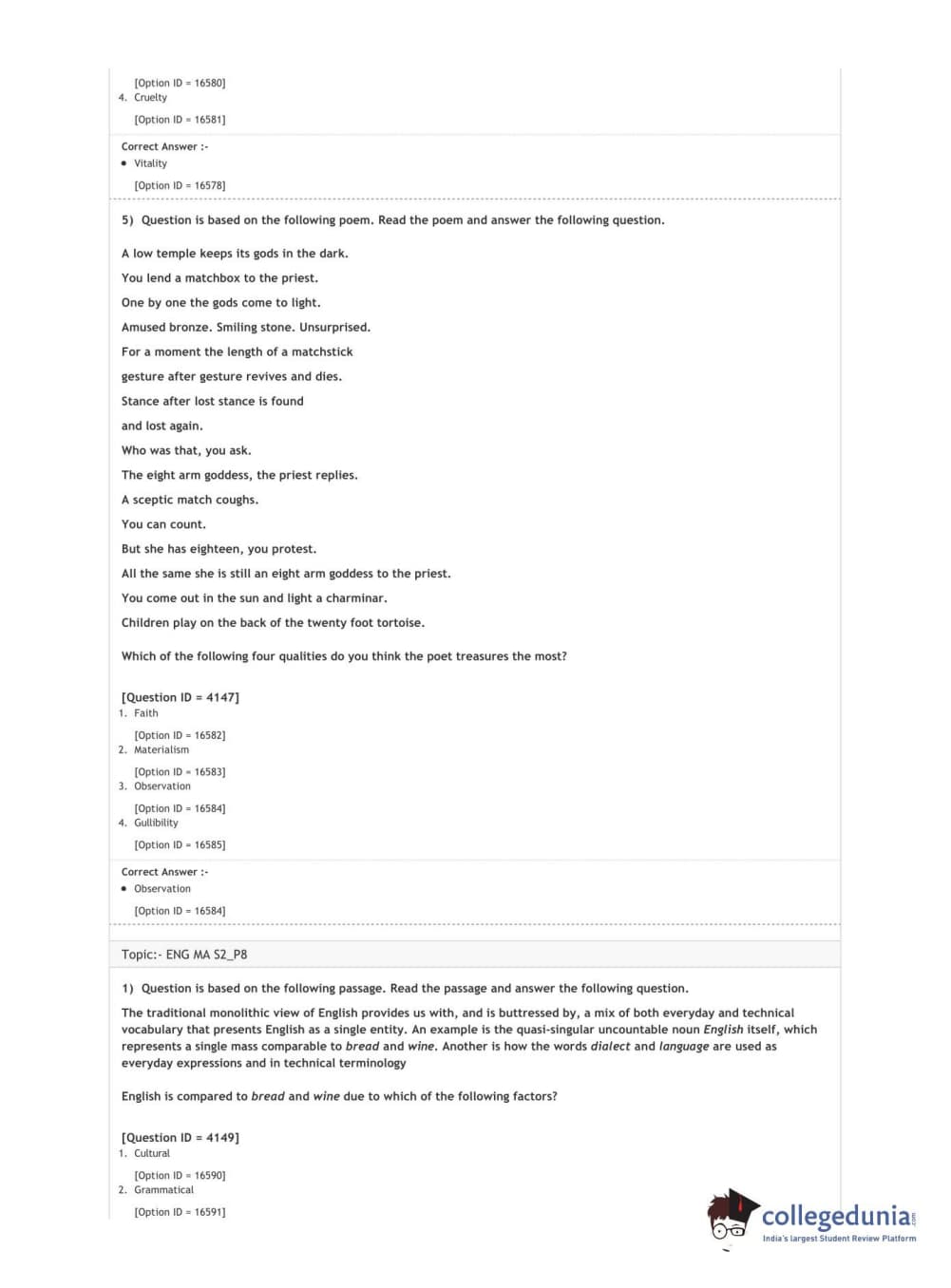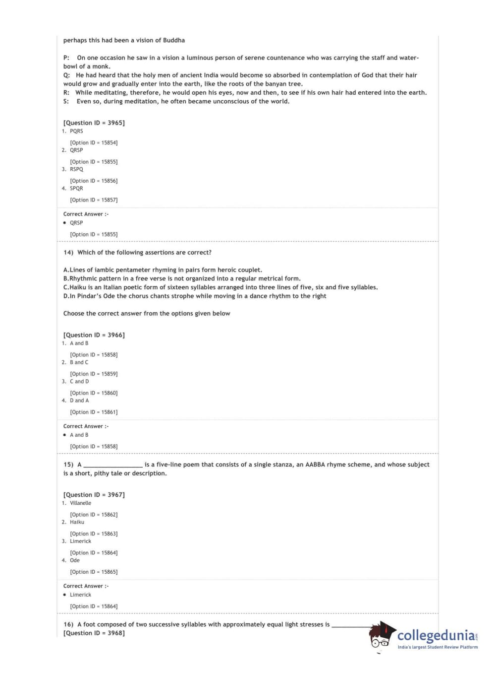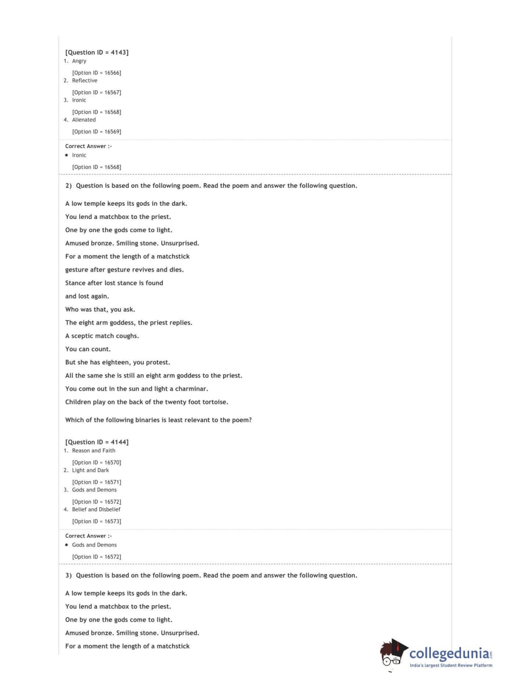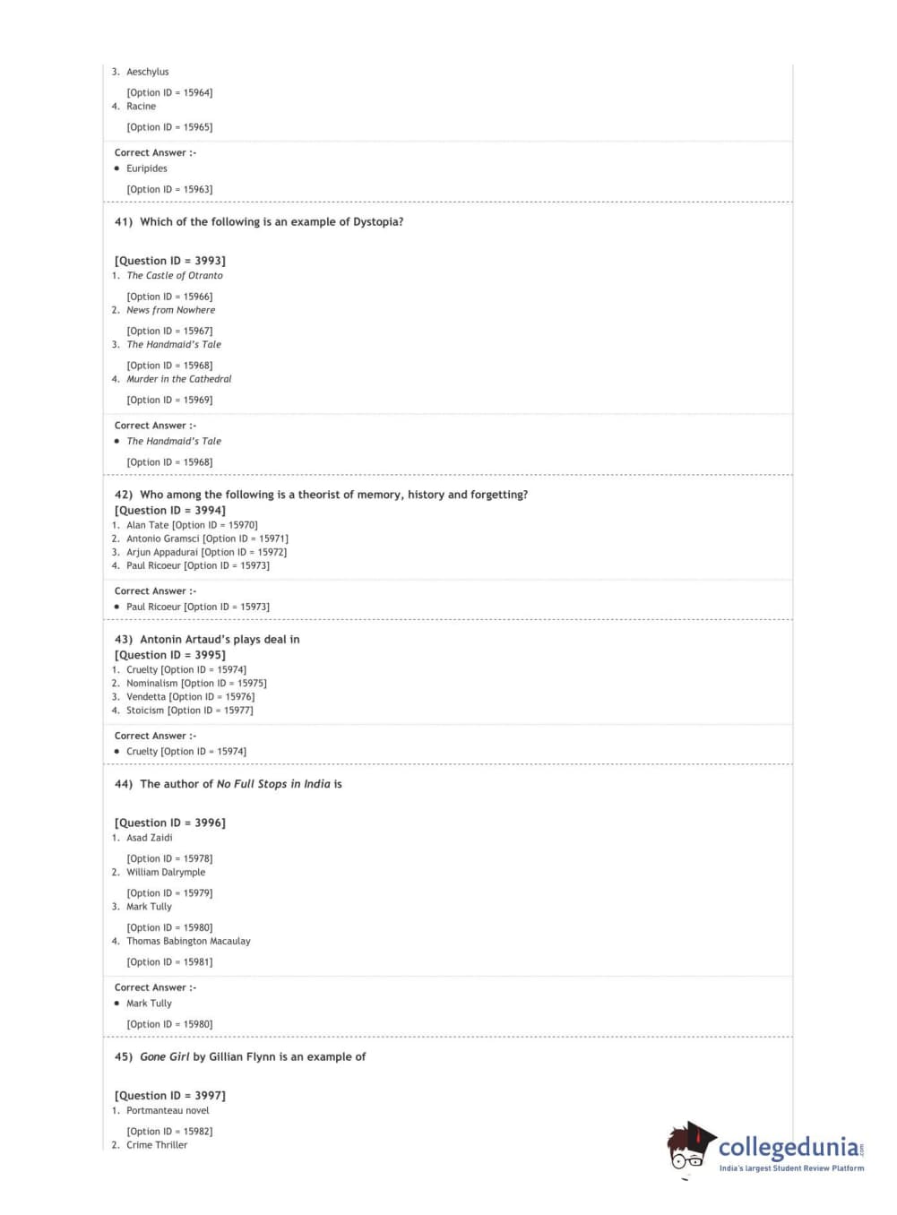 DUET 2020 M.A. English Question Paper with Answer Key PDF Shift 1